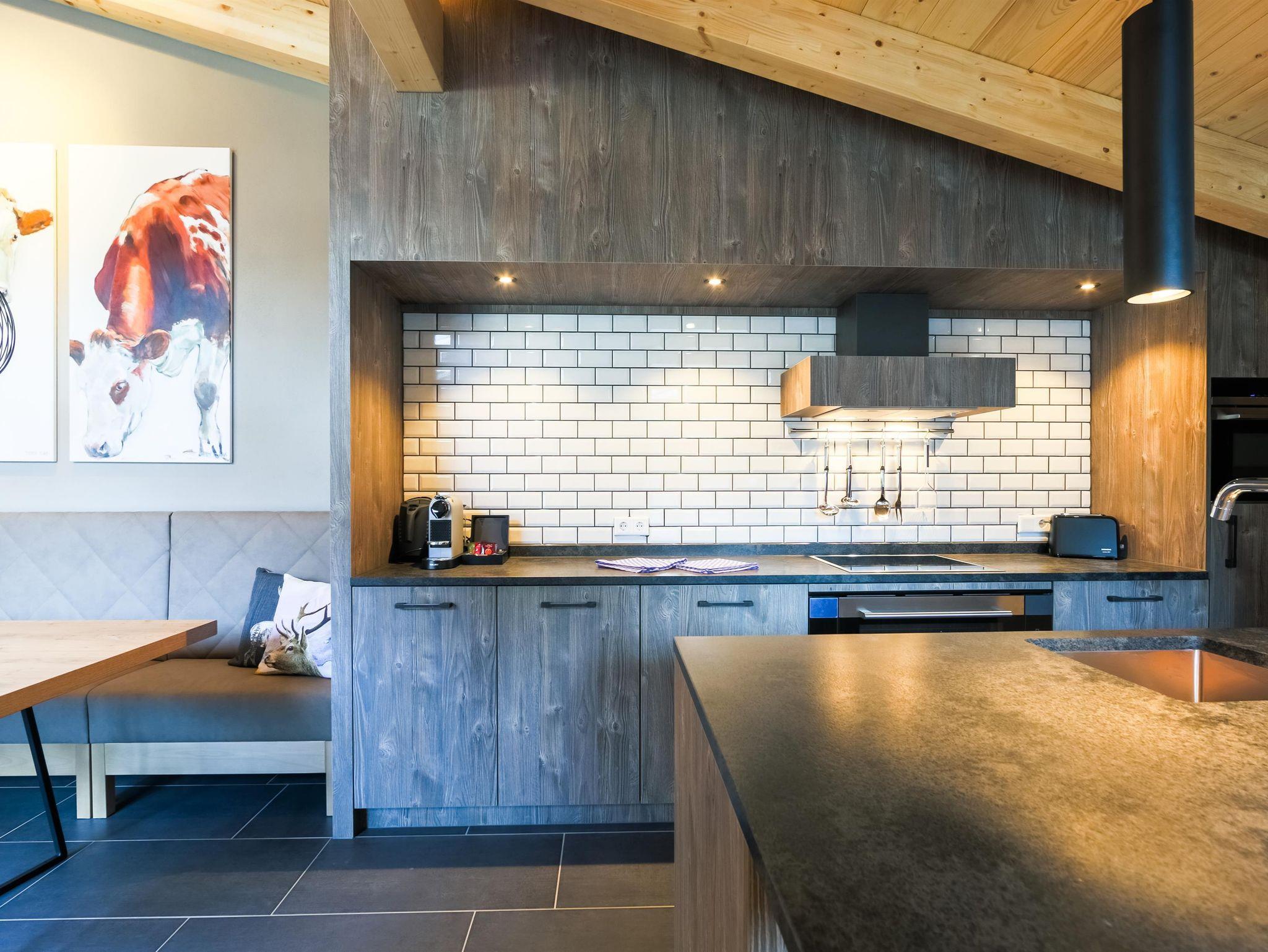 Das luxuriöse und moderne Penthouse mit 3 Schlafzimmern und Bergblick befindet sich im Chalet 2 im obersten Stock. Mit dem Lift gelangen Sie direkt in das Penthouse. Das Penthouse besteht aus 3 Schlafzimmern mit Doppelbetten, sowie drei schönen Badezimmern mit Dusche und WC. Die Privat-Sauna und die Outdoor-Badewanne lassen die Entspannung nicht zu kurz kommen. Das Wohnzimmer ist ausgestattet mit einem großen Esstisch und einer offenen Design-Küche sowie einer Sitzecke mit einer Schlafcouch (für 2 Personen geeignet). Vom Wohnzimmer aus gelangen Sie auf den großen Hauptbalkon, von dem aus Sie einen beeindruckenden Ausblick auf das Kitzsteinhorn genießen. Eines der Penthouses ist zudem barrierefrei.