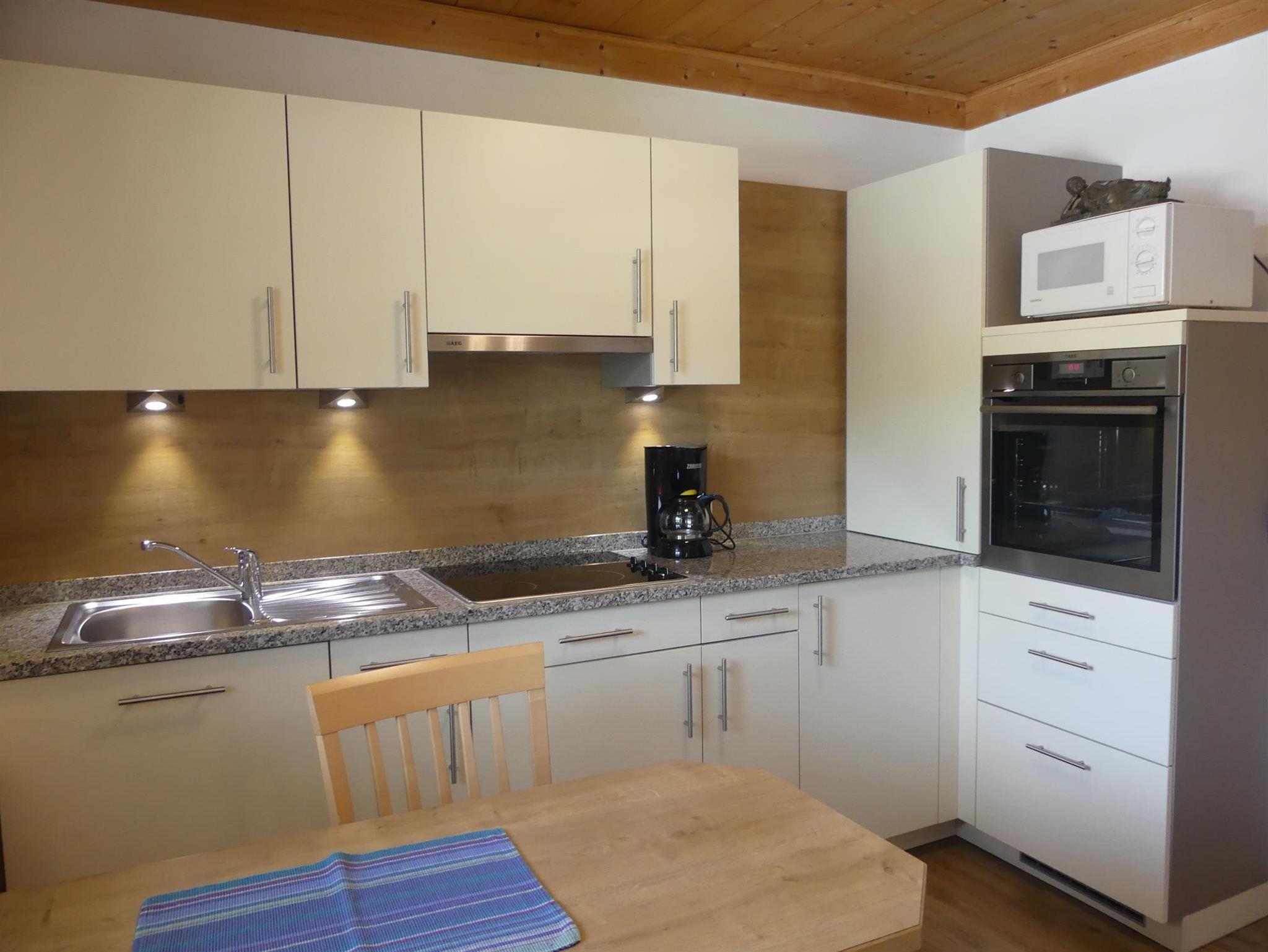 • Komfortabel ausgestattete Küchenzeile mit Elektroherd, Kühlschrank, Kaffeemaschine