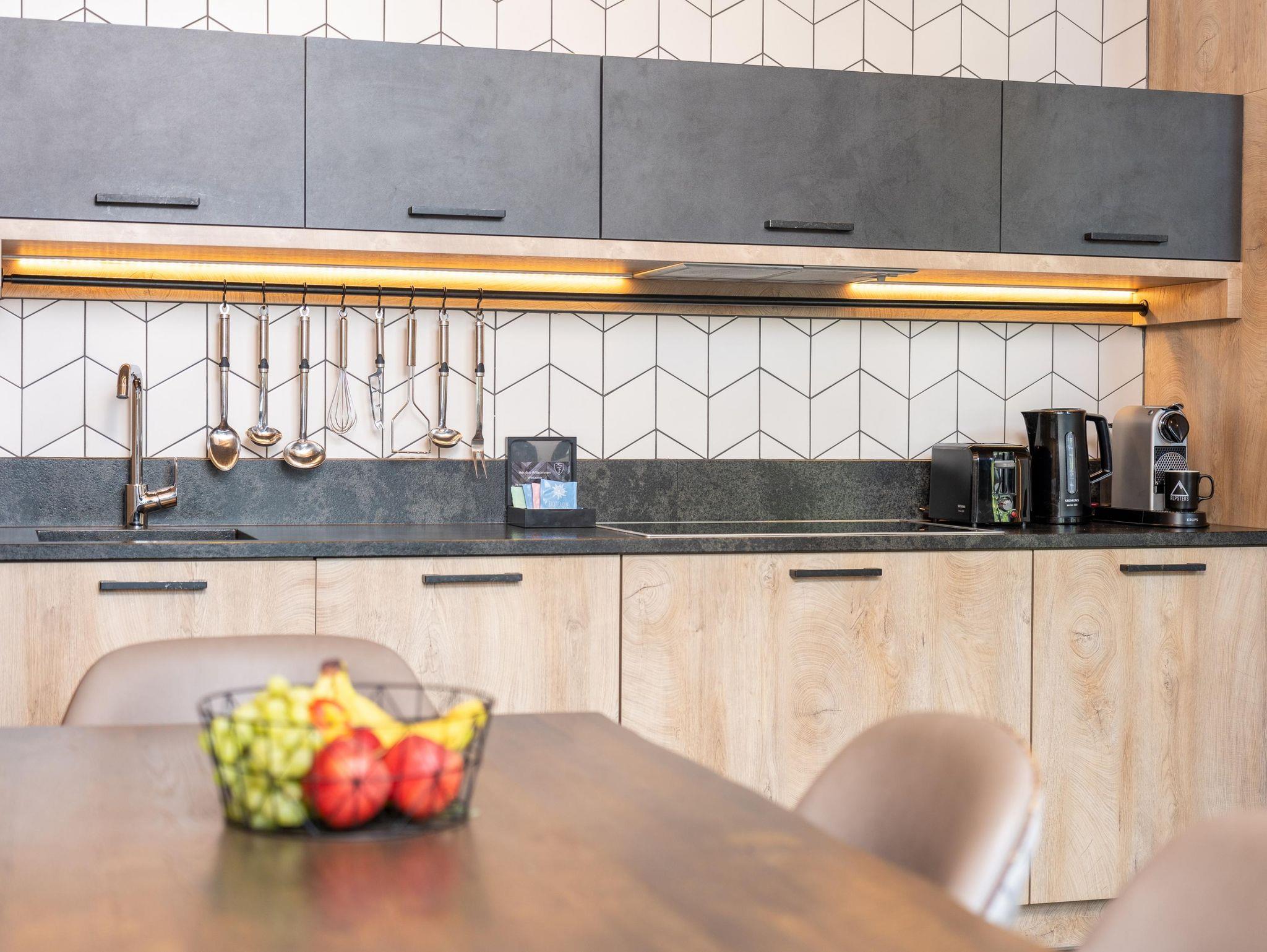 Im Design Penthouse im obersten Stock ist genug Platz für bis zu acht Personen. Es erwarten Sie drei moderne Schlafzimmer mit Doppelbetten und drei Badezimmer mit Dusche und WC. Eine Schlafcouch, ein gemütlicher Esstisch und eine voll ausgestattete moderne Küche befinden sich im großen Wohnbereich, der das Herzstück des Penthouses ist. Eine private Sauna und eine Outdoor Badewanne sorgen dafür, dass Entspannung in Ihrem Urlaub nicht zu kurz kommt. Den privaten Balkon mit weiteren Sitzmöglichkeiten können Sie direkt vom Wohnbereich aus betreten. Er ist der perfekte Ort, um die Sonne zu genießen.