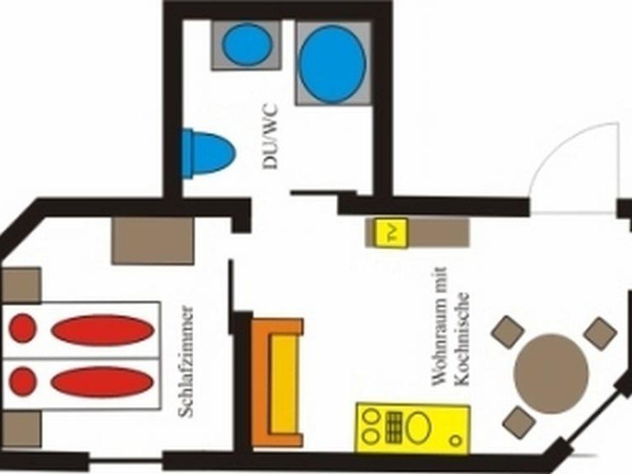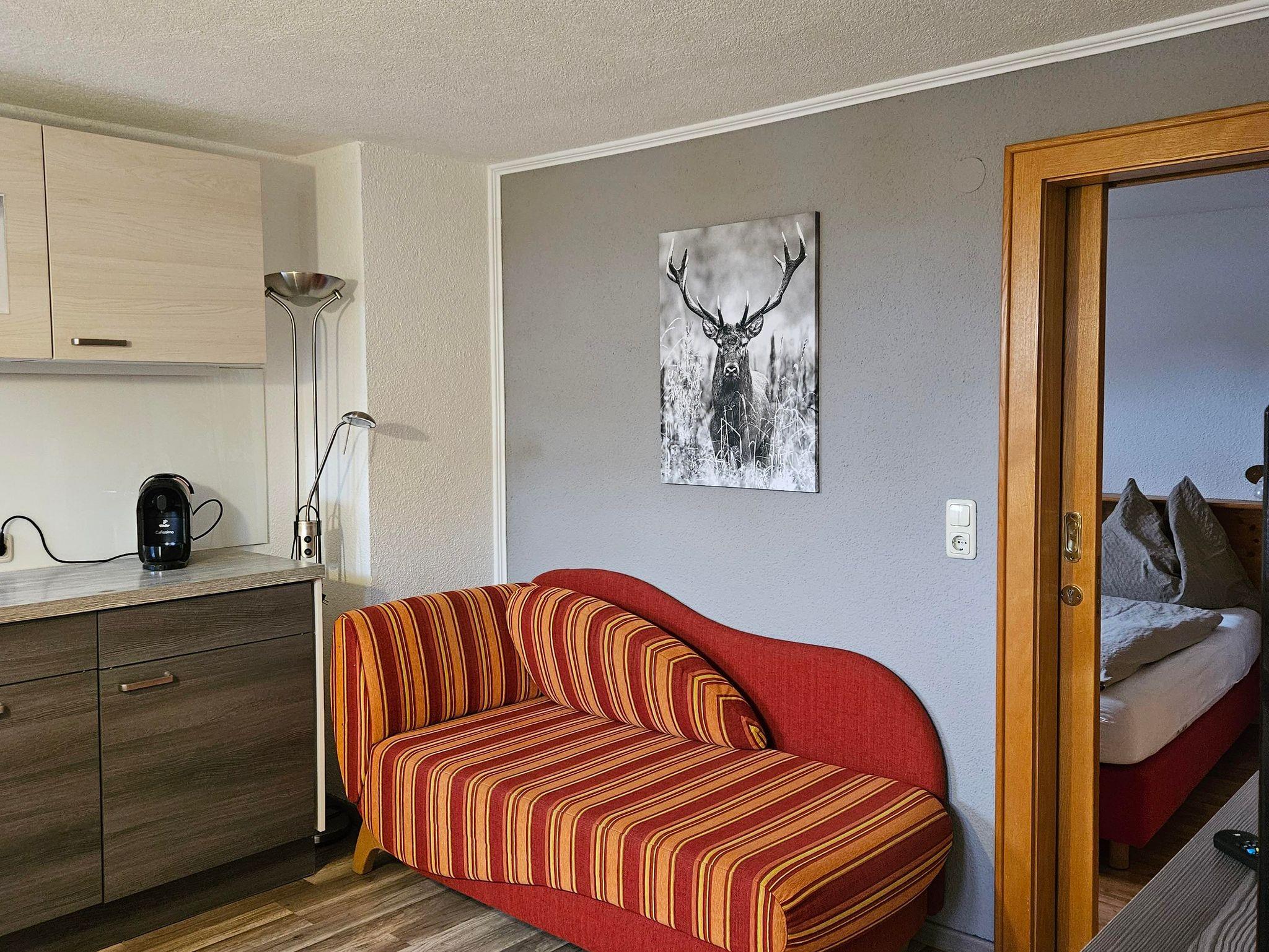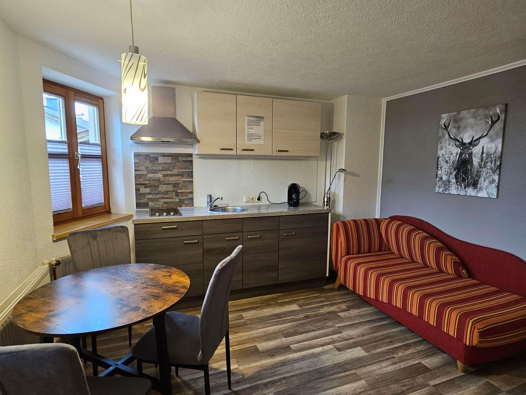 1 Schlafzimmer, 1 Wohn-Schlafraum mit Küchenblock, komplett ausgestattet 2 Platten E-Herd, Dusche, WC, Flat Sreen TV, Radio. Gratis Online-Zugang zum Internet für Laptops in den Appartements