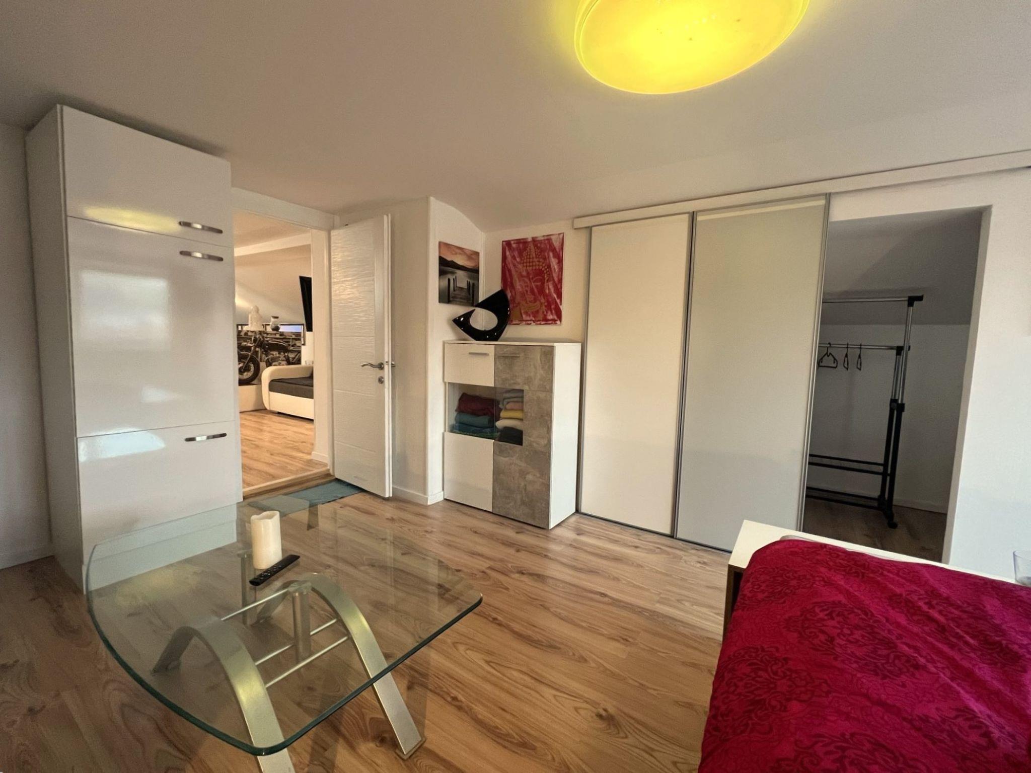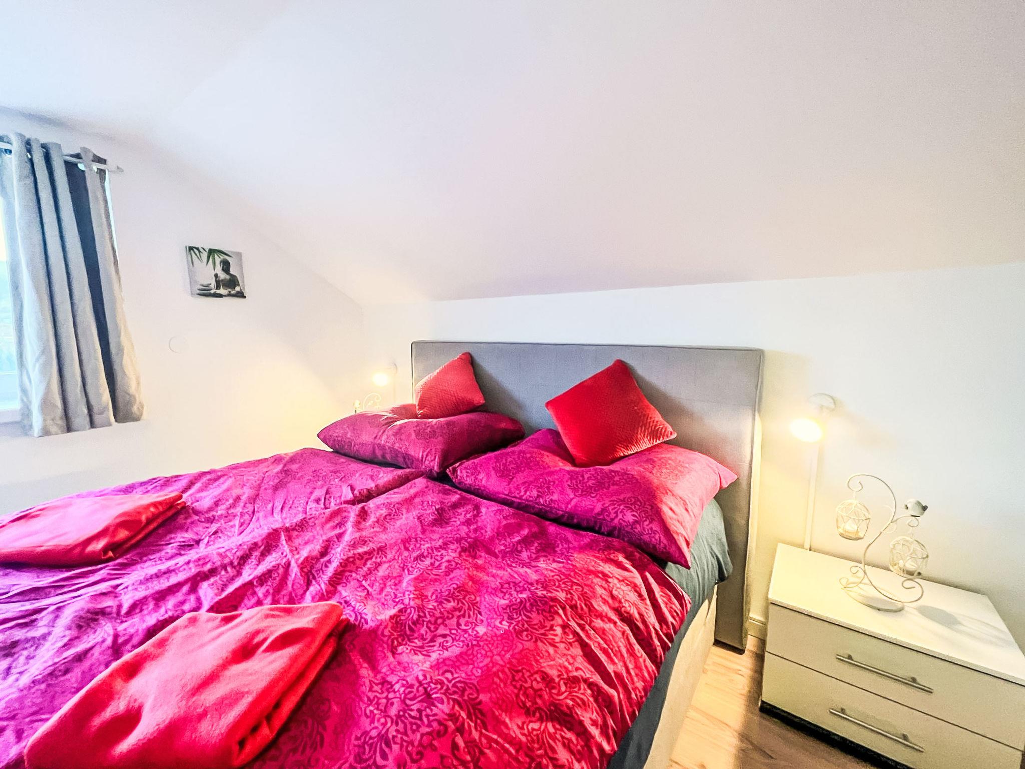 2-room apartment 70 m2 on 1st floor. Spacious and bright, partly with sloping ceilings, renovated in 2022, very comfortable and stylish furnishings: living/sleeping room with sloping ceilings with rooflight with 2 double sofabeds, TV and international TV channels (flat screen). 1 double bedroom with Dressing room. Open kitchen (4 hot plates, oven, dishwasher, kettle, microwave, electric coffee machine) with dining table and bar. Shower/WC. Electric heating. Parquet floors. Very beautiful view of the mountains. Facilities: washing machine, hair dryer. Internet (WiFi, free). Please note: non-smokers only. Maximum 2 pets/ dogs allowed.