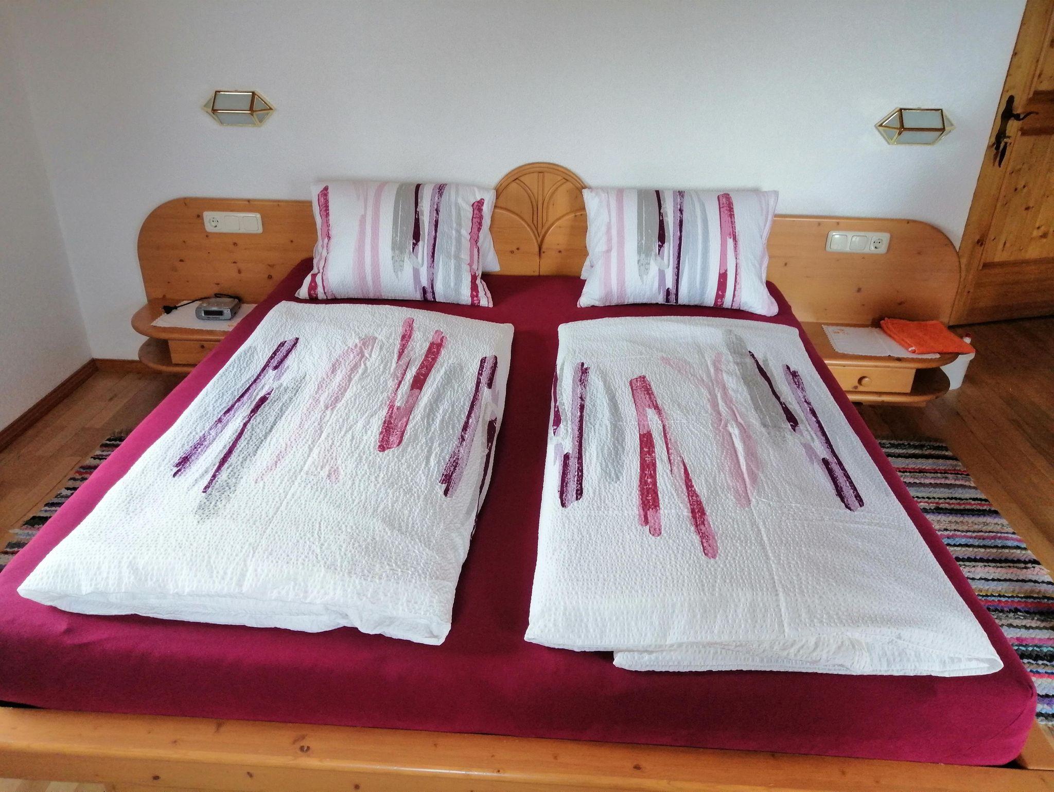 Appartement (ca. 40 m²) mit 1 Schlafzimmer mit Dusche/WC u. Balkon, Garderobe, komplette Wohnküche, Sat-TV, sonnige u. ruhige Lage mit herrlicher Aussicht ins Hochpustertal. W-LAN, Bettwäsche u. Handtücher sind vorhanden. Brotservice!