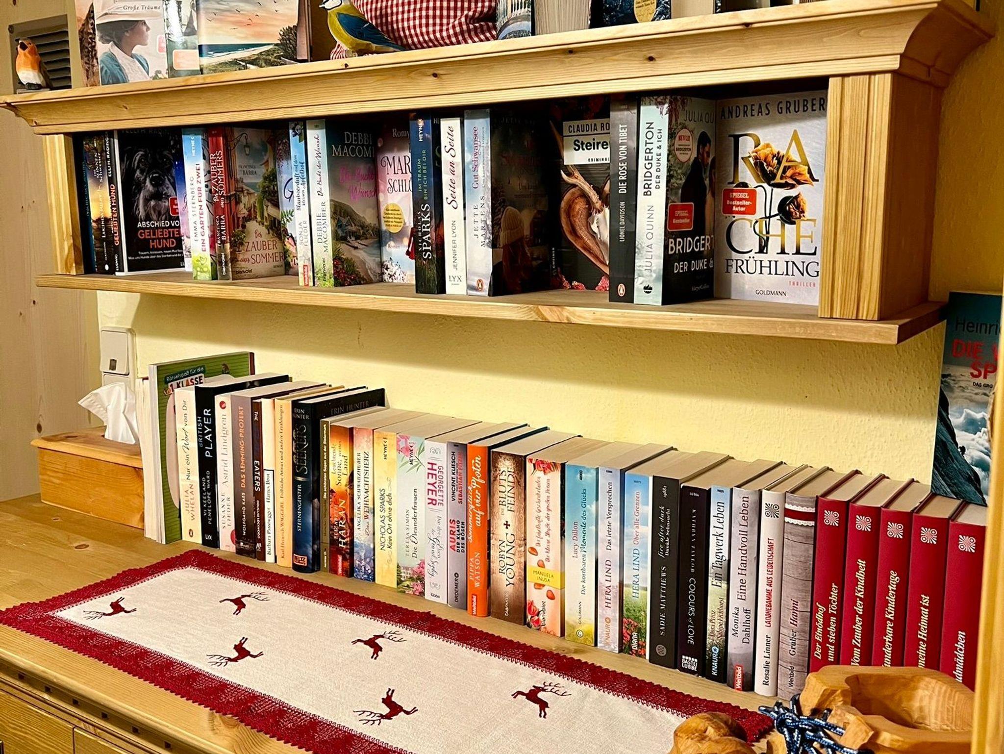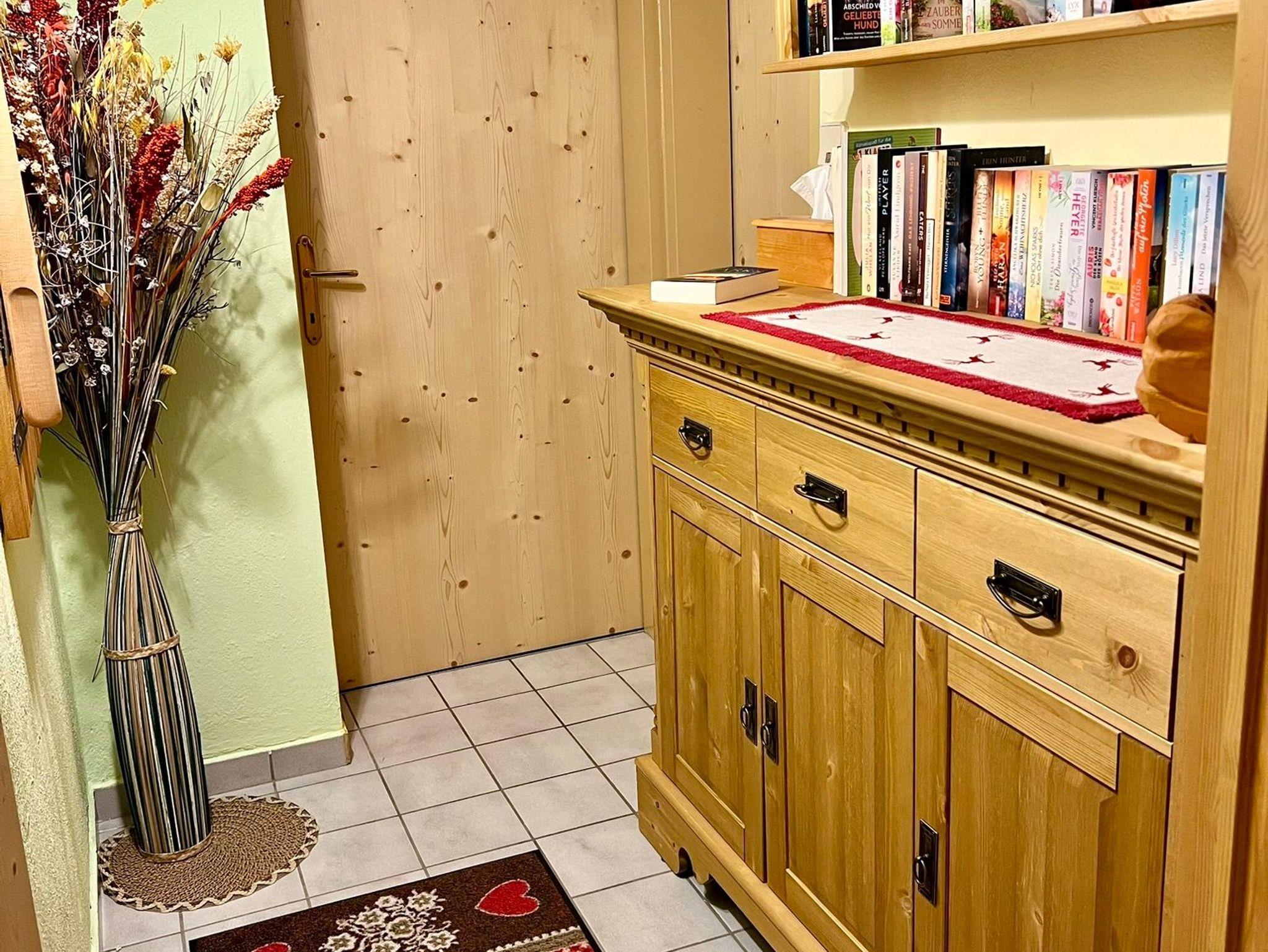 Flur mit schöner Landhauskommode und vielen aktuellen Büchern.