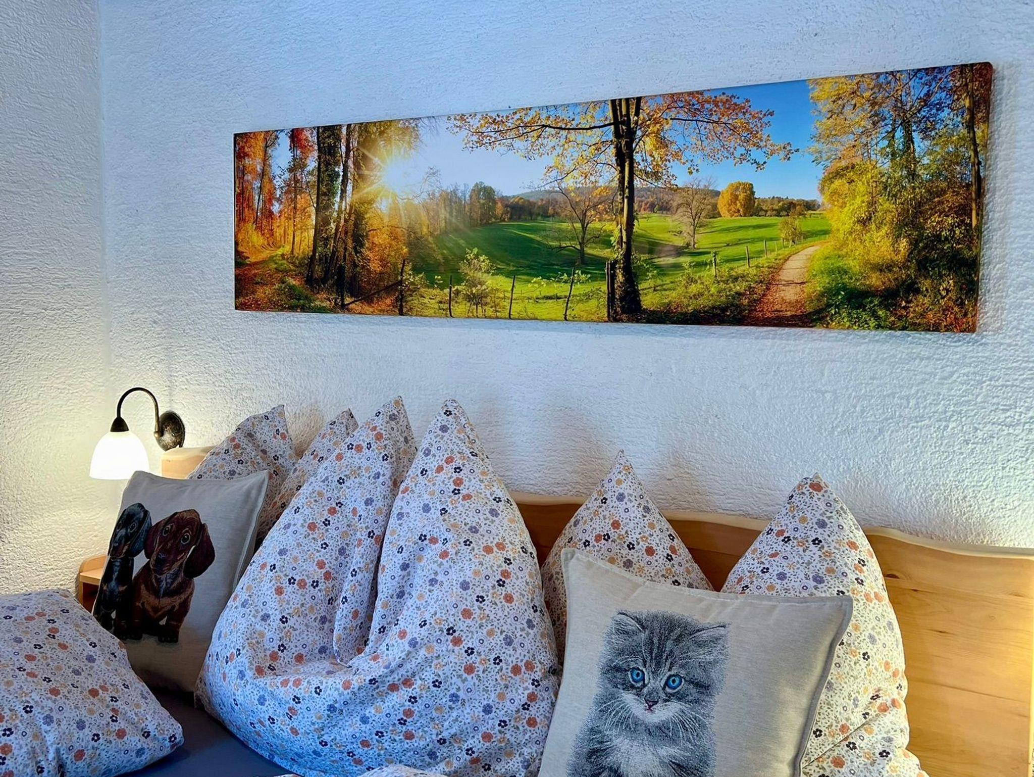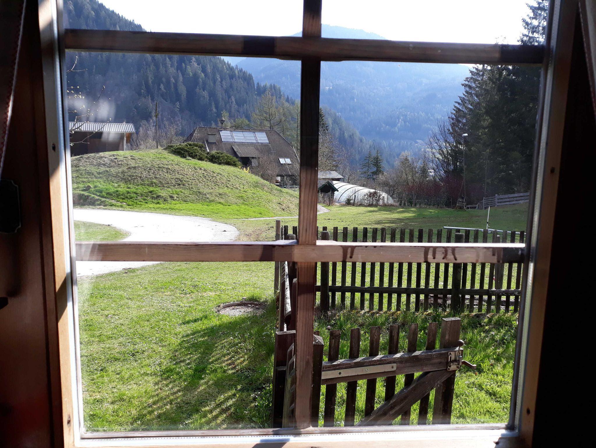 Lage: An einer Wiese und einem Hang mit nur einem Nachbarhaus und weitläufigen Wanderwegen direkt hinter der Hütte.
