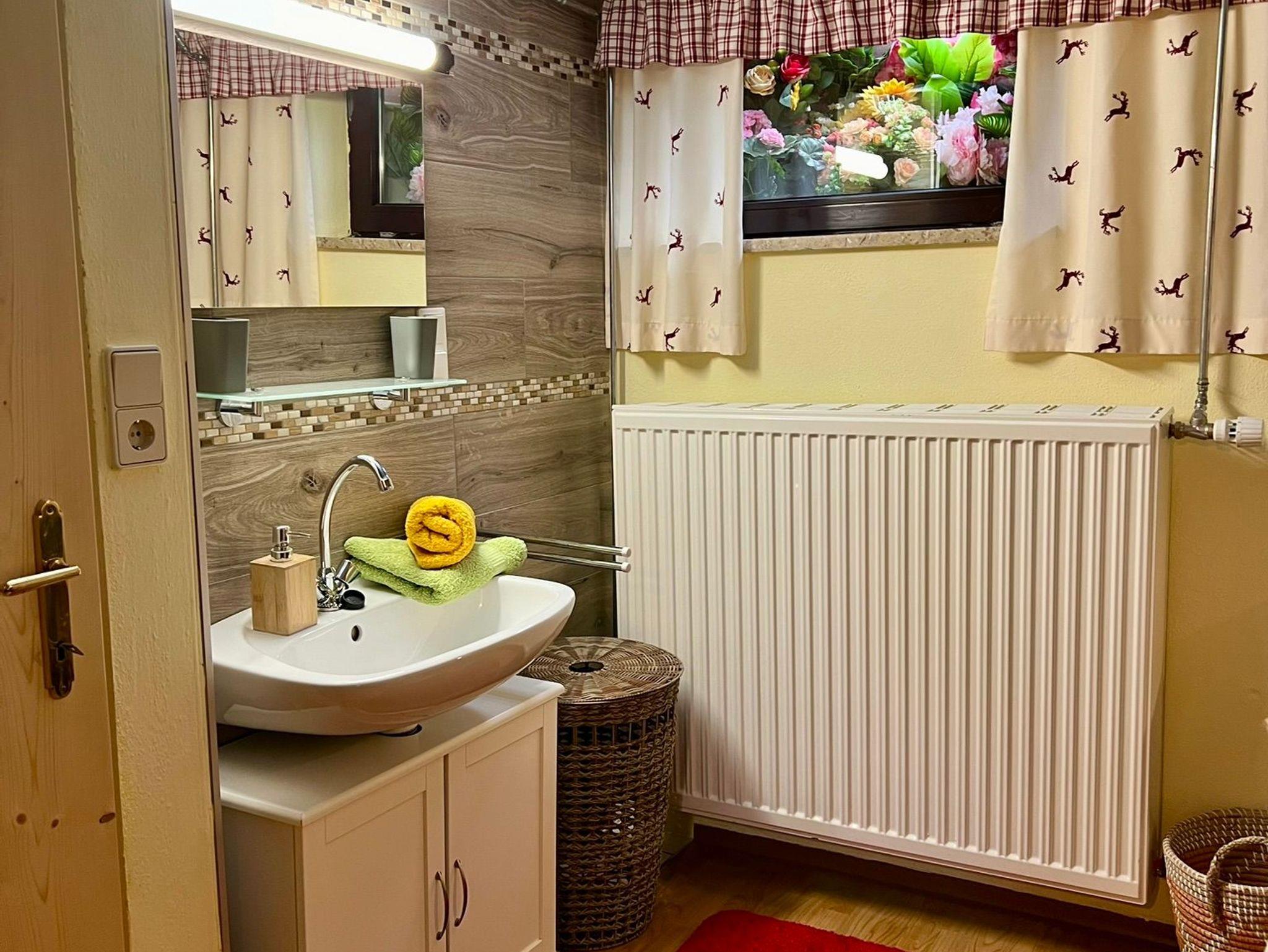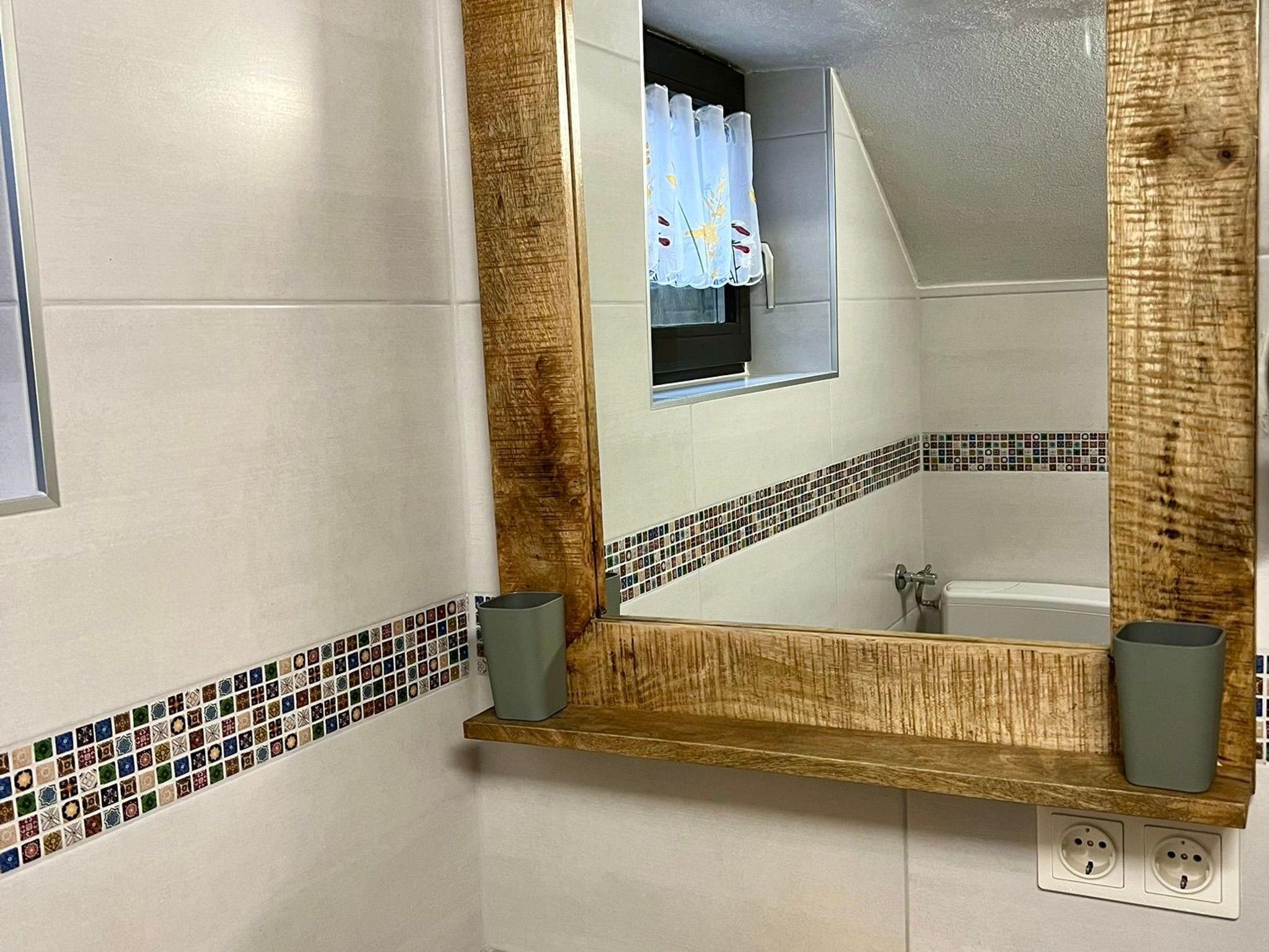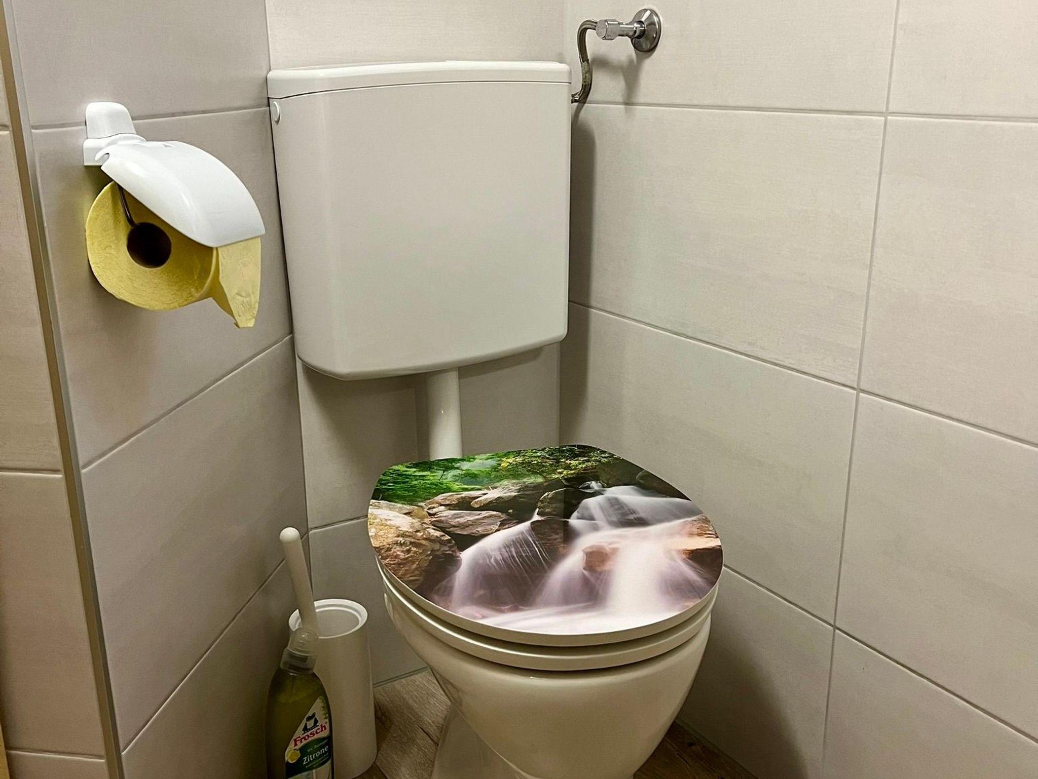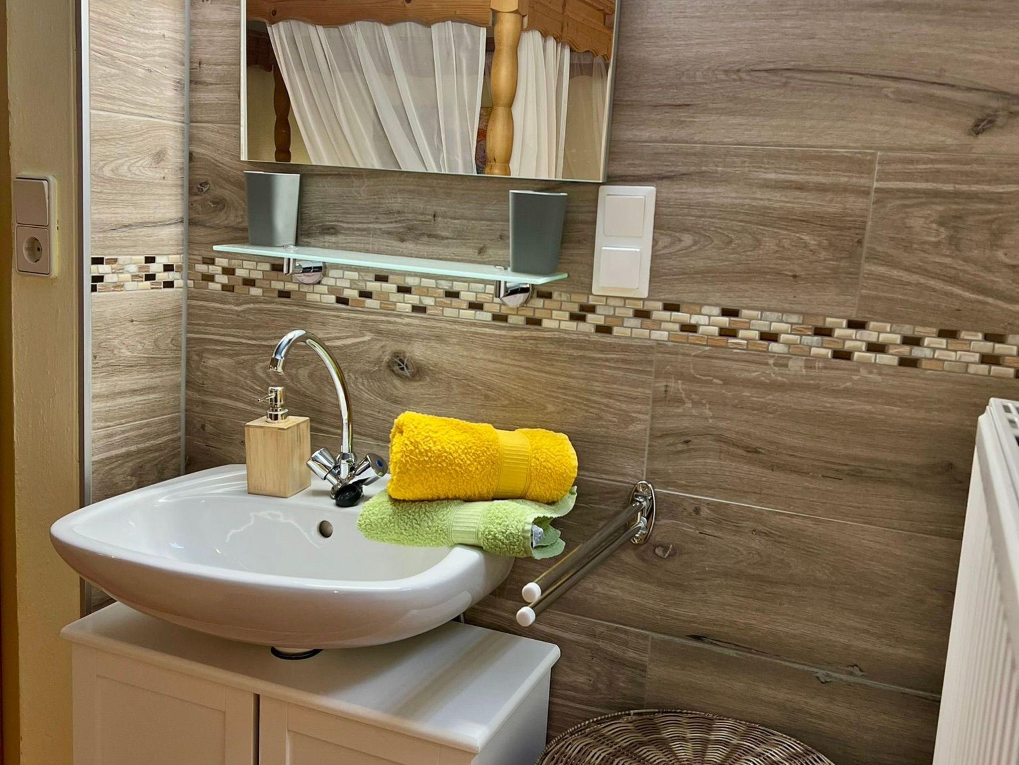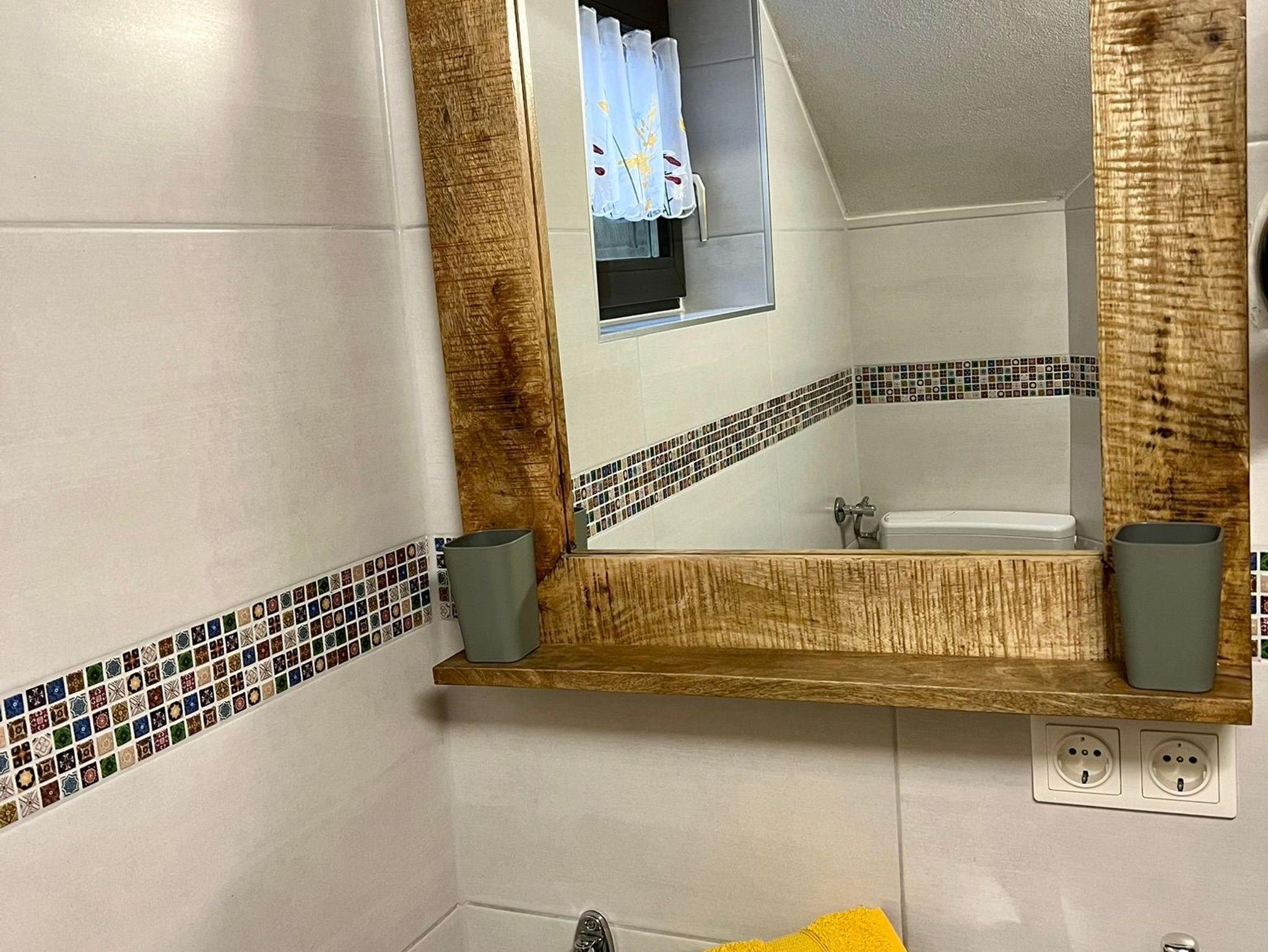 WC mit Waschbecken, Bodenheizung, Boiler und Spiegel