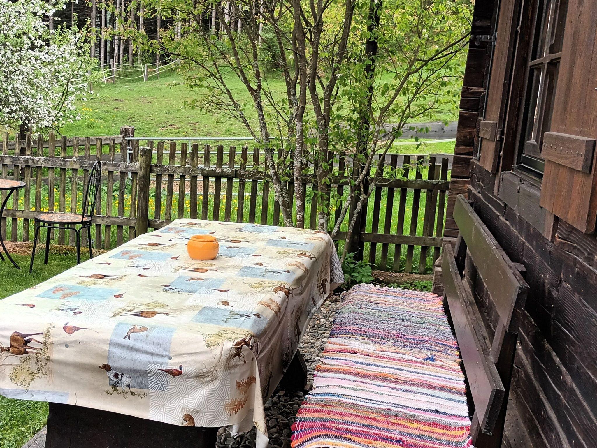 Im umzäunten Garten rund um die Hütte laden Bänkchen zum Sonnensitzen ein und ganz nebenbei kann Ihr Hund sich so richtig austoben. Die große Garage ist gratis benutzbar und in der Holzhütte lagert genug Brennholz für lange Grillabende oder Kachelofenfeuer.