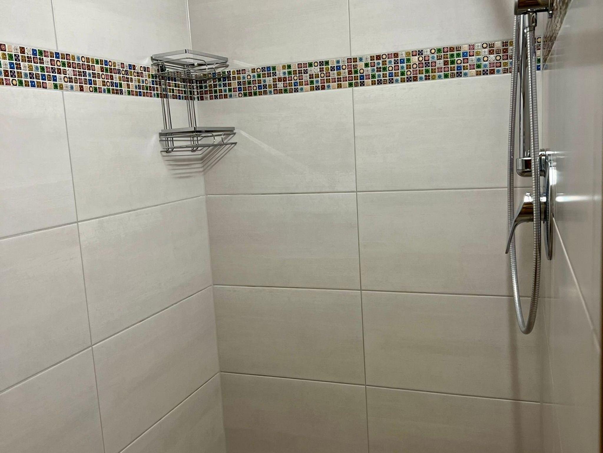 Dusche barrierefrei, mit Heizkörper und Bodenheizung