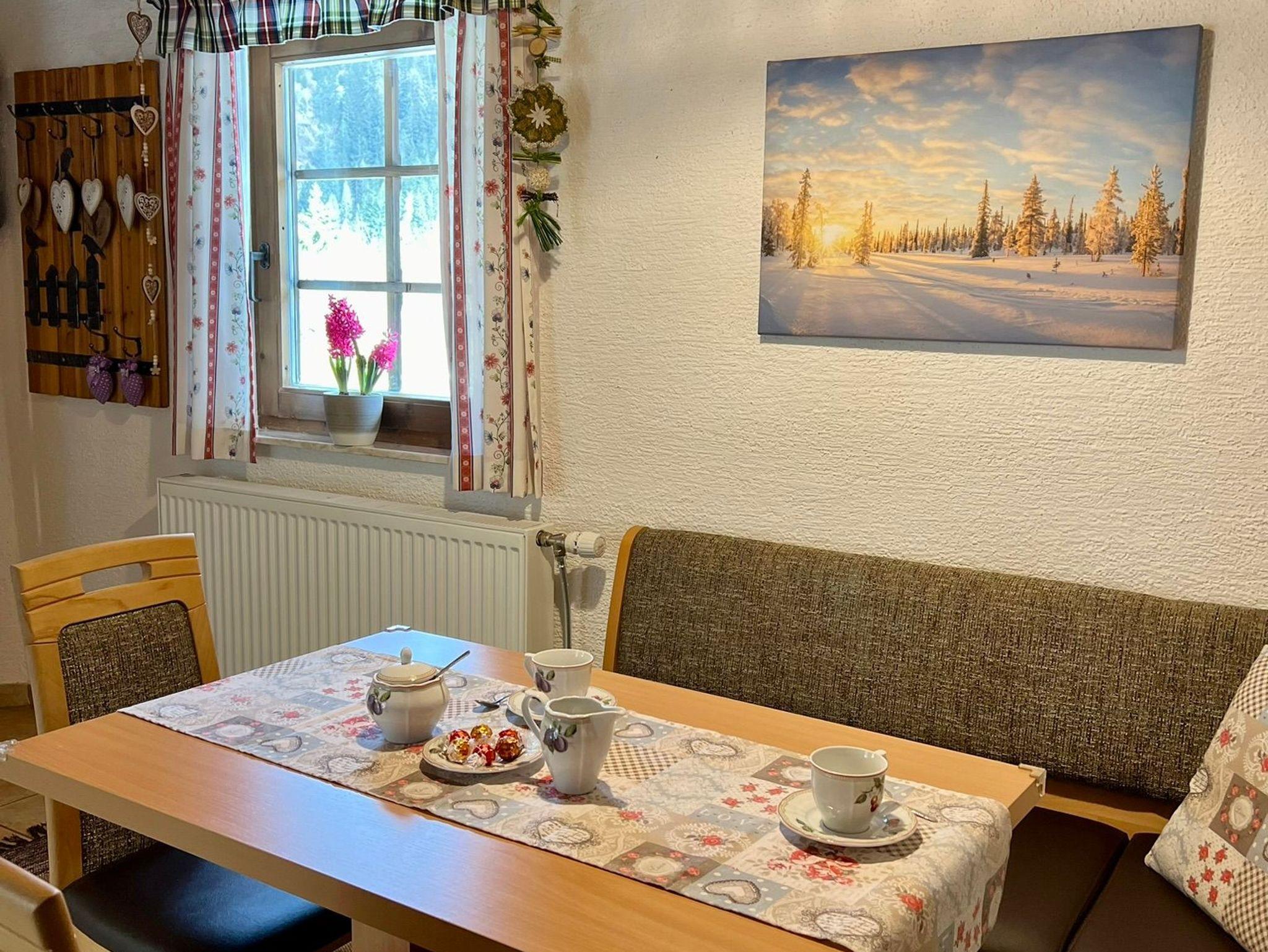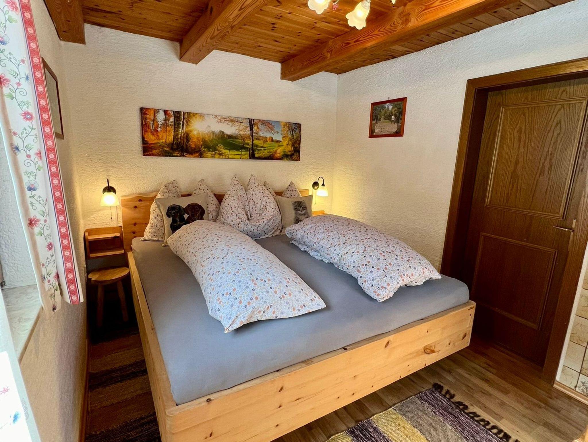 Die rustikale Hütte hat schöne Räume in Erd- und Untergeschoß, eine möblierte Terrasse, Holzkohlegrill, gratis Garage, Kachelofen, gemütlichen Wohn-Essbereich mit schönen Holzmöbeln sowie einem duftendem Zirbenbett und einem Himmelbett, Samsung Sat-TV in jedem Schlafzimmer, Bodenheizung und Zentralheizung sowie eine große barrierefreie Dusche und WLAN im gesamten Gebäude bieten allen Komfort.