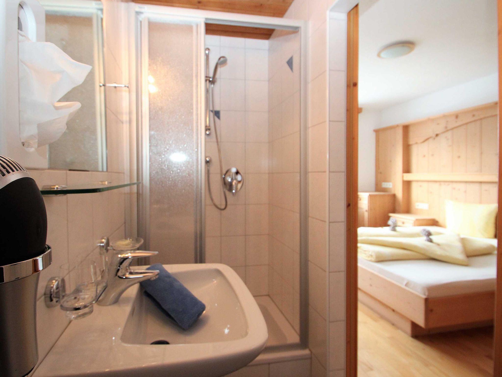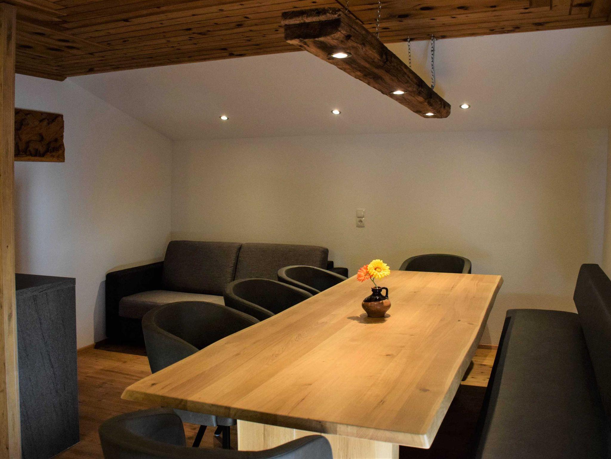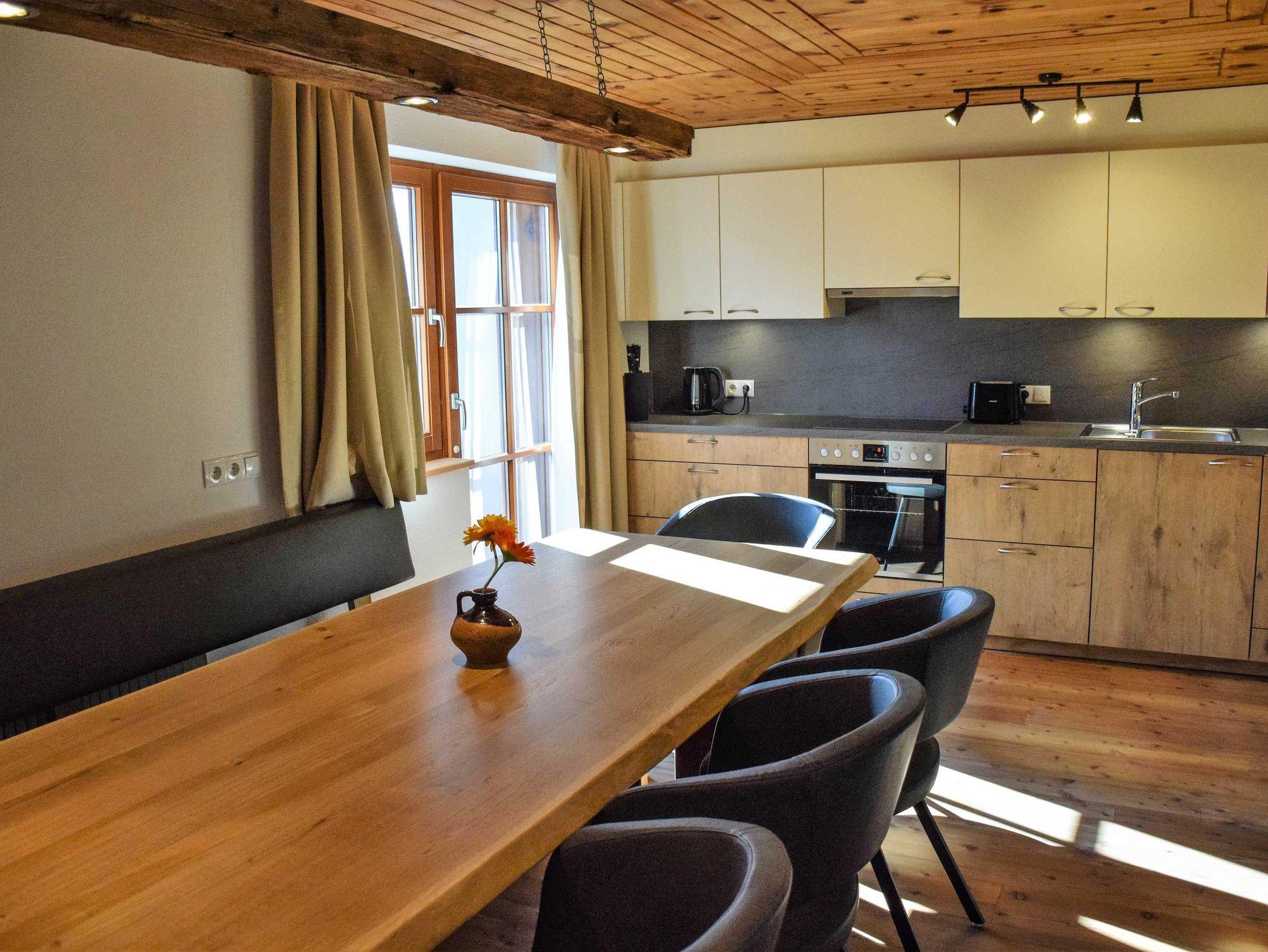 großzügiges Apartment im modernen Tiroler Landhausstil mit herrlichem Ausblick und Südbalkon, voll ausgestattete Wohnküche mit Geschirrspüler, Backrohr, Mikrowelle; Couch, Sat-TV, Wifi, jedes Zimmer mit eigenem Bad, Infrarotkabine; im 1. Stock über eine Treppe erreichbar