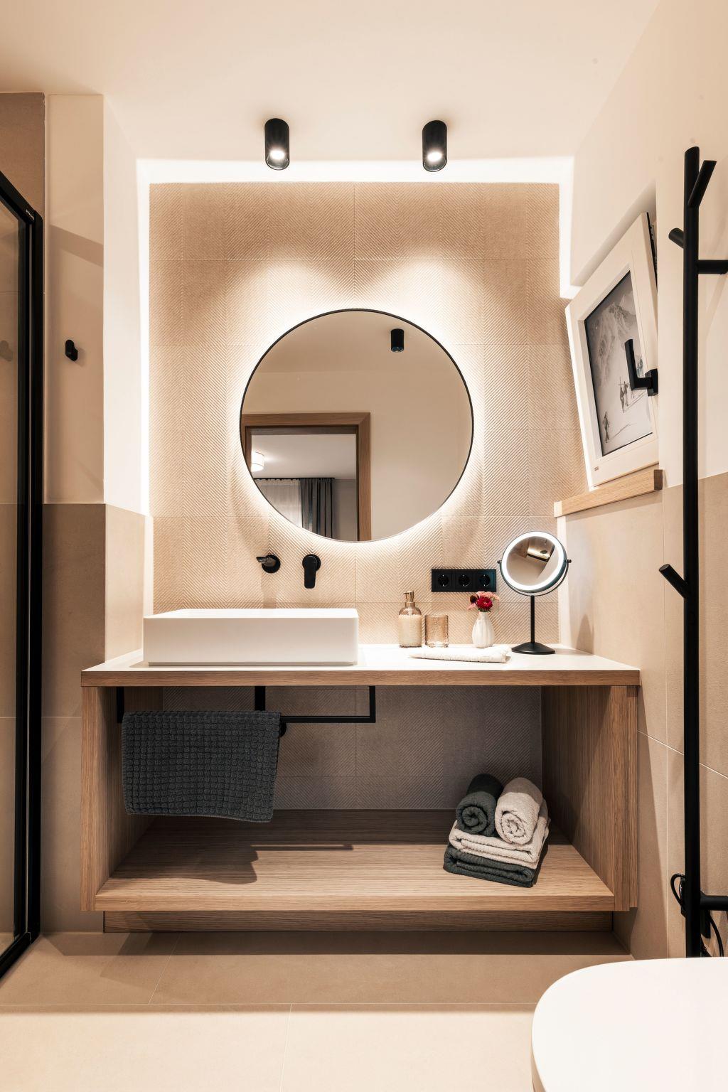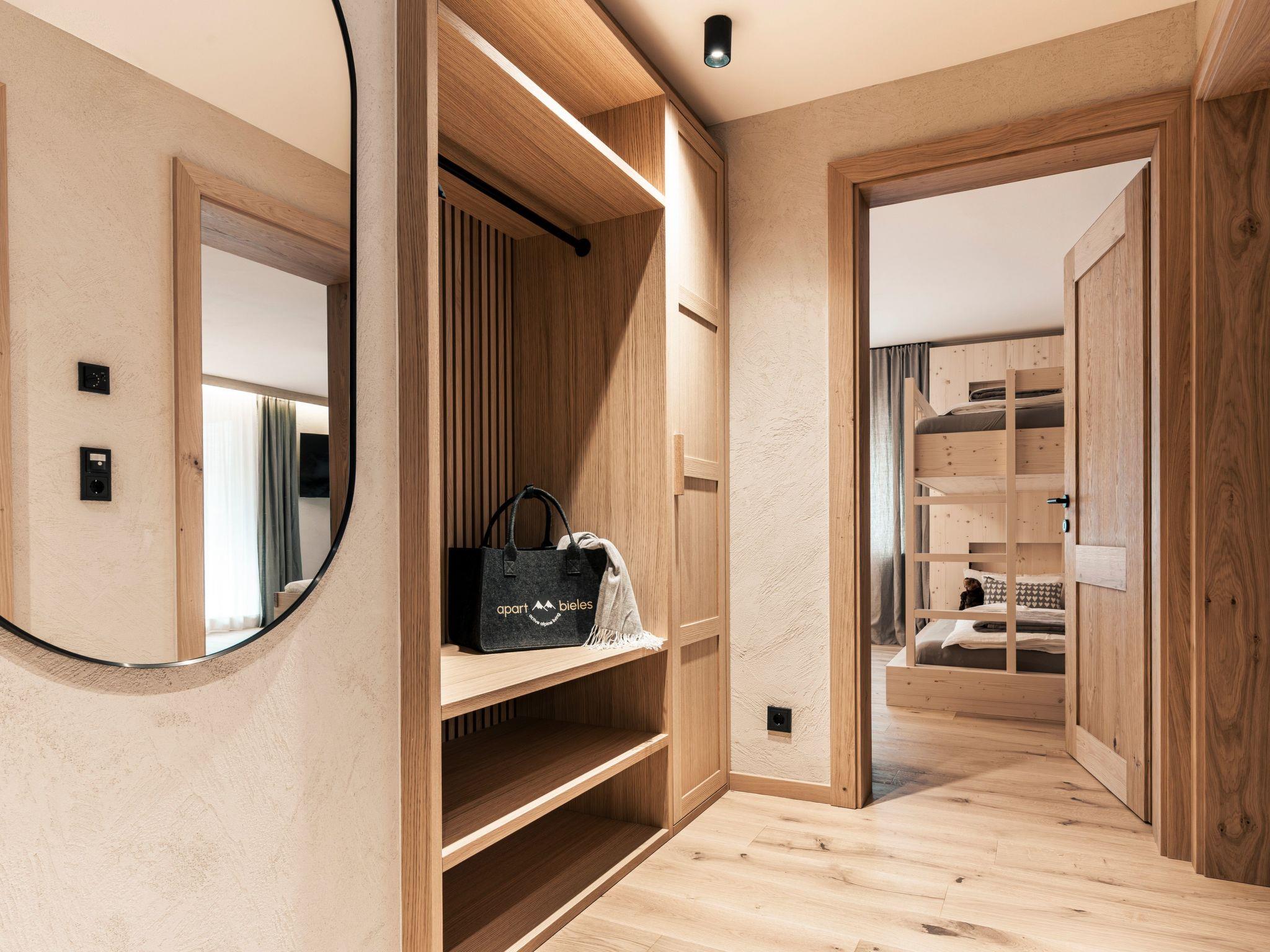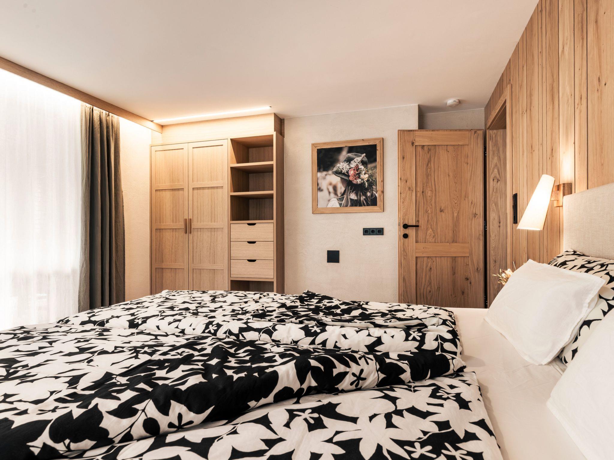 The flat has two cosy bedrooms, two modern bathrooms and a living room with alpine charm, with a fully equipped kitchen including a wood-burning cooker that can be used for warmth and cosiness.