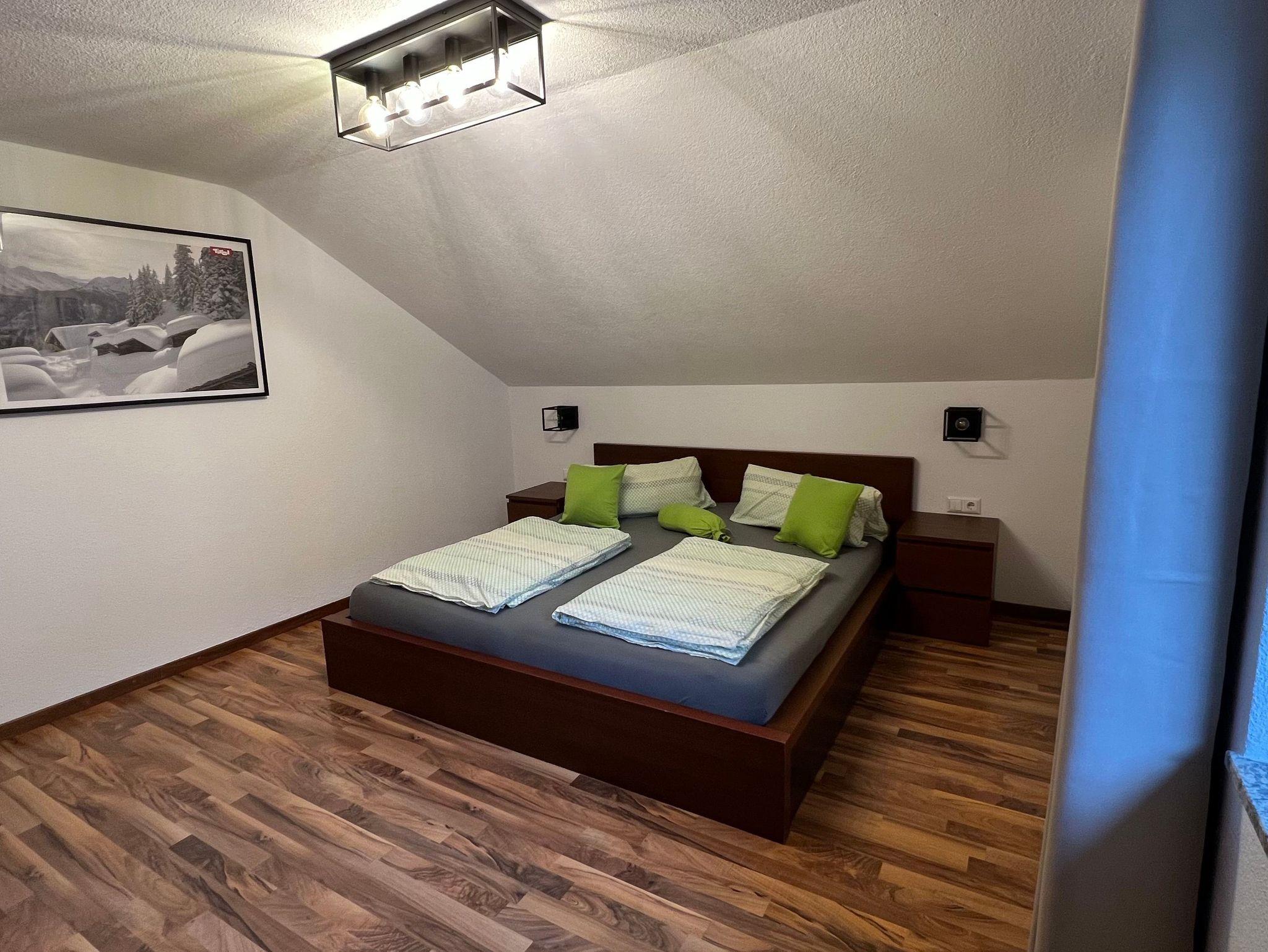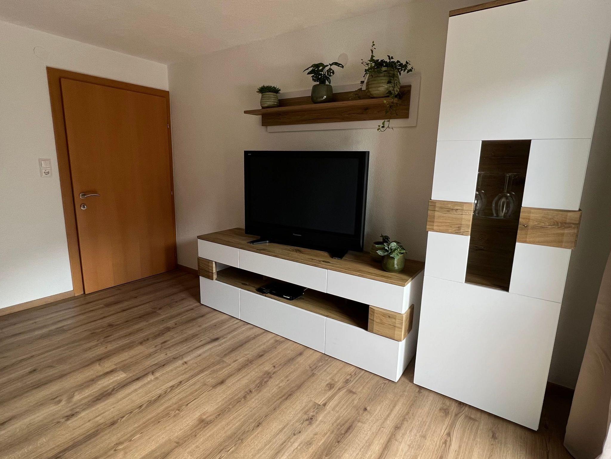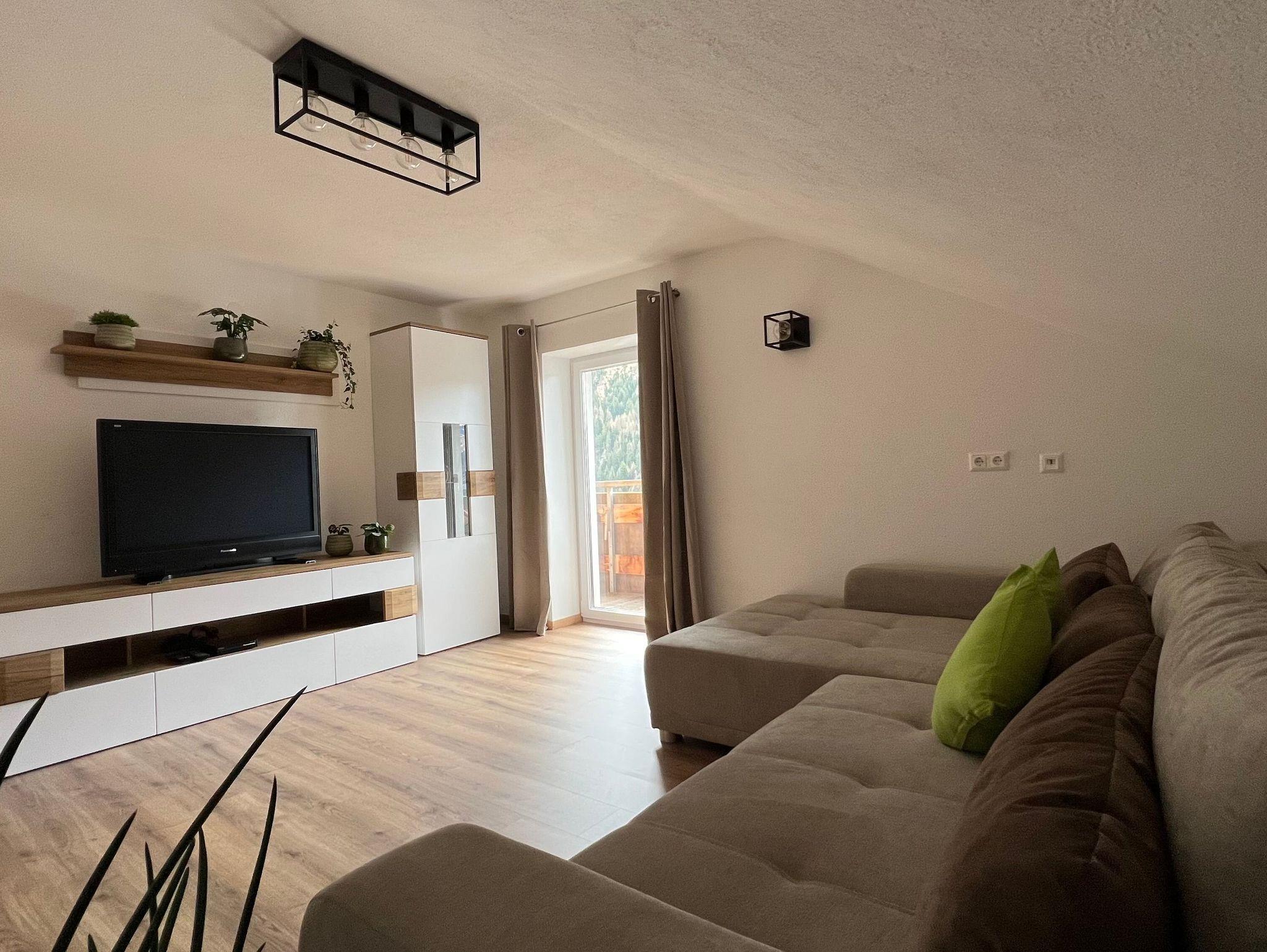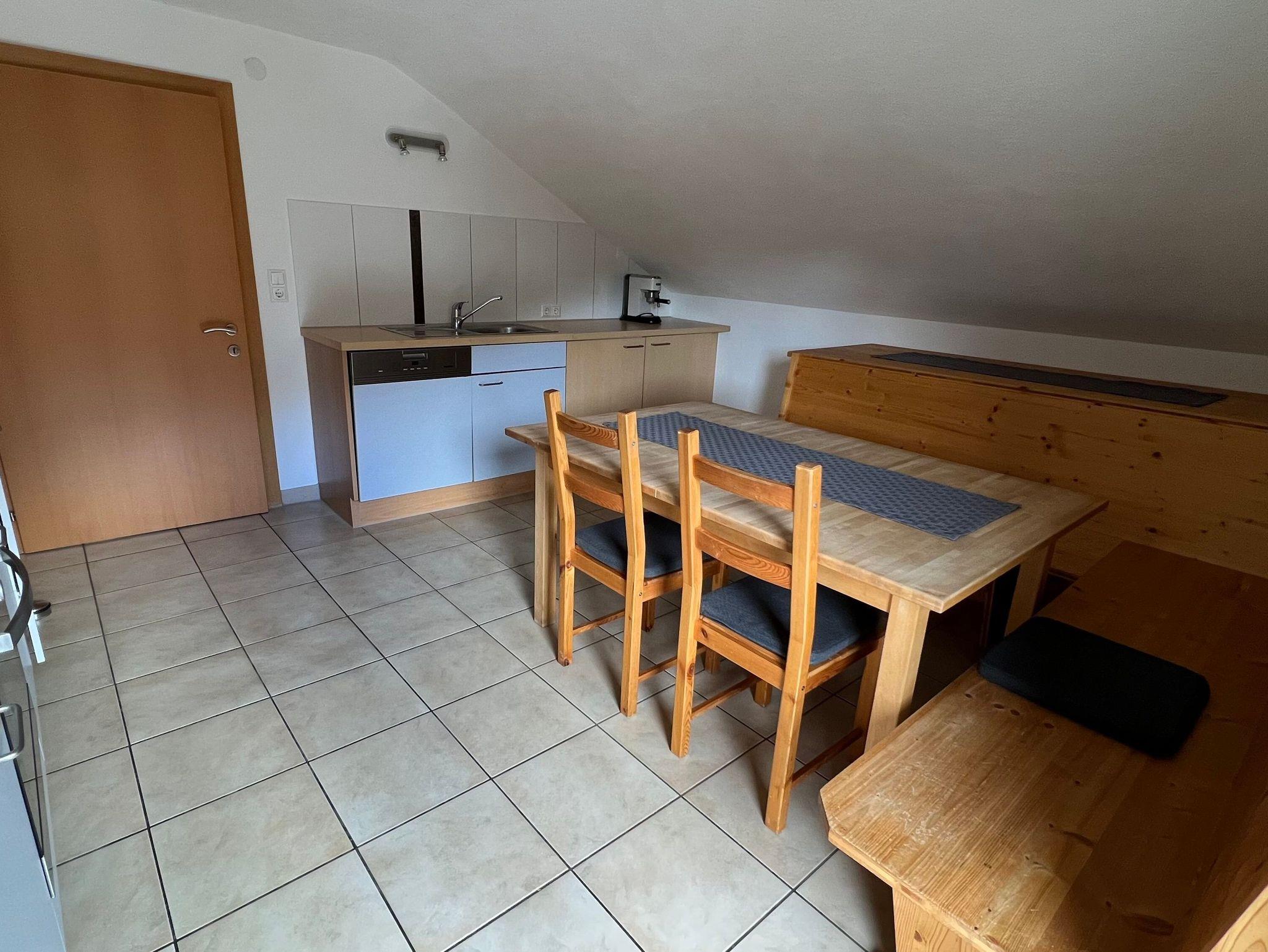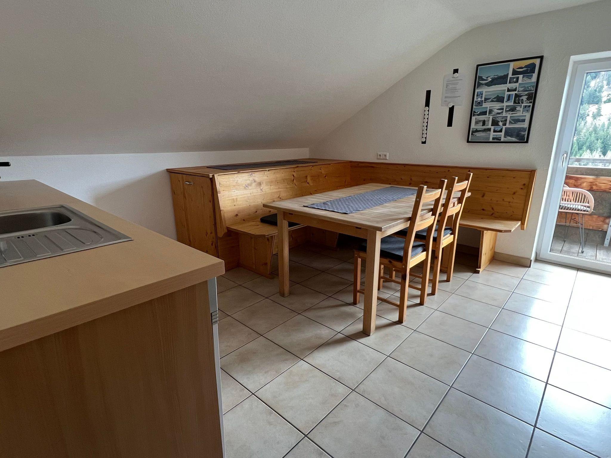 Die Wohnung besticht durch seine großen Räume und den südseitigen Sonnenbalkon mit kleinem Frühstückstisch, welcher Sommer wie Winter mit einer traumhaften Aussicht zum verweilen einlädt. Der Eingang zur Ferienwohnung führt über eine eigene Eisentreppe, über welche man auch direkt auf die große, eigens zur Ferienwohnung gehörende Terrasse kommt. Die Terrasse besteht aus einem Esstisch für 7 Personen welcher überdacht ist, sowie über einen Sitz- bzw. Liegebereich im nicht überdachten Bereich.
