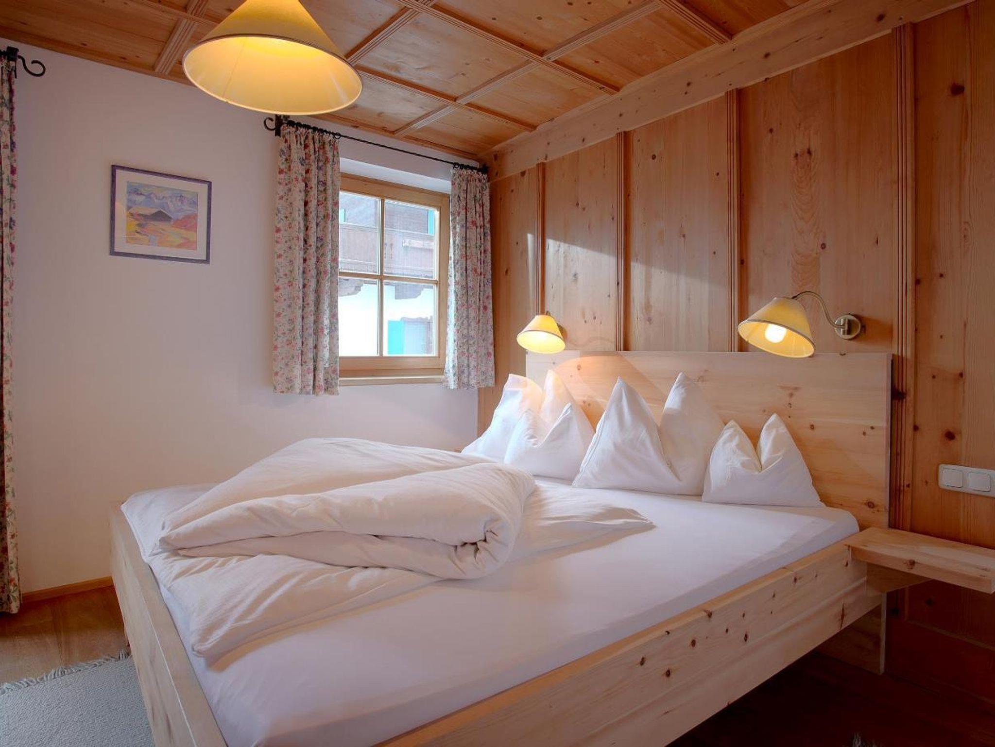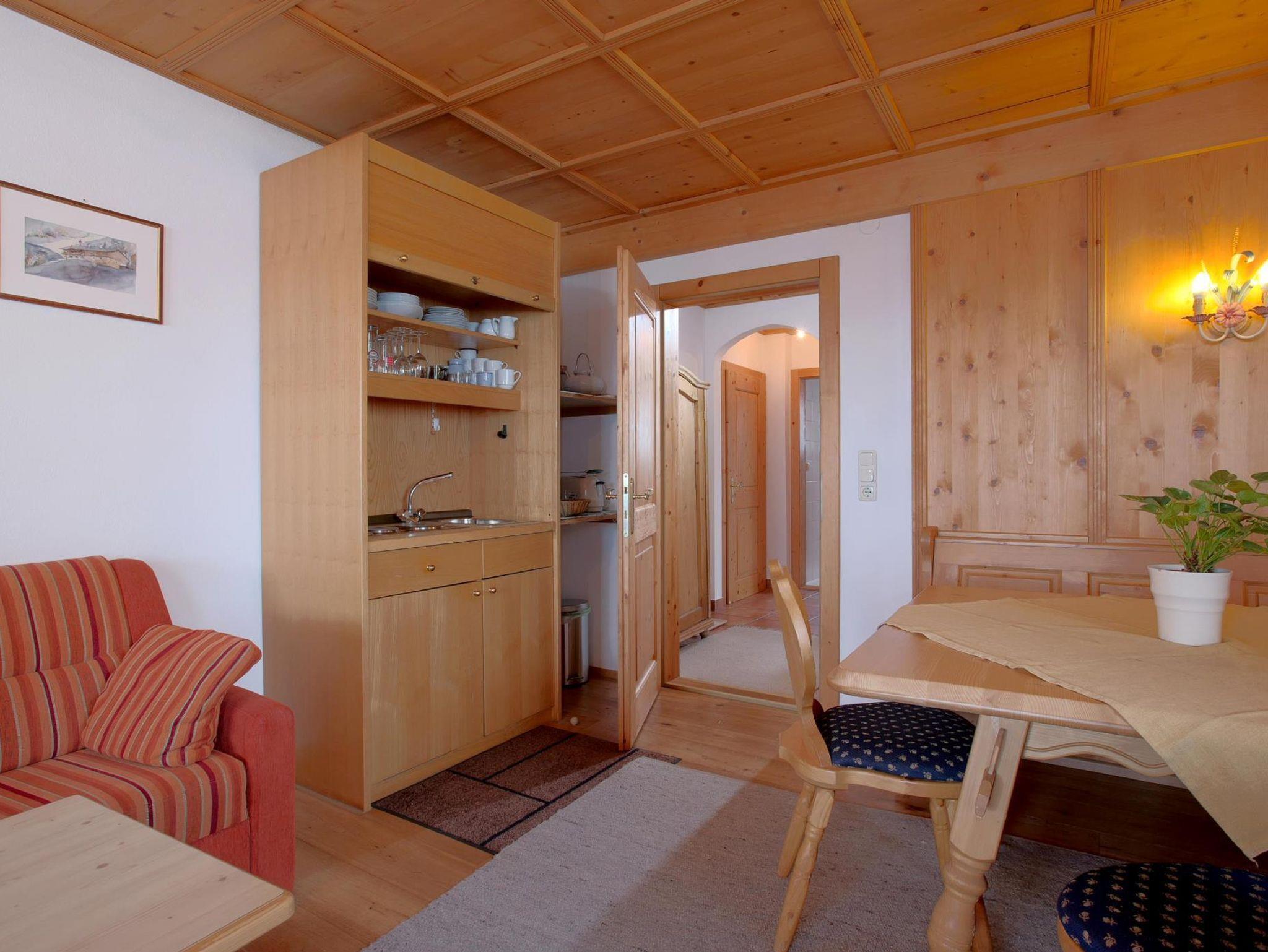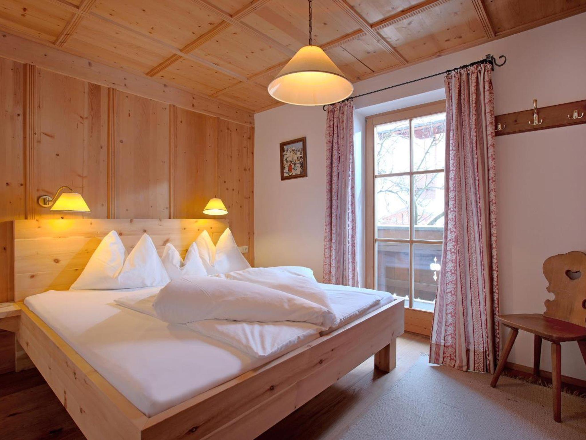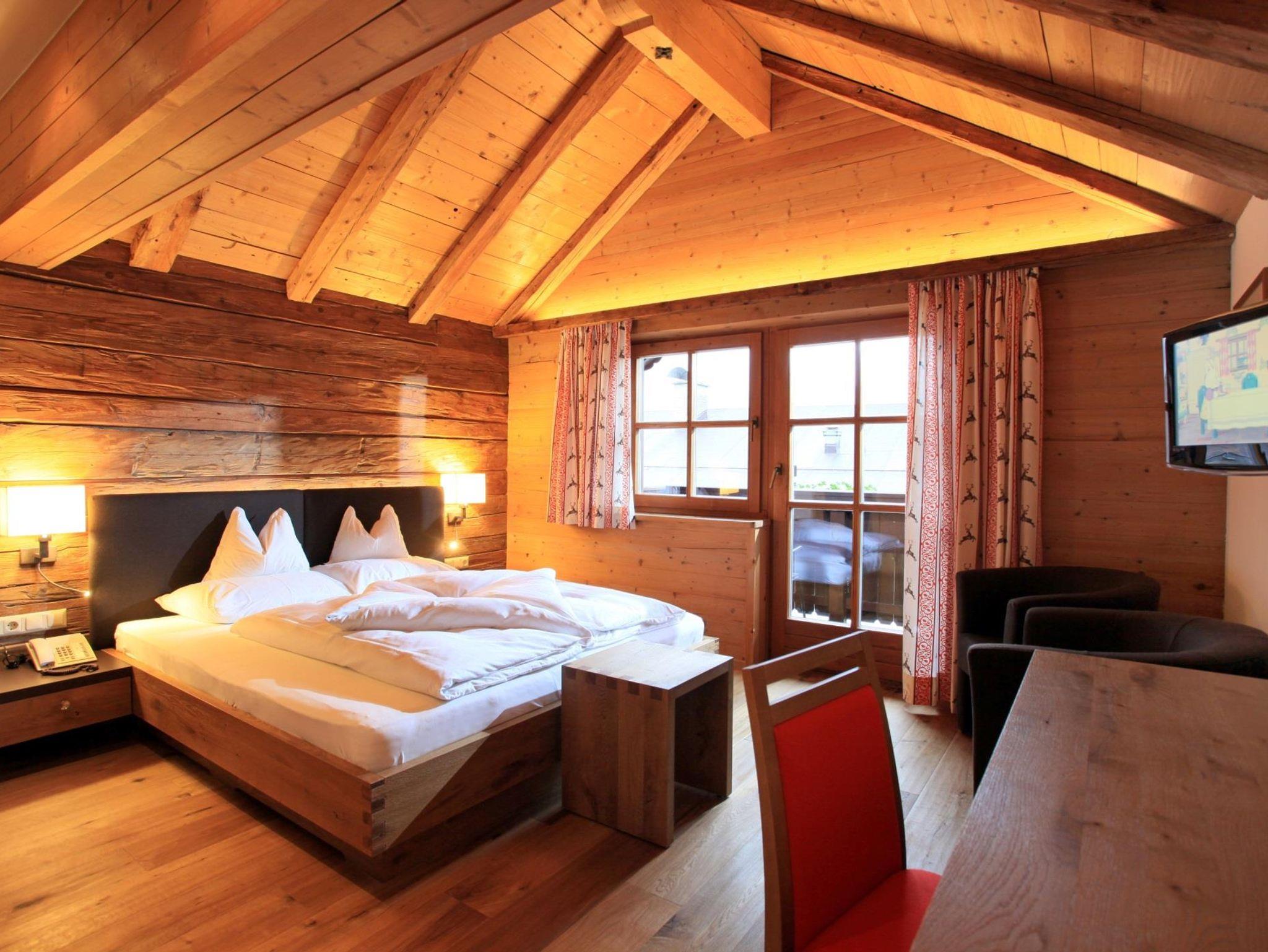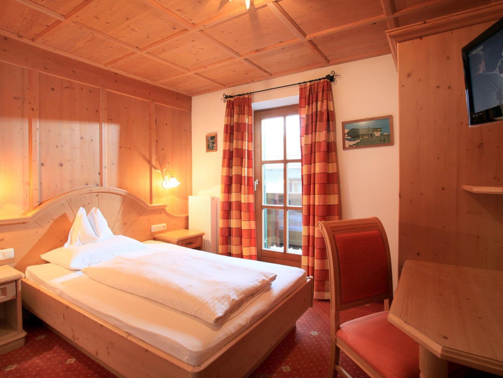 Die Zimmer und Appartements sind alle im Tiroler Stil gehalten und mit Holz möbliert.