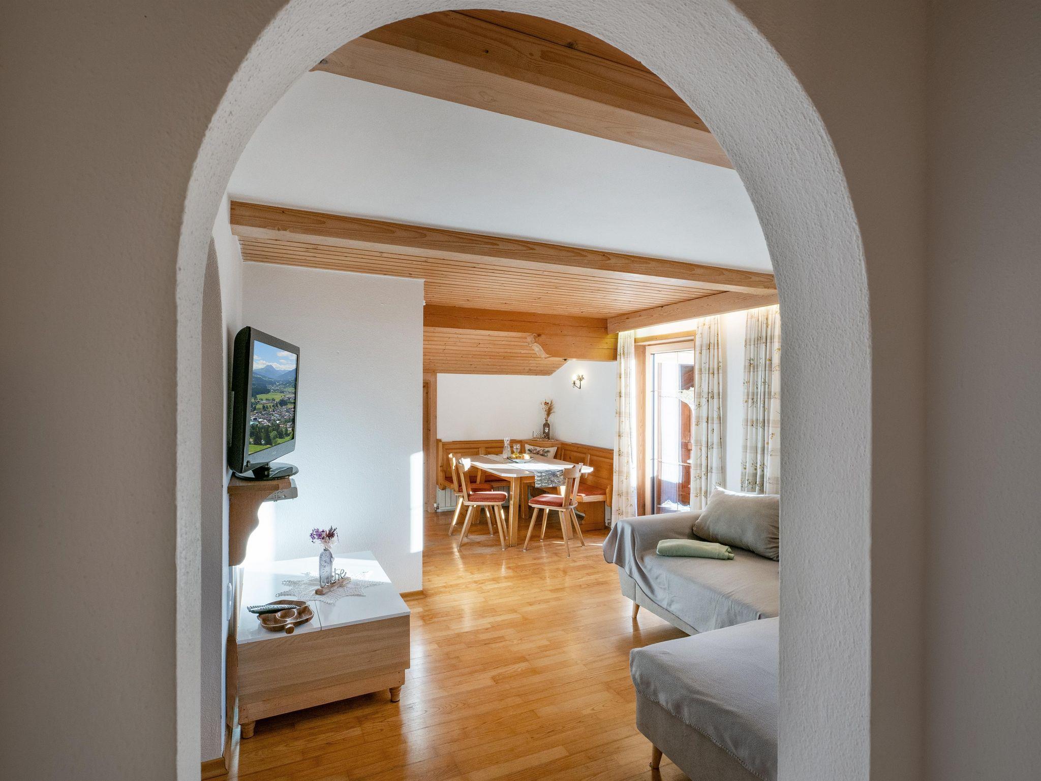 Unser neu renoviertes Appartement Talblick befindet sich im 2. Obergeschoss. Es verfügt über helle Räume die aufgeteilt sind in: 3 Schlafzimmer mit Doppelbetten, einer Wohnküche , einem Badezimmer mit Dusche und Waschbecken, einem Badezimmer mit Dusche, Waschbecken und Toilette und einem extra WC.