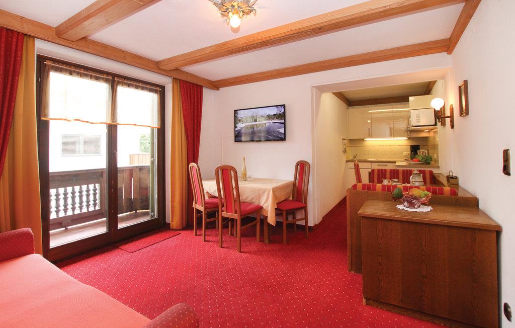 I jeres ferielejlighed, som ligger i et traditionelt hus, bor I centralt og alligevel med en vidunderlig udsigt over de omkringliggende bjerge. Værelserne er indrettet i klassisk tyrolerstil med masser af træ, varme farver og kærlige detaljer. Hyg jer sammen i den komfortable sofa, eller sæt jer ved spisebordet for at nyde et godt måltid. Det kompakte køkken giver jer mulighed for selv at lave mad under ferien.