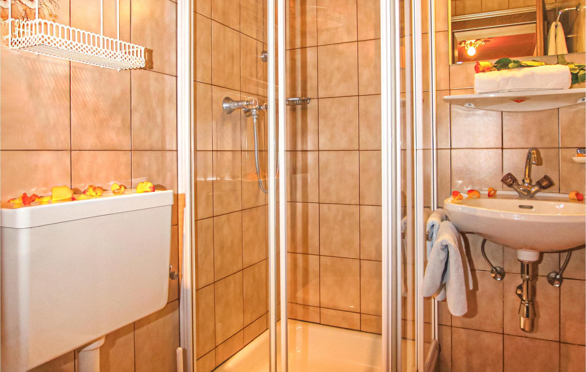 Badeværelse (nr. 1) - WC. Varmt og koldt vand. Bruser