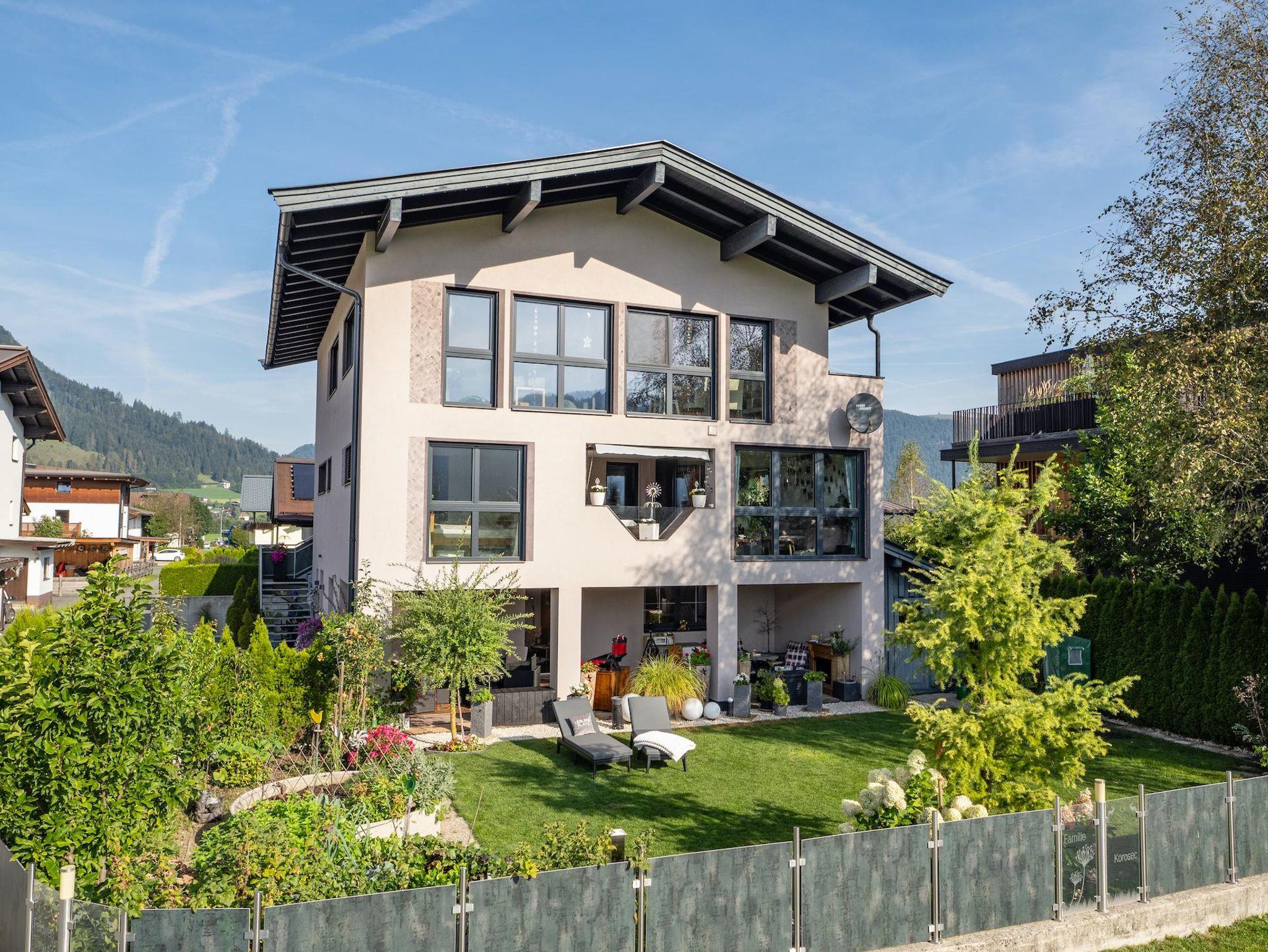 Gemütliches, nettes Einfamilienhaus, zwischen Kirchdorf und St. Johann in Tirol im Ortsteil Moosen gelegen, mit schönem Ausblick auf das Kitzbüheler Horn und den Wilden Kaiser.Im Sommer neben dem Radweg im Winter direkt neben der Langlaufloipe 5 min von der Bushaltestelle entfernt und 5 min ins Einkaufzentrum Die Wohnung befindet sich im Parterre mit Garten überdachter Terrasse ink.Gasgriller ideal für Familien mit Kindern Diverse Spielgerette vorhanden zb.Tischfussball Federball usw.