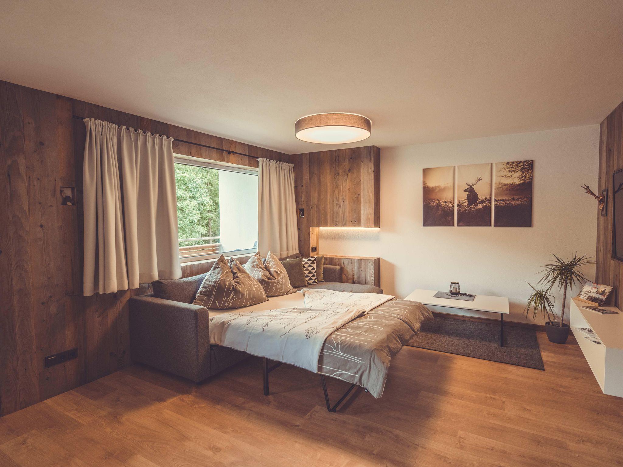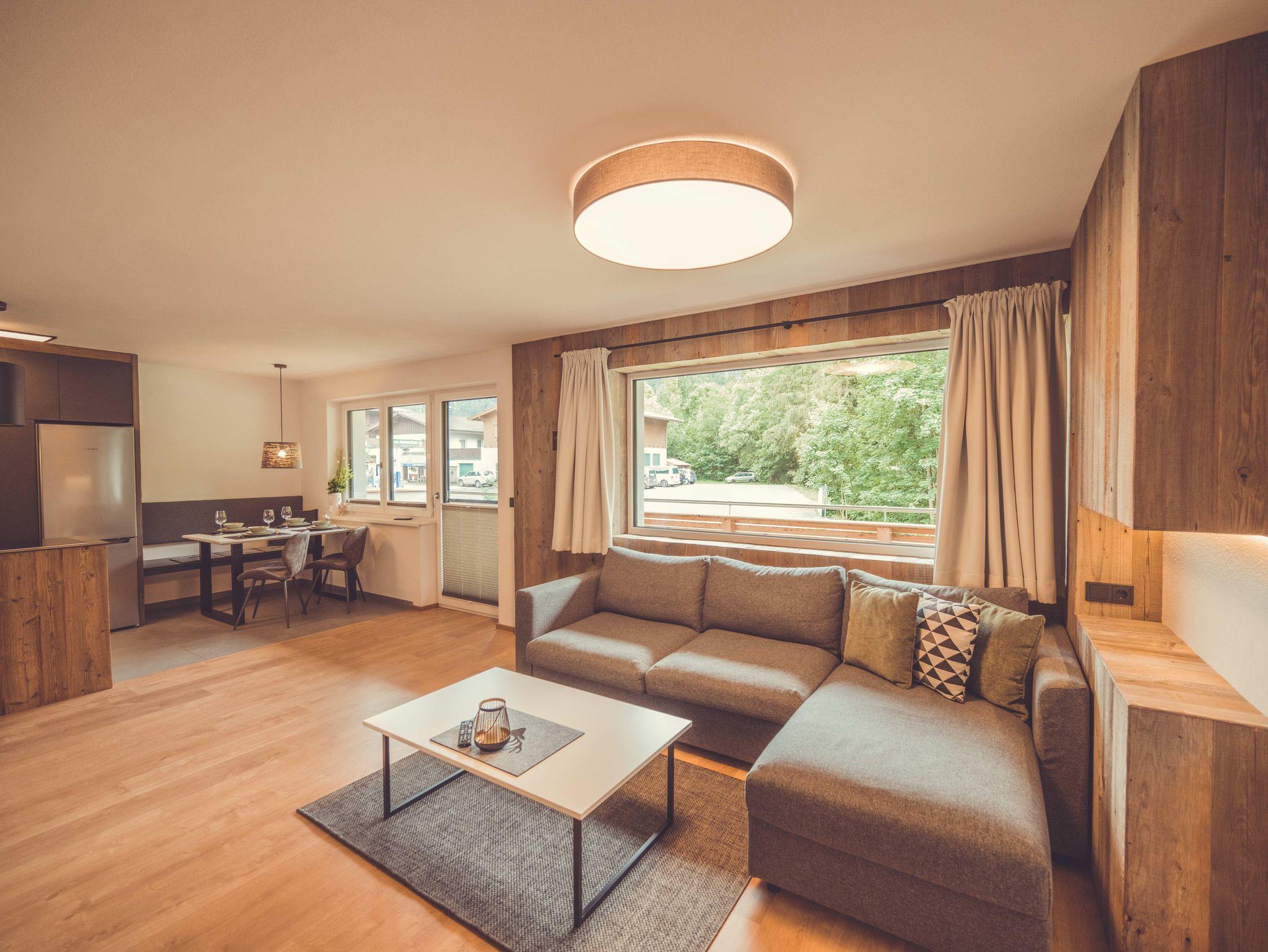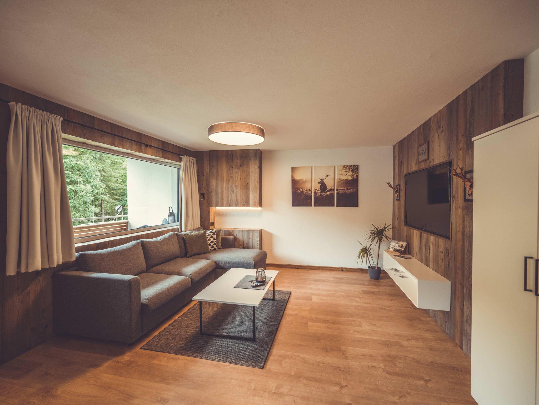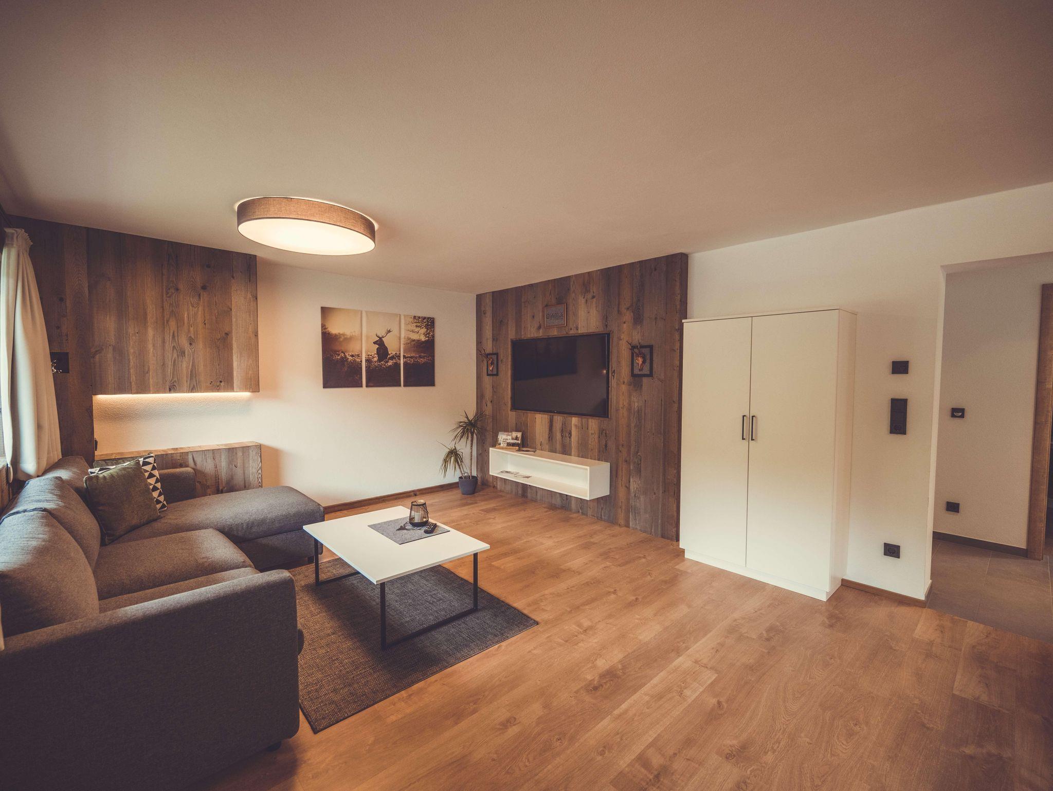 Unser Apartment bietet Gemütlichkeit auf 60 m². Aufgeteilt in ein Schlafzimmer, ein geräumiges Bad mit Regendusche und WC, Balkon, sowie einen offenen Wohn- und Essbereich mit einem Schlafsofa (1,40 x 2,00 m). Beide Räume verfügen über einen TV. Der private Garten lädt mit Grillplatz, Sonnenliegen, einer Schaukel zum Spielen und zum Verweilen ein. Für praktischen Komfort sorgt ein absperrbares Kellerabteil mit Skischuhtrockner sowie ein kostenfreies Carport.