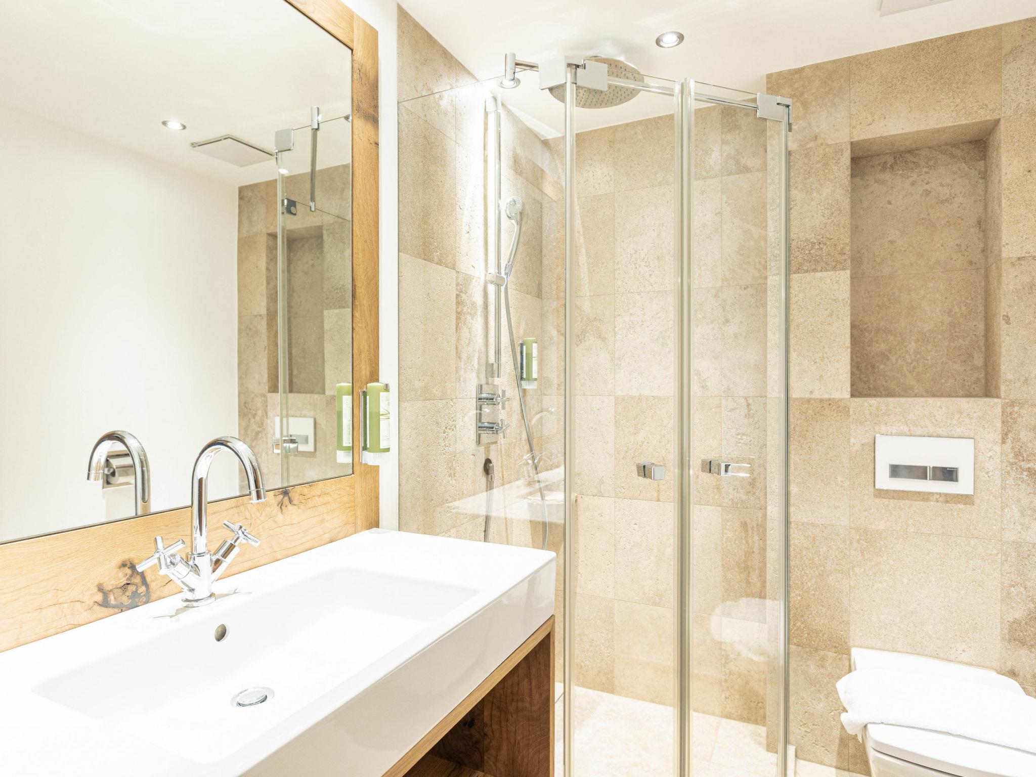Reith bei Kitzbühel: Modern resort "Dorfresort Kitzbühel by AlpsResorts", 2 storeys. In the centre of Reith 6 km from the centre of Kitzbühel, 4 km from the lake, 5 km from the skiing area. For shared use: nat. Swimm. Pond. In the complex: sauna, steam room, hot tub, infrared sauna, relaxation room, spa area, storage room for bicycles, storage room for skis, central heating system. Parking at the house. Supermarket 500 m, restaurant 5 m, railway station "Kitzbühel Schwarzsee" 4 km. Skisport facilities 5 km, children's ski school 5 km. Well-known ski regions can easily be reached: KitzSki Hahnenkammbahn 6 km, Übungslift Reith 150 m. Well-known lakes can easily be reached: Schwarzsee 4 km. Please note: ski bus (free of charge). The holiday properties may differ in situation, size and location. Directly connected to the resort: Restaurant Reitherwirt!