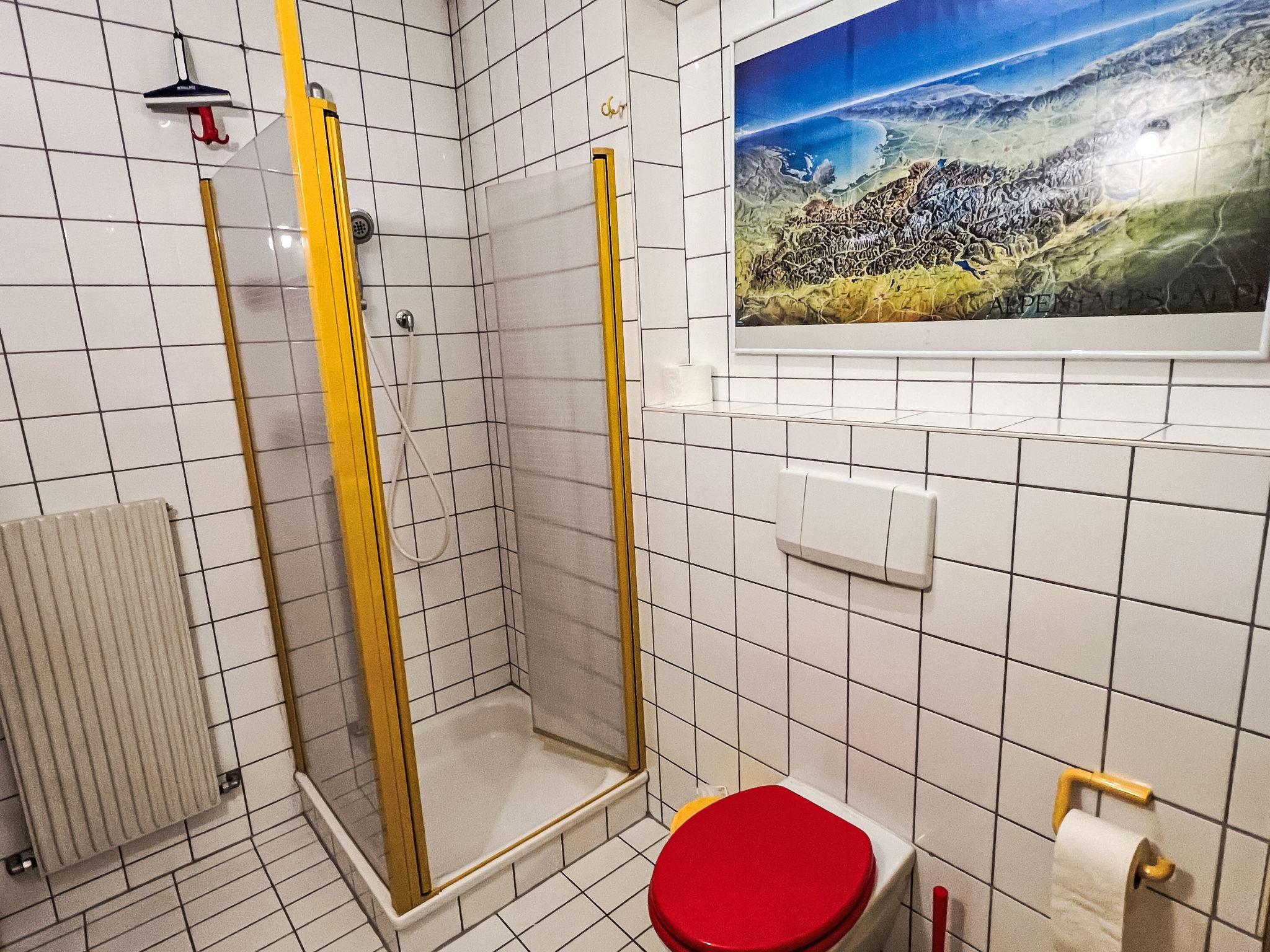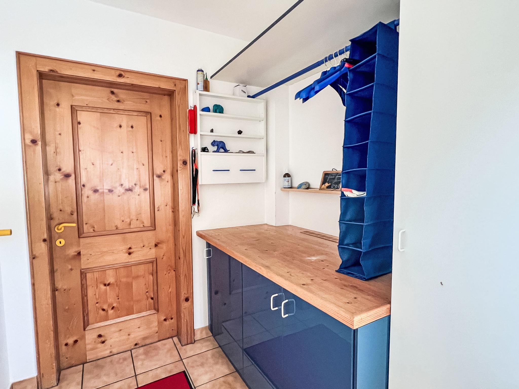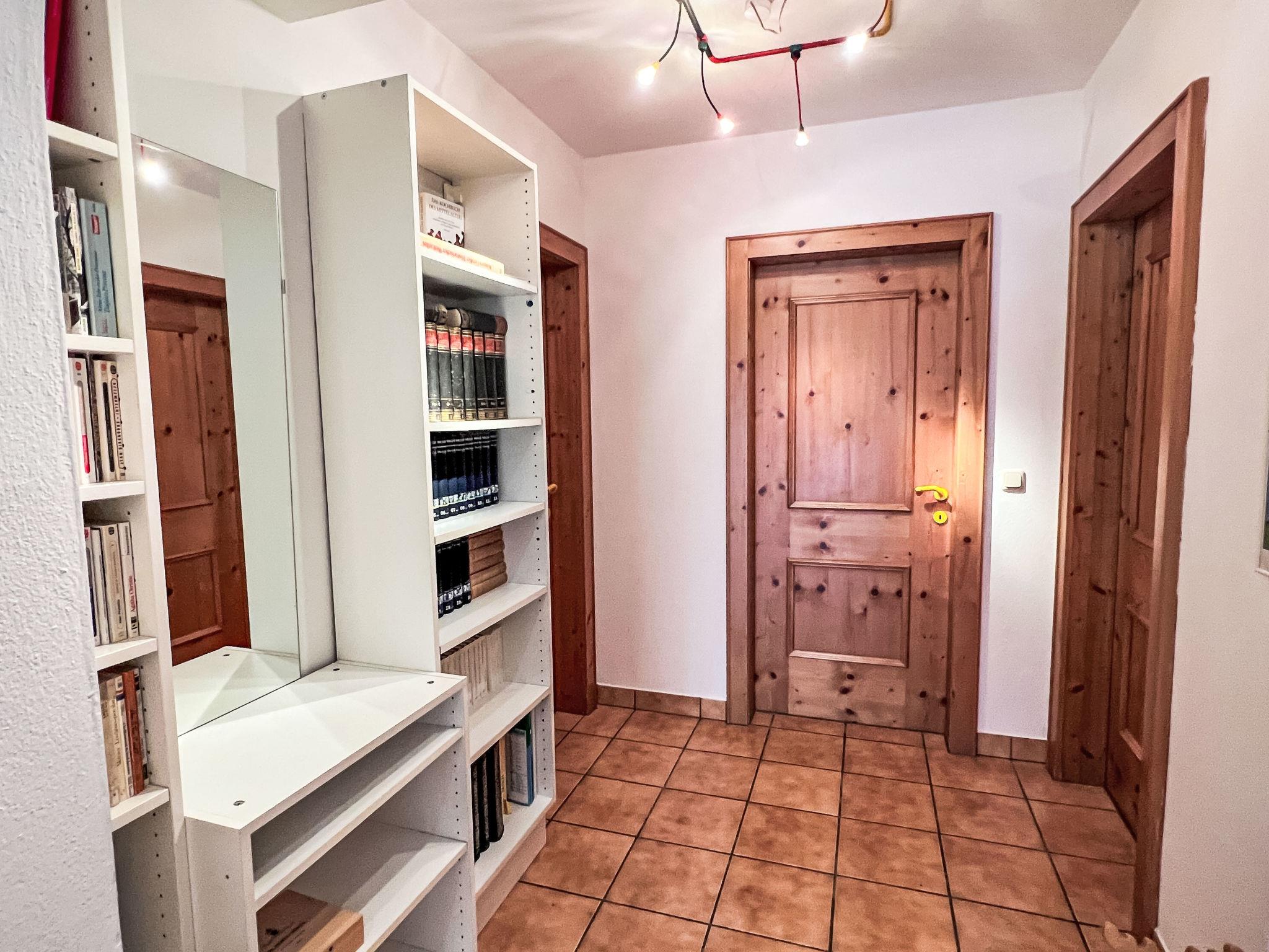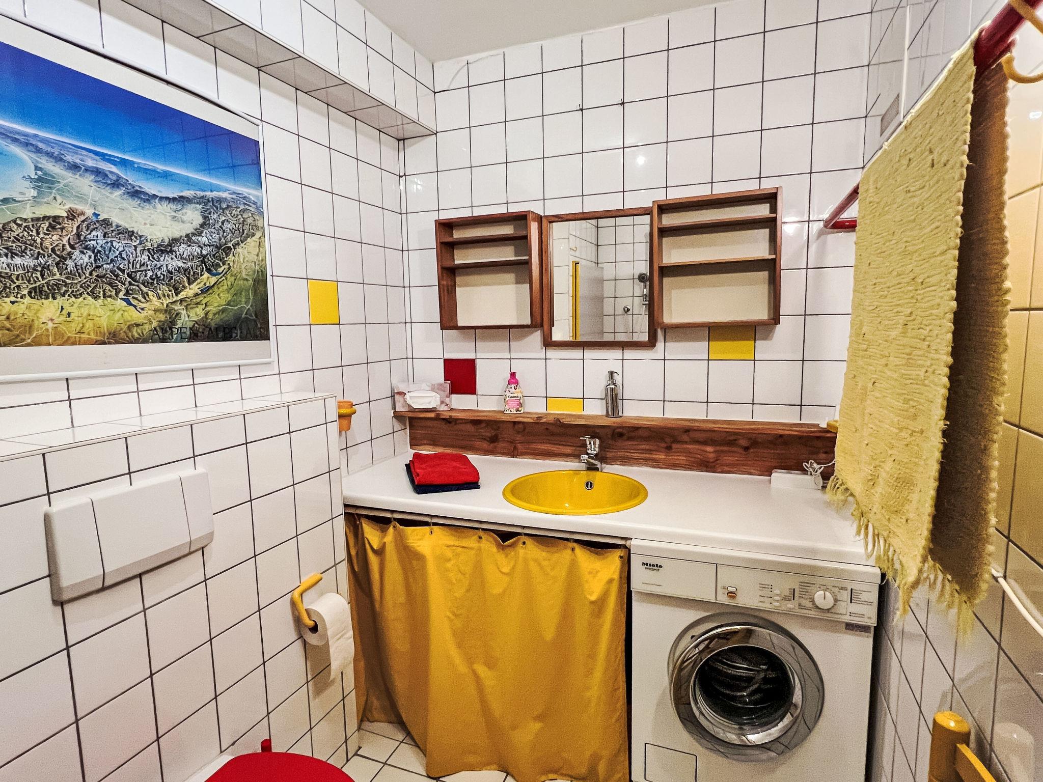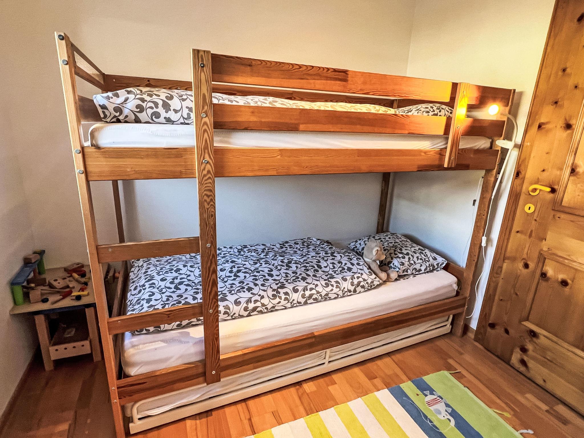 "Blauer Elefant", 4-room apartment 108 m2, on the ground floor. Tasteful furnishings: living room with Scandinavian wood stove and TV. 1 double bedroom with shower/WC and TV. 1 room with 1 x 2 bunk beds (90 cm, length 200 cm). 1 room with 1 double bed (130 cm, length 200 cm). Open kitchen (oven, dishwasher, 4 ceramic glass hob hotplates, toaster, kettle, microwave, fondue Set (chinoise)). Bath/WC. Oil heating. Wooden floors. Terrace 50 m2. Terrace furniture, electric barbecue. Very beautiful panoramic view of the mountains. Facilities: washing machine. Internet (WiFi, free). Please note: non-smokers only. Smoke alarm, fire extinguisher.