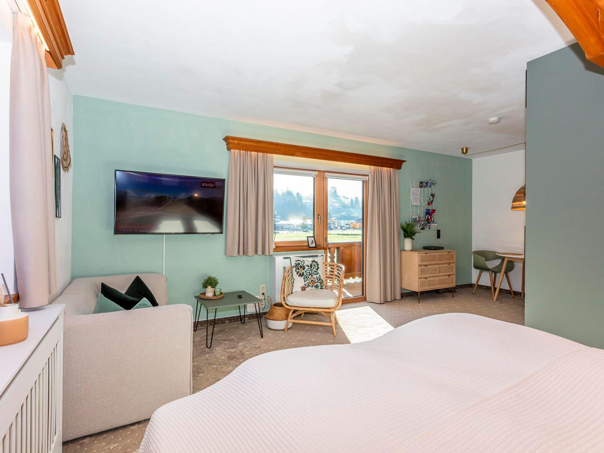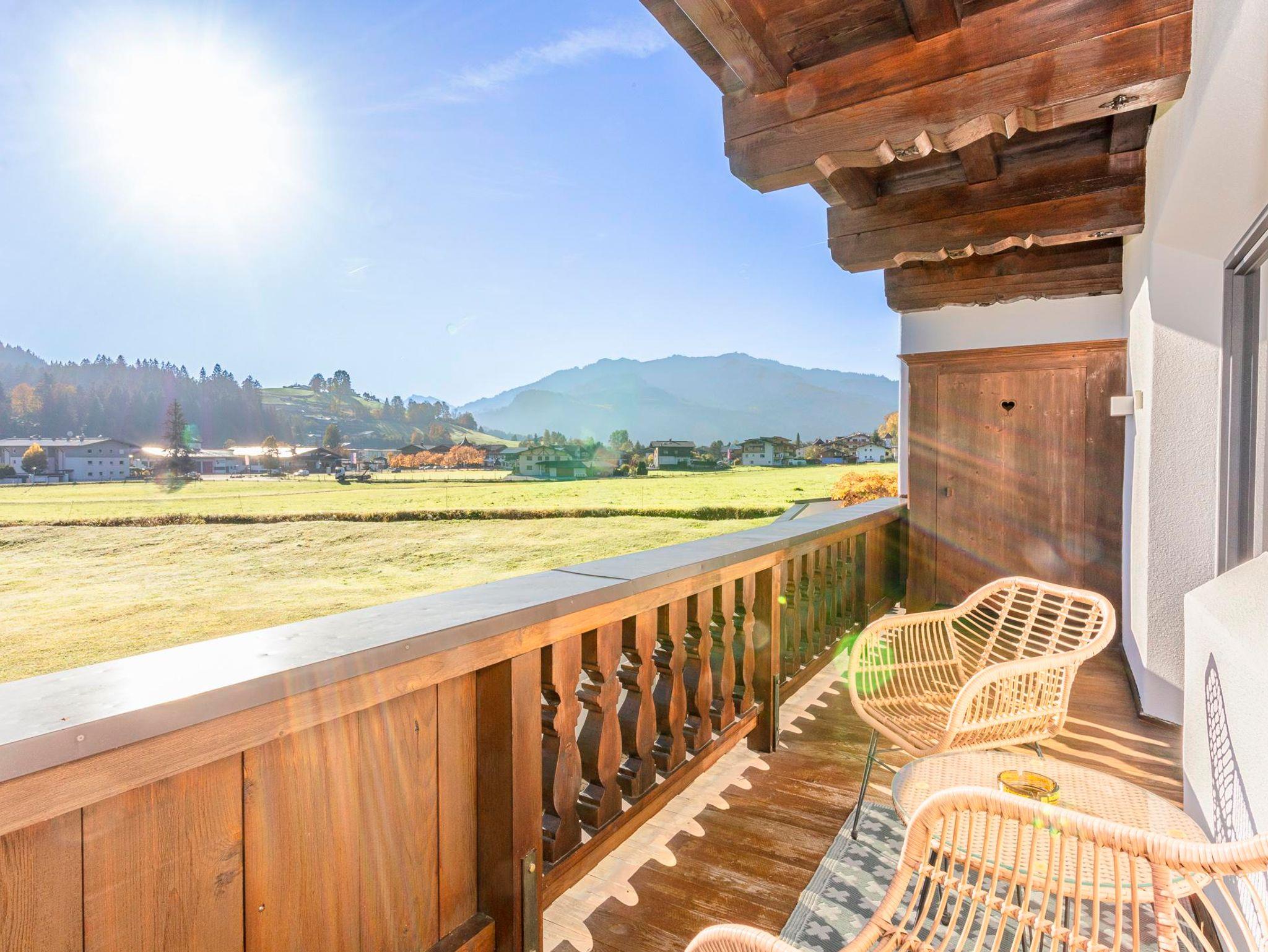 Willkommen in der modernen Ferienwohnung Kaiser 2! Hier erwarten dich auf 40 m² ein stilvolles und komfortables Ambiente. Angefangen von bequemen Betten und einer ausziehbaren Couch bis hin zu einer Kochnische mit Essecke findest du hier alles, was du für Ihren erholsamen Urlaub in den Kitzbüheler Alpen brauchst. Genieße die frische Luft und den herrlichen Ausblick vom Balkon aus. In der Ferienwohnung Kaiser 2 erwartet dich ein Aufenthalt voller Komfort und Gemütlichkeit.