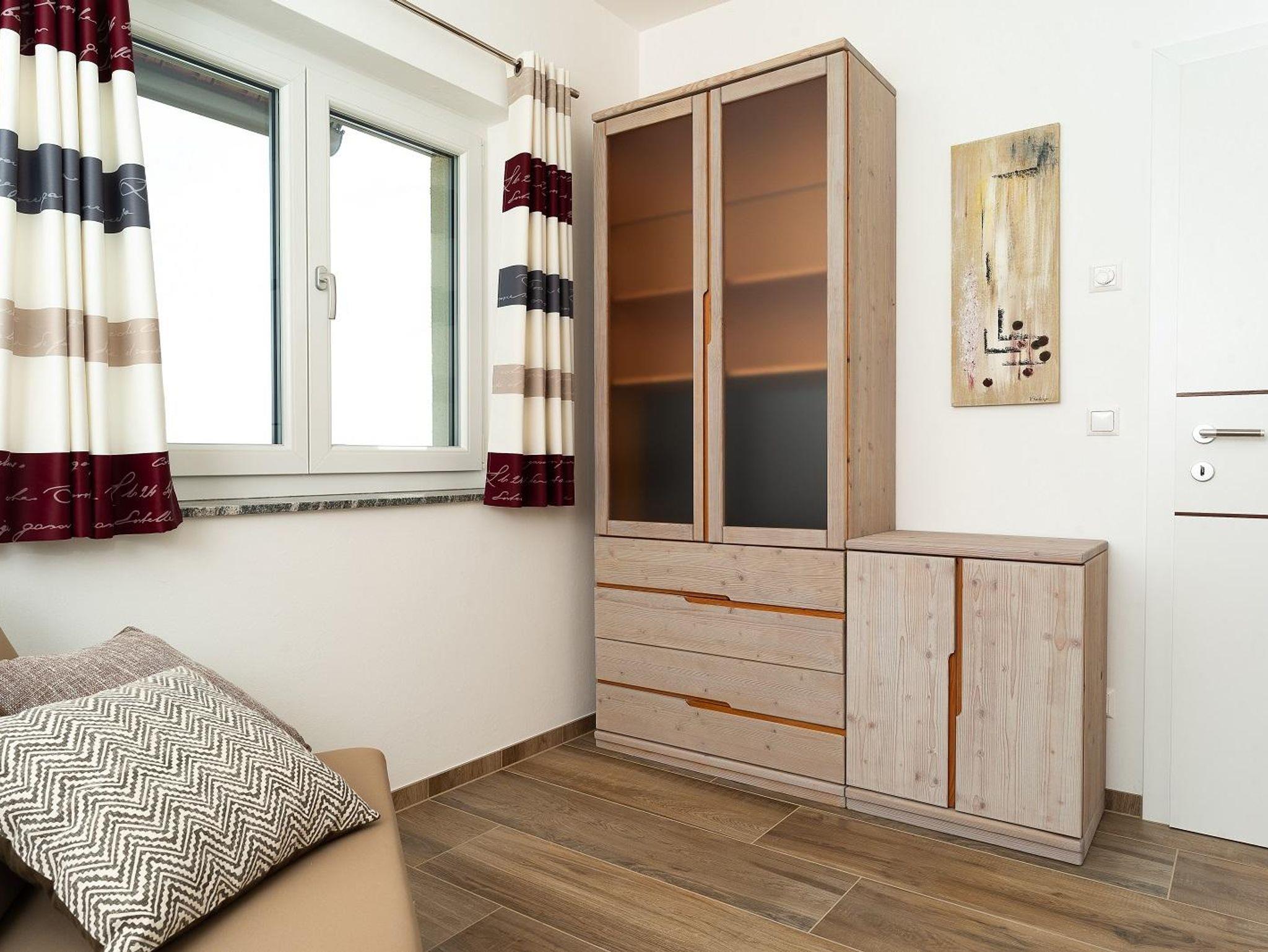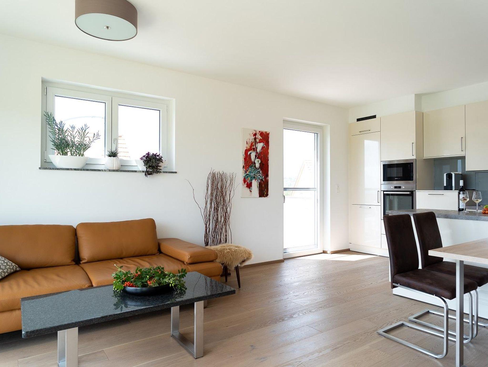 Großzügige Ferienwohnung, ebenerdig, 75 m², auch für Rollstuhl geeignet, 2 Schlafräume, Wohnküche, Terrasse, Carport, Sauna, Vorraum, Dusche und WC getrennt.