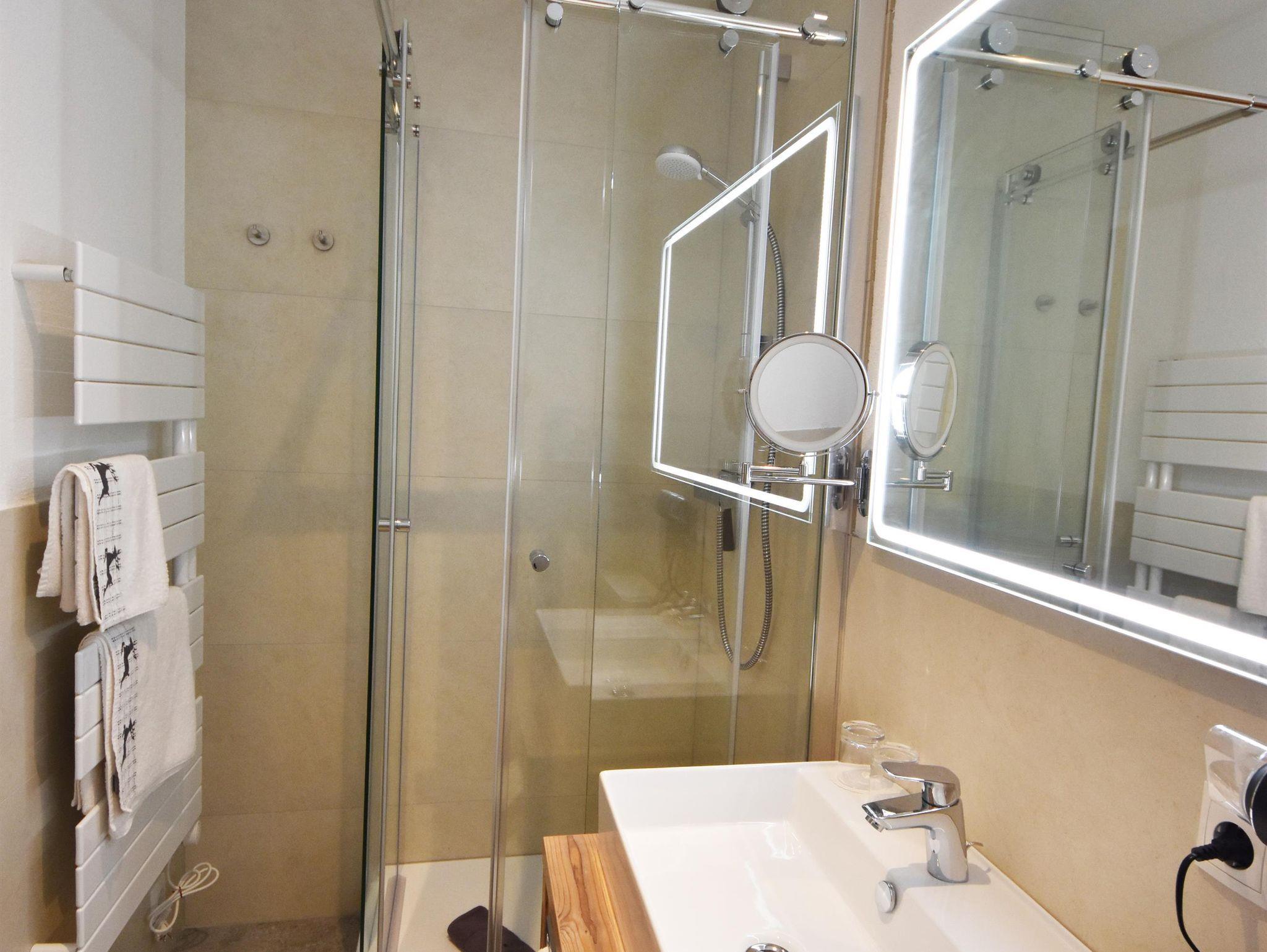 Das Appartement Körbersee plus bietet mit seinem modernen Design auf 63 m² großzügige Raumaufteilung für 2-4 Personen. Ganz dezent verschmelzen im Studiobereich Schlafzimmer und Living mit Küchenzeile und Sitzecke für bis 6 Personen zu einer Einheit. Zudem verleiht das Badezimmer mit Dusche/WC in seiner schlichten Eleganz dem Appartement noch einen ganz speziellen Charakter. Ein weiteres Schlafzimmer, ein 2. Badezimmer, ebenfalls mit DU/WC und eine 2. Küche mit Sitzbereich bieten große Flexibilität für dieGäste. Sehen Sie sich den Grundriss in der Fotogallery an.