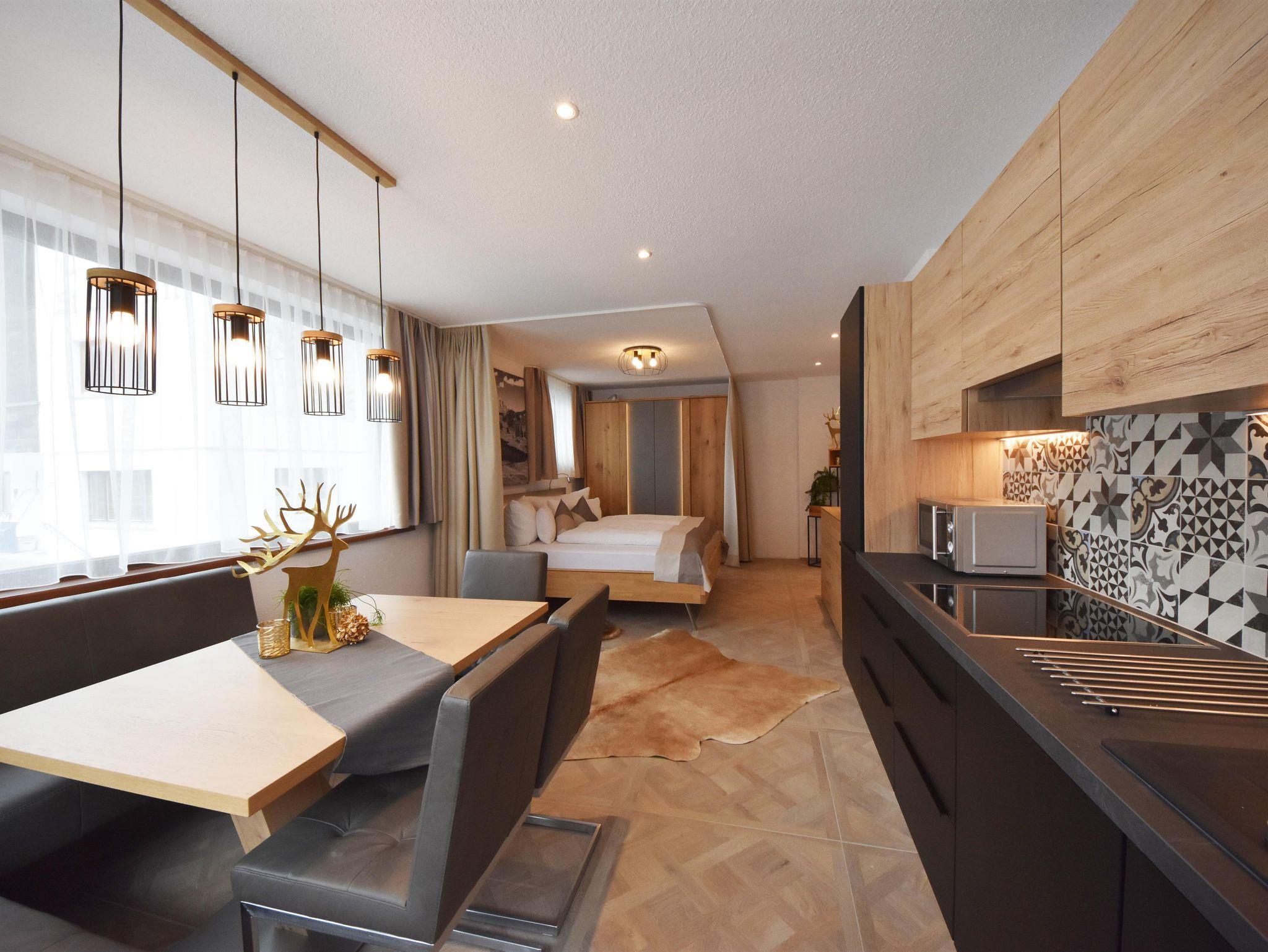 Drei exklusive, komplett neu gestaltete Appartements, unterschiedlicher Größe, bieten Ihnen in Klösterle am Arlberg, ab Dezember 2021, die perfekte Unterkunft für Ihren Urlaub. Die K-Appartements finden Sie direkt im Ortskern der wunderschönen Gemeinde Klösterle am Arlberg. Der Gratisskibus (gleich neben der Haustüre), brint Sie in nur 10 Minuten zum Skigebiet Arlberg und 5 Minuten ins Skigebiet Sonnenkopf. Ein gut ausgestatteter Skikeller und Fahrradabstellraum mit E-Bike-Ladestation offerieren genügend Platz für Ihre Ausrüstung. Die massive Wildeiche der Möbel in den Zimmern, verleiht den Appartements einen natürlichen Charakter und ureigenen Charme. Mit den passenden Accessoires erleben Sie ein angehmes Raumklima. Auch die Wohnküchen punkten mit ihrer stilvollen Einrichtung. Geldautomat, Bäckerei und Lebensmittelmarkt sind nur ca. 300 m entfernt.