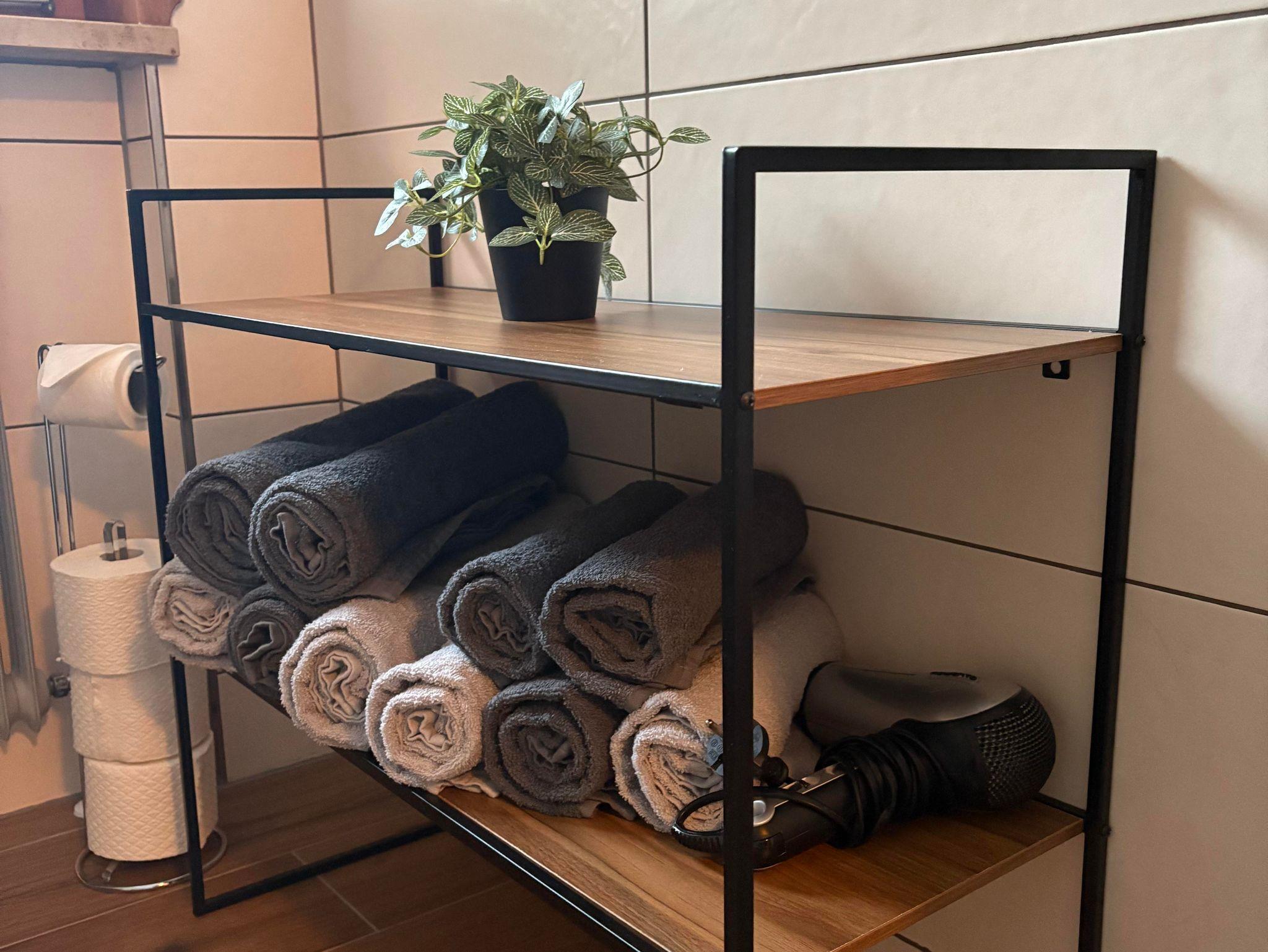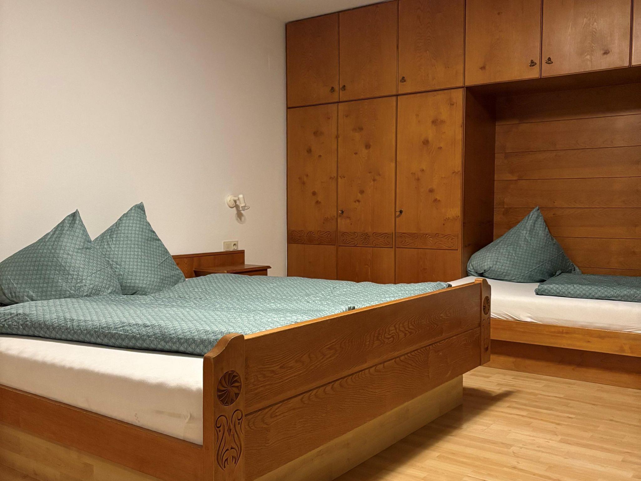 Das Apartment befindet sich im 2. Stock und hat ein Dreibettzimmer (Doppelbett plus Zusatzbett) und eine großzügige Küche mit Sitzecke und Sofa (ausziehbar für 2 Personen), plus Dusche/WC.