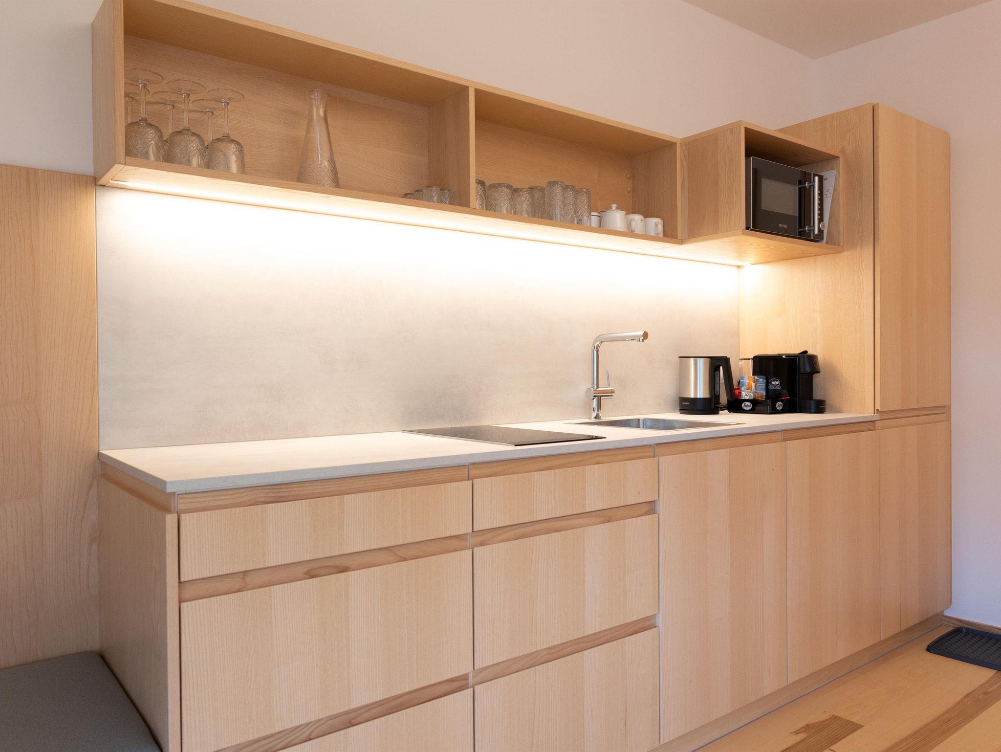 Die Ausstattung der Apartments lässt keine Wünsche offen. In den großzügigen Küchen kannst du dich bequem selbst versorgen, und im Vorraum findest du hausgemachte Gerichte in Kühlschränken, die du in deinem Apartment erwärmen kannst. Außerdem findest du im Kühlschrank in den Appartements einige Erfrischungen, die bereits für dich vorbereitet wurden!