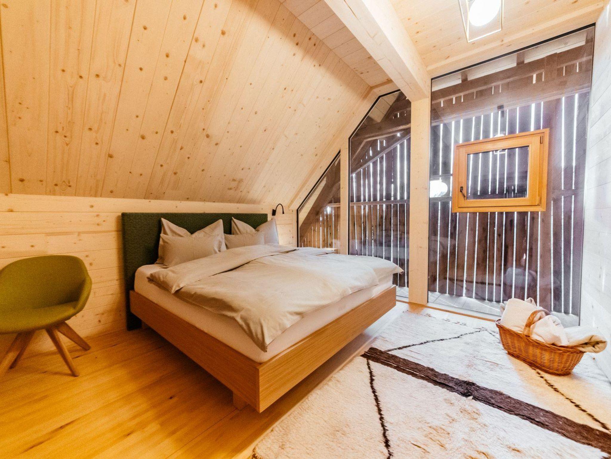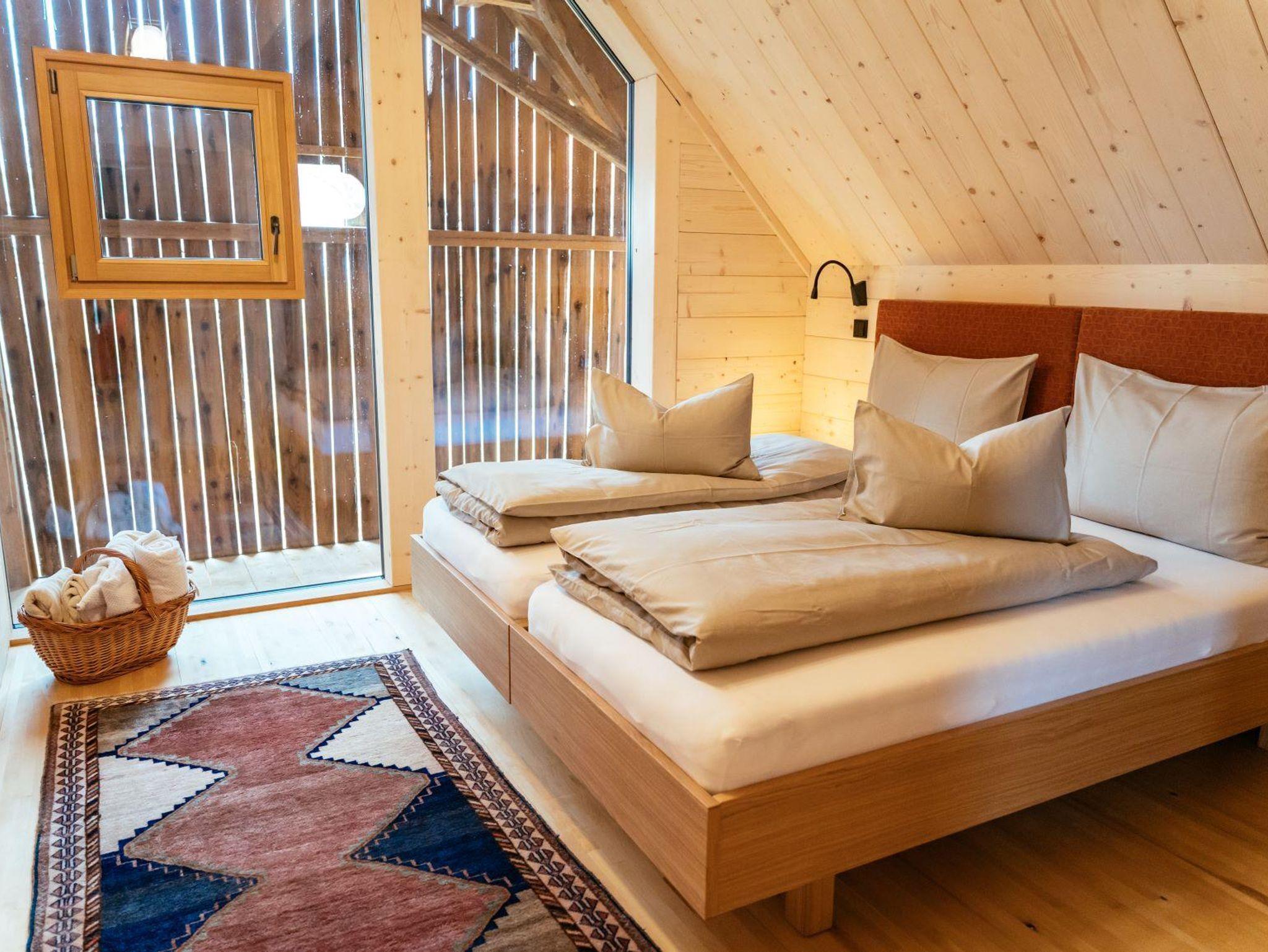 Neu renovierter Stadel mit 2 Doppelbettzimmer mit Benützung des großzügigen Badezimmers mit Dusche und Badewanne und einem Famileinzimmer mit einem Doppelbett und einer Ausziehcouch für weitere 2 Personen mit eigenem Badezimmer und kleinem Balkon.