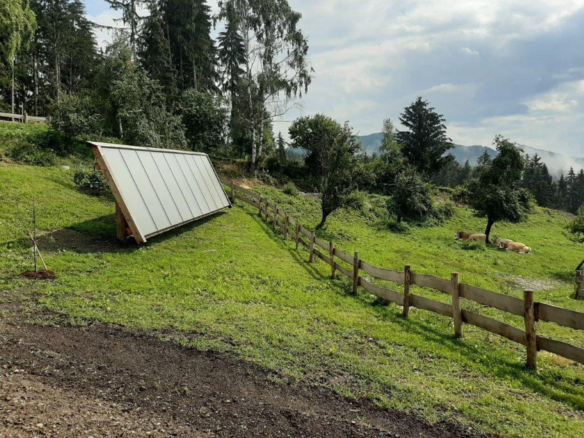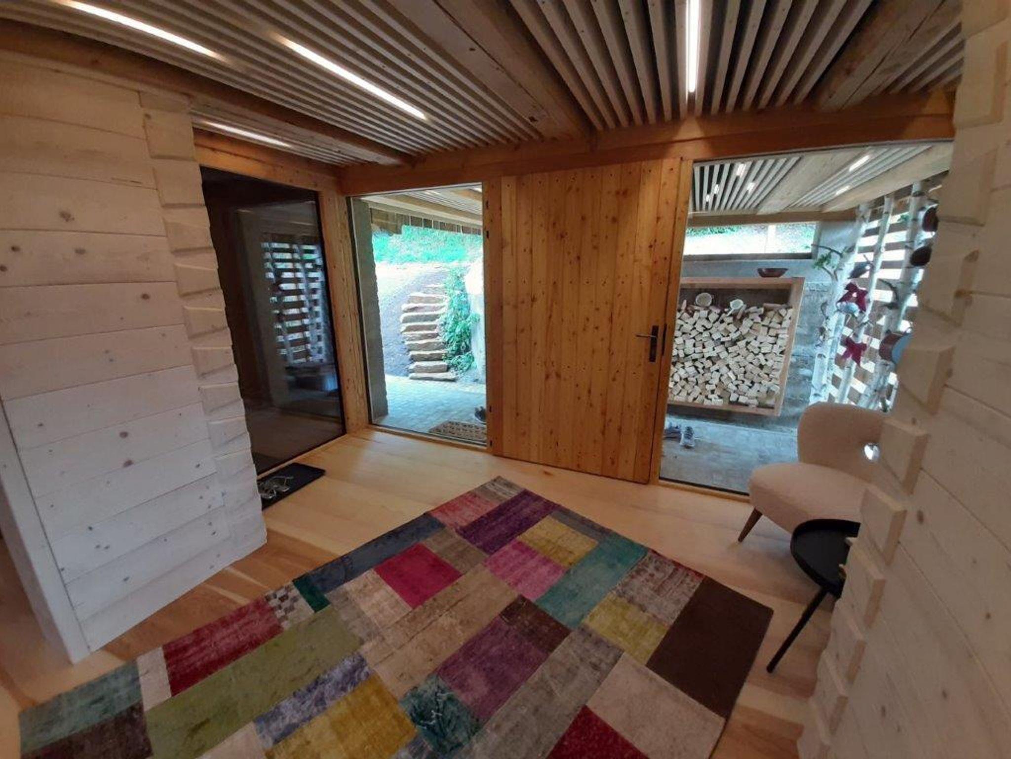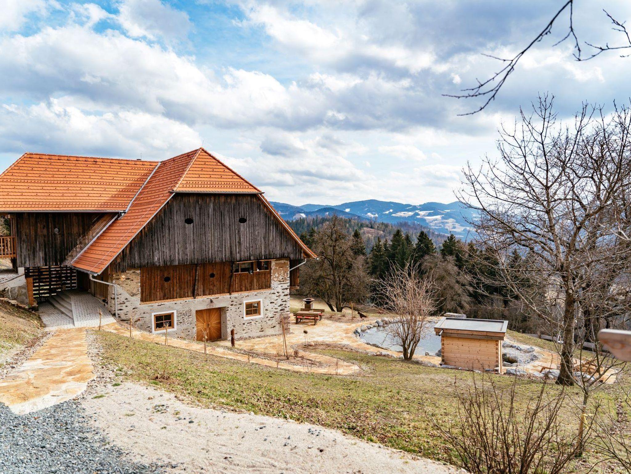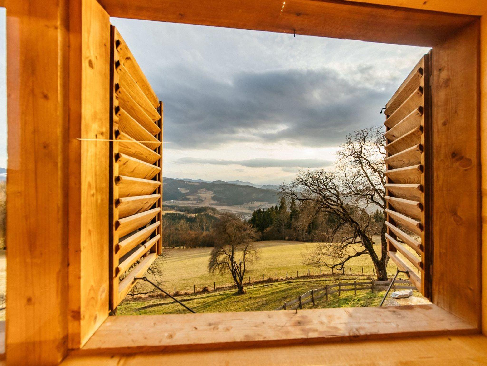 Chalet in Alleinlage mit Naturpool und Außensauna, Weitblick bis zu den Karawanken. Entspannung pur für Körper und Geist.