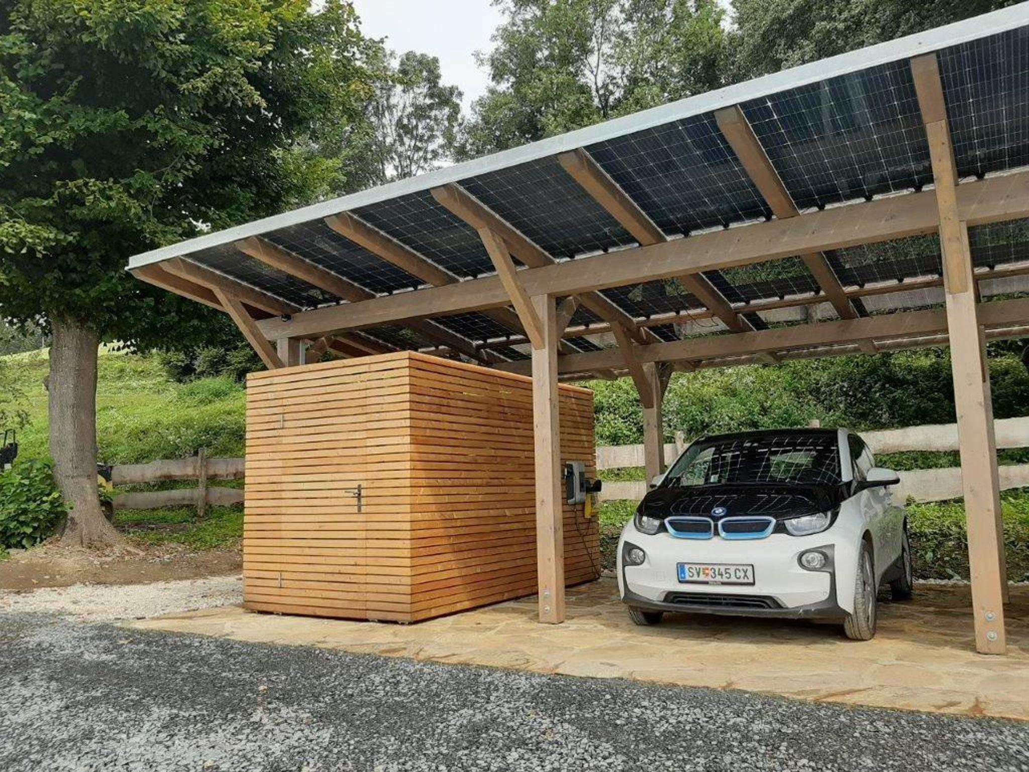 Ihr Auto können Sie in unserem Carport mit der Kraft der Sonne wieder auftanken.