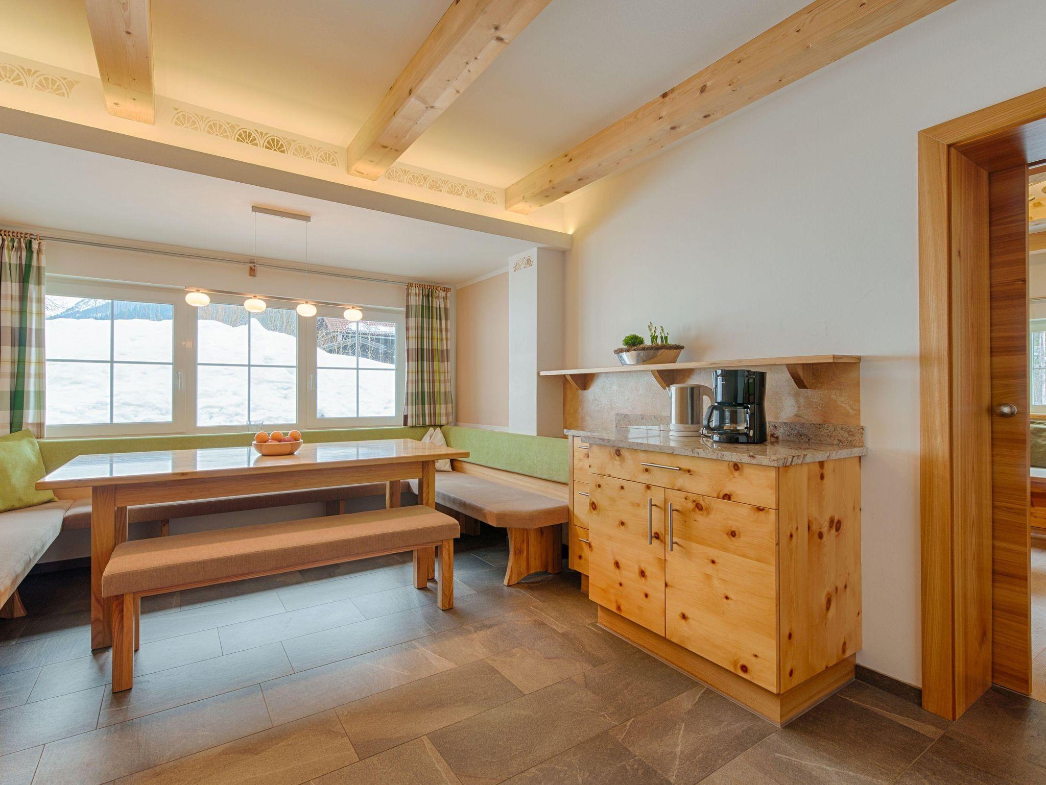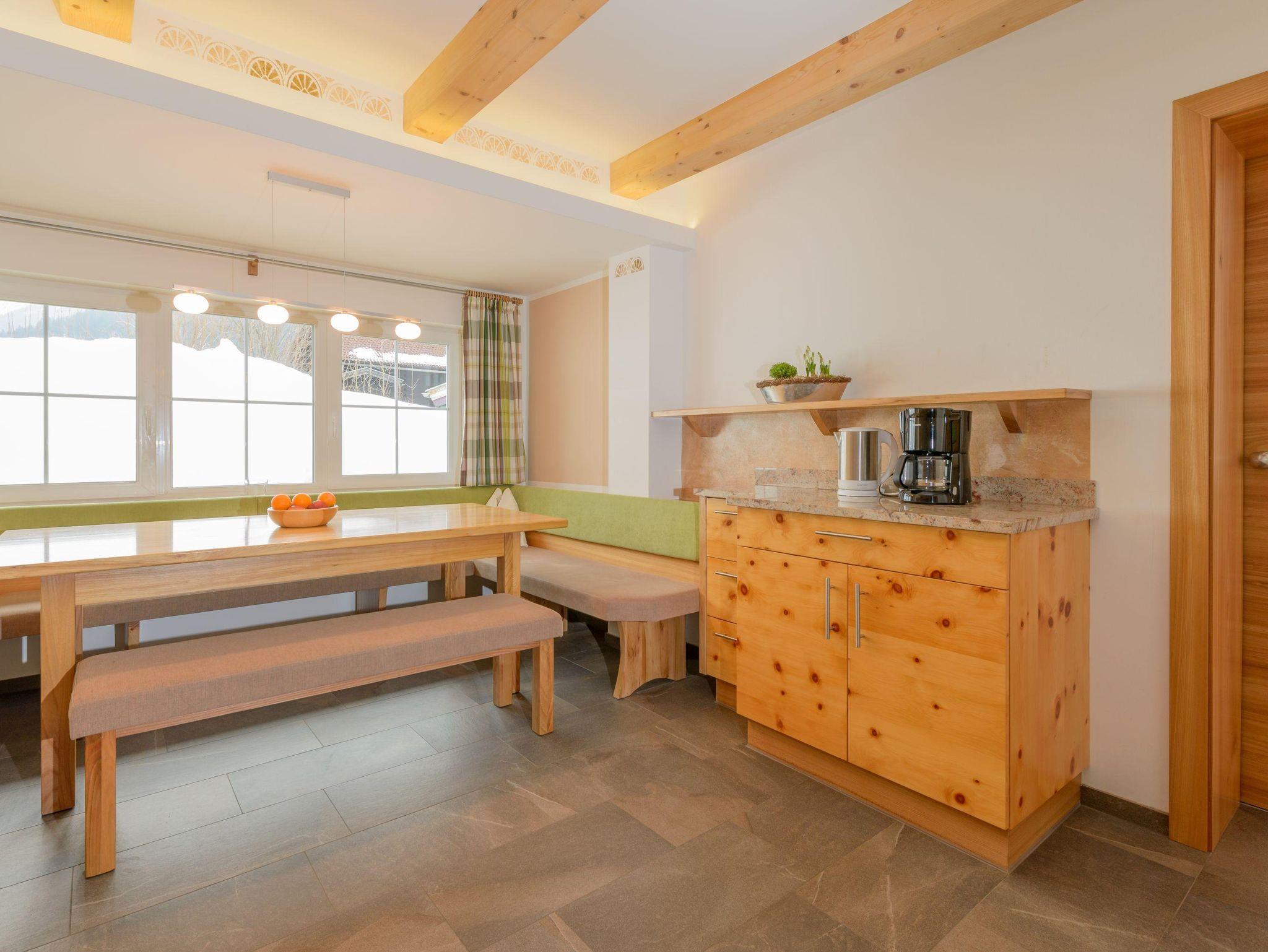 das spezielle Ferienhaus für Urlaubsgenießer, möbliert mit naturbelassenem Zirbenholz gemütliches Wohnzimmer mit riesiger Couch, Flatscreen und Kabel-TV Zirbensauna, Schi- und Schuhraum, Waschmaschine großzügige Terrasse und großer Garten, Carport