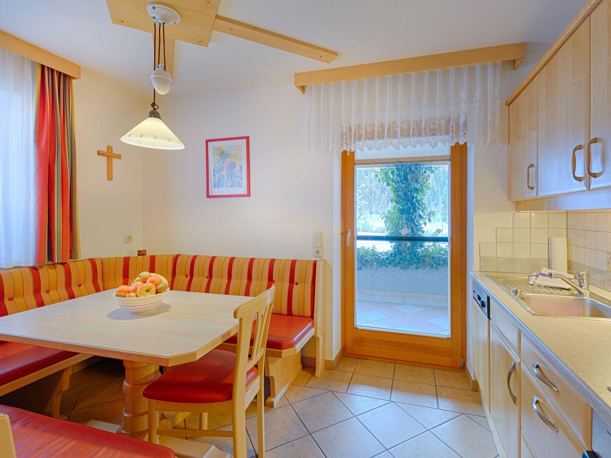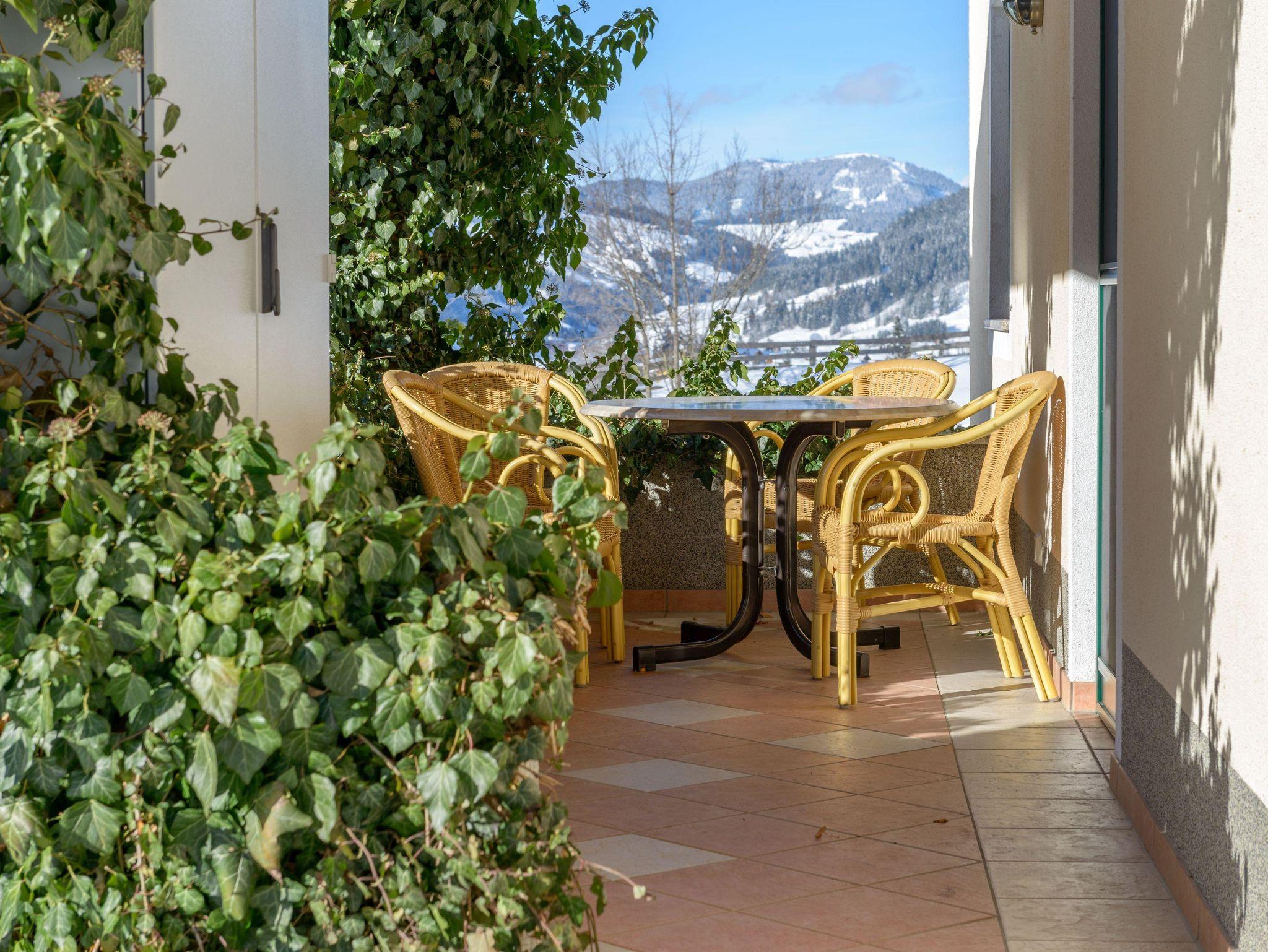 Apartment - Obstgarten 82m², zwei Doppelzimmer mit jeweils Dusche/WC, ein Kinderzimmer und große Wohnküche. Komplett ausgestattete Küchenzeile, Sitzecke, Couch, Kabel - TV und W-LAN. Eigene Loggia mit wunderbaren Ausblick in die Kleinarler Berge. Tipp: Auf www.schwabhof.info können sie eine virtuelle Tour durch unseren Hof und unsere Wohnungen machen!