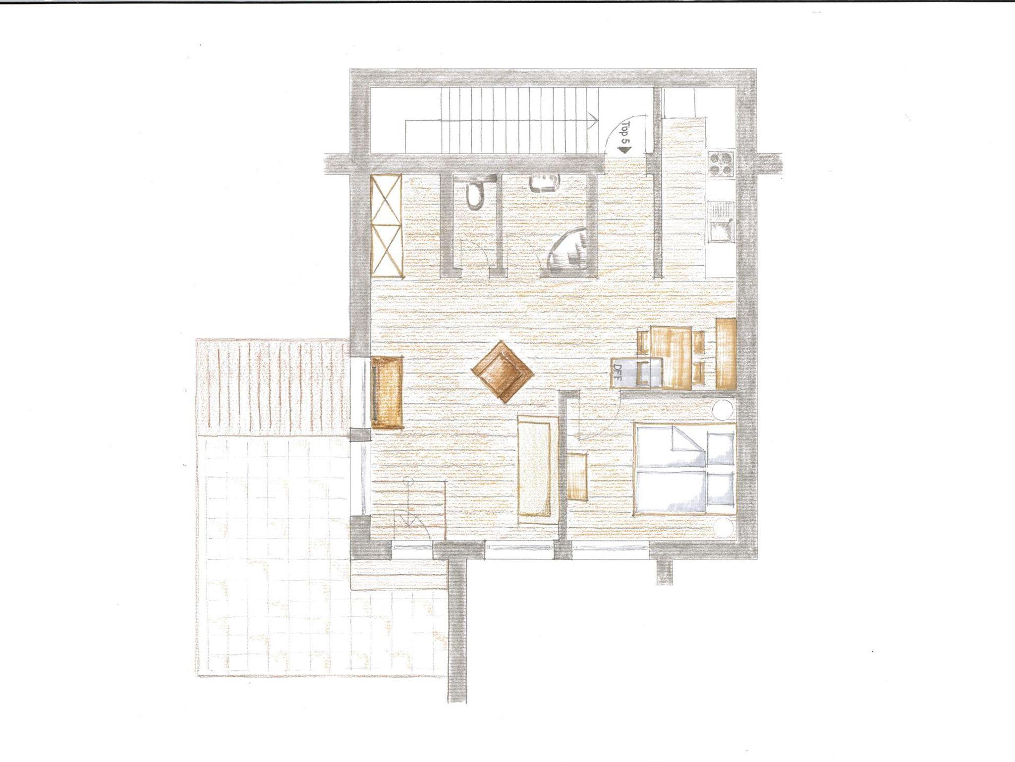 Das neue Penthouse verfügt über ein getrenntes Schlafzimmer, Wohnraum, Küchenzeile, Badezimmer, getrenntes WC und eine toll Dachterrasse mit Blick über das gesamte Tal.