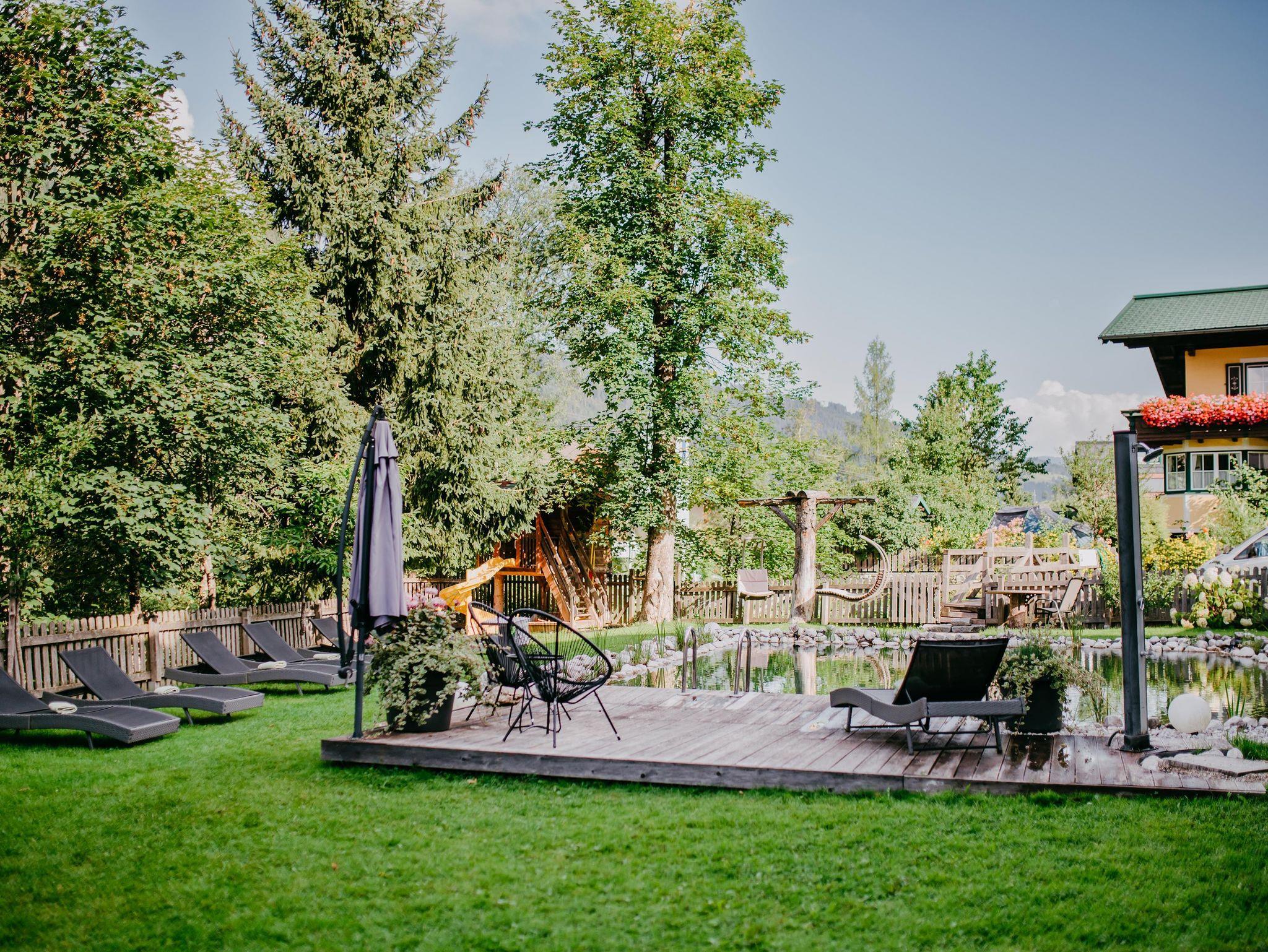 Top-Urlaubskomfort, familiäre Atmosphäre und jede Menge Herzlichkeit - das werden Sie in unserem Haus spüren! Unser Appartementhaus befindet sich direkt im Ortszentrum, an den Einstiegsstellen von Wanderwegen, der Loipe und an der Skiroute. Im Winter genießen Sie die zentrale Lage, unser Indoor-Kinderangebot und die Entspannung im Wellnessbereich mit Panoramsauna. Im Sommer lädt Sie nach Wandertouren und Ausflügen der große, ruhige Garten mit Naturbadeteich und Kinderbereich zum Erholen ein. In der modernen Outdoor-Küche grillen und chillen unsere Gäste nach Lust und Laune. Eine große Auswahl an (E-) Mountainbikes steht den Gästen zur Verfügung. Ihr E-Auto laden Sie bequem direkt am Haus.
