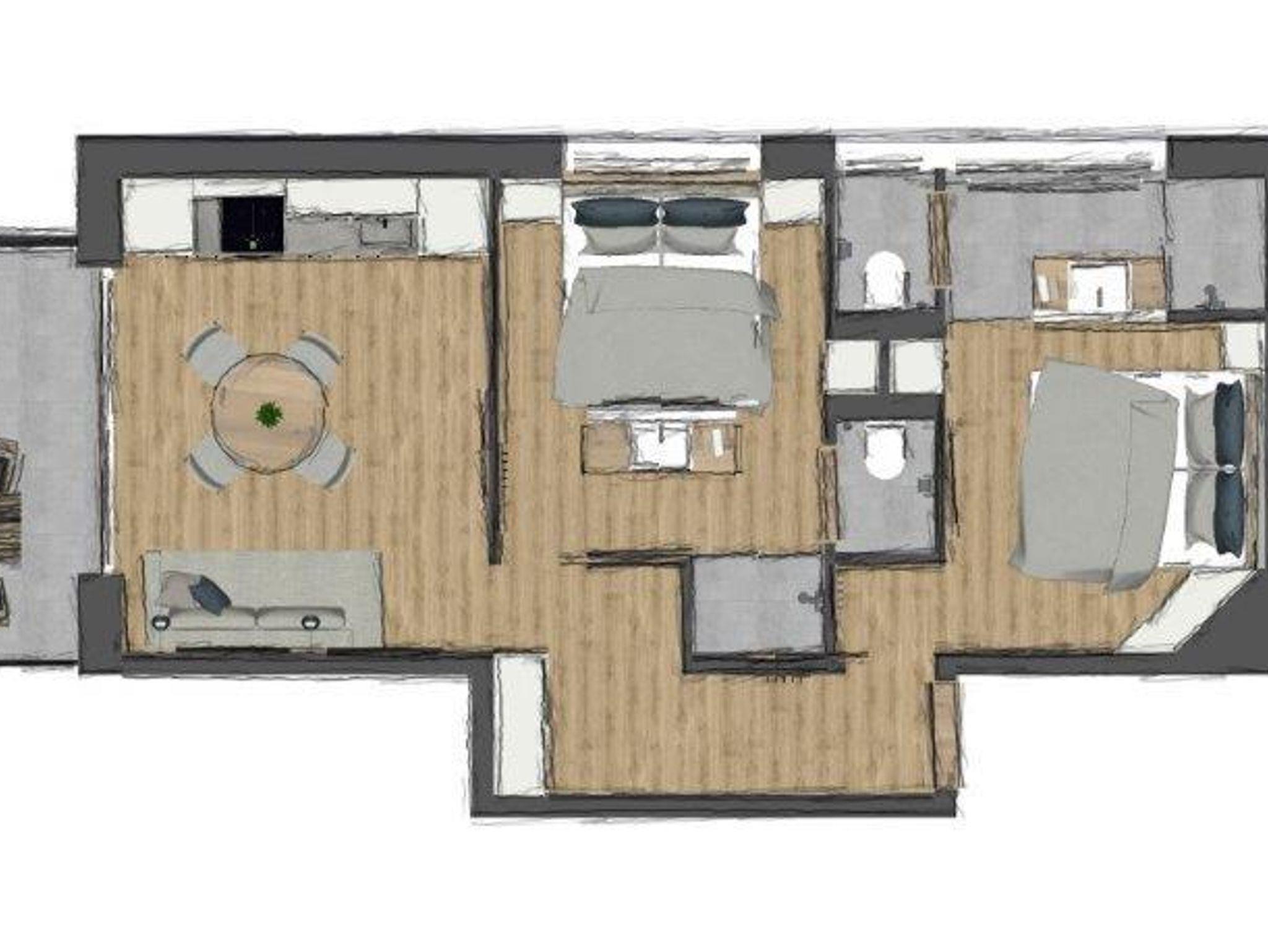 Das Apartment Fisch im ersten Stock bietet auf 48 m² Platz für bis zu 5 Personen. Es verfügt über zwei Schlafzimmer mit Doppelbett sowie einer ausziehbaren Couch für eine weitere Person. Jedes Schlafzimmer hat ein eigenes Badezimmer mit Dusche und WC – perfekt für Komfort und Privatsphäre. Die helle Wohnküche ist mit einem gemütlichen Esstisch sowie einem Balkon ausgestattet und verfügt über eine moderne Küche mit E-Herd, Geschirrspüler, Espressomaschine und Mikrowelle.