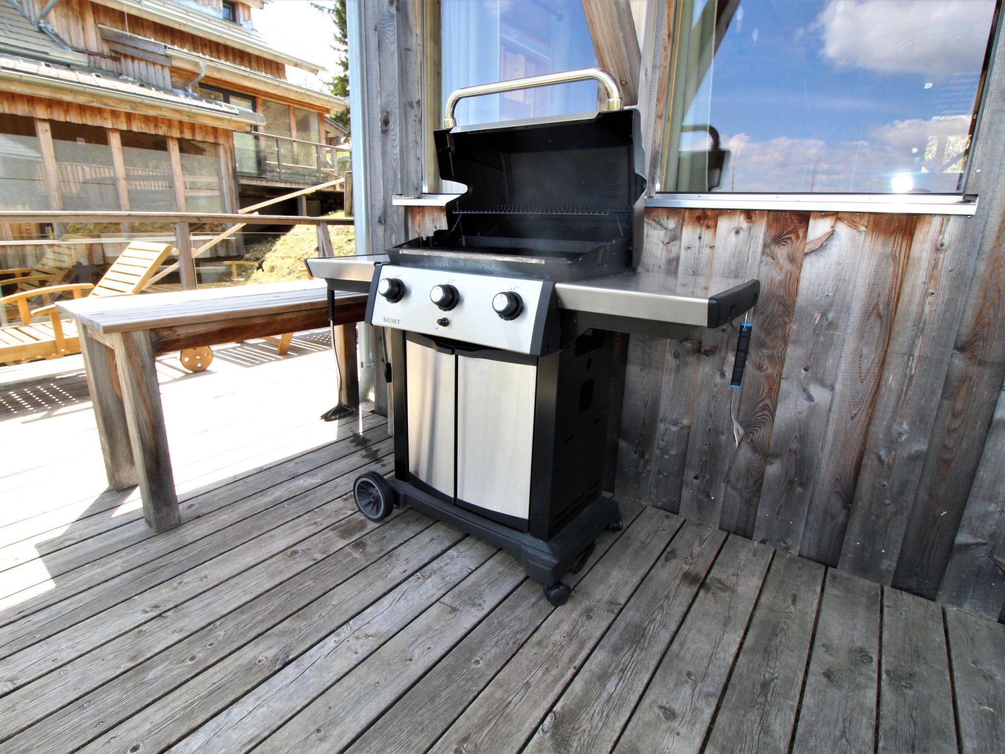 4-room chalet 130 m2. Spacious, partly with sloping ceilings, luxurious and tasteful furnishings: open kitchen (oven, dishwasher, 4 induction hot plates, kettle, freezer, electric coffee machine) with small bar. Bath/shower, sep. WC, hydro massage bath, Sauna. On the lower ground floor: open large living/dining room with panoramic window with dining table, satellite TV, digital TV and gas heater. Exit to the terrace. Upper floor: 1 double bedroom with shower/bidet/WC. Exit to the balcony. Top floor: 2 double bedrooms. Bath/bidet/WC, double hand-basin with corner bath. Electric heating, gas heating. Small balcony, large terrace. Terrace furniture, barbecue, deck chairs. Marvellous panoramic view of the valley and the countryside. Facilities: iron, hair dryer. Internet (WiFi, free). Please note: non-smoking house. Fire extinguisher. Separate outdoor gas grill. Due to the geographical location, internet access cannot be guaranteed.