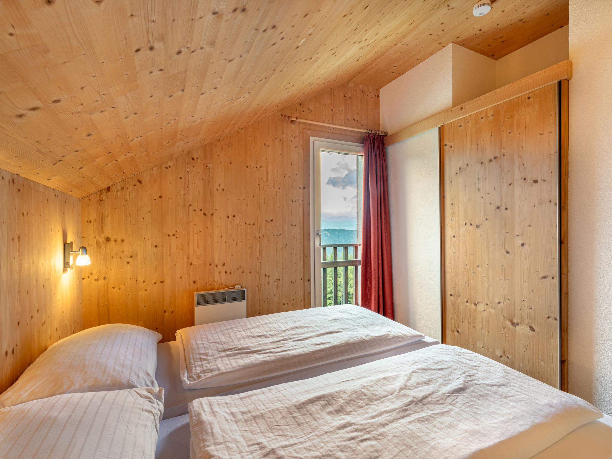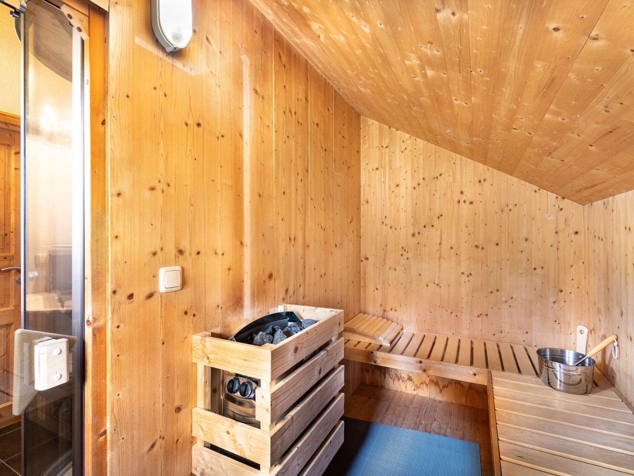 3-room chalet 73 m2. Object suitable for 6 adults. Spacious and bright, tasteful and wooden furniture furnishings: entrance hall with separate WC. Living/dining room with 2 folding beds, dining nook, cable TV, international TV channels and gas heater. Exit to the terrace. Large, open kitchen (oven, dishwasher, 4 ceramic glass hob hotplates, toaster, kettle, electric coffee machine). Upper floor: 2 double bedrooms with sloping ceilings, each room with electric heating. Bath/shower, Sauna. Wooden floors. Terrace furniture, balcony furniture, barbecue, deck chairs. Marvellous distant view of the mountains and the countryside. Facilities: washing machine, hair dryer. Internet (WiFi, free). Parking at the house. Please note: suitable for families. Non-smoking house. Fire extinguisher.