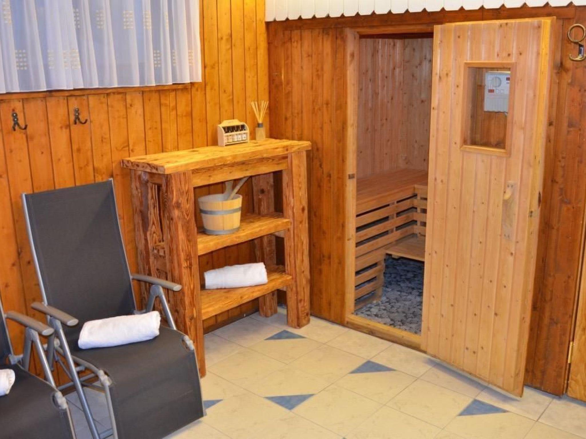 Lovingly furnished in a country style, you are offered a feel-good atmosphere. A winter garden with a cosy, spacious sitting area and the large living room with open fireplace form the centre of attention for all guests. The holiday flat on the upper floor also has an eat-in kitchen, a bedroom with a double bed, a bedroom with bunk beds and a single bed and a cosy room with a French bed (160 x 190 cm) as well as a bathroom and a WC. On the ground floor there is also a sauna, a bathroom and a WC. There is electric heating in all rooms and additional fireplaces in the living rooms.
