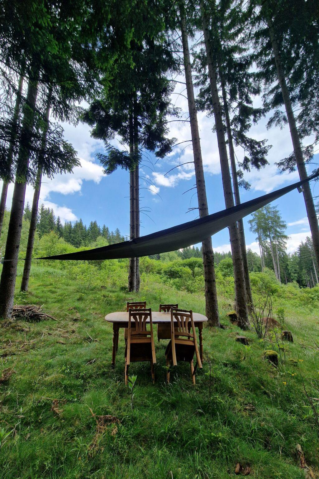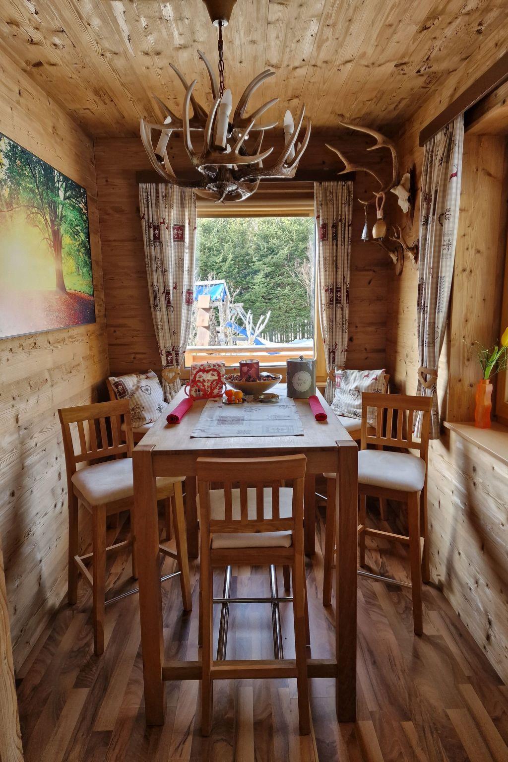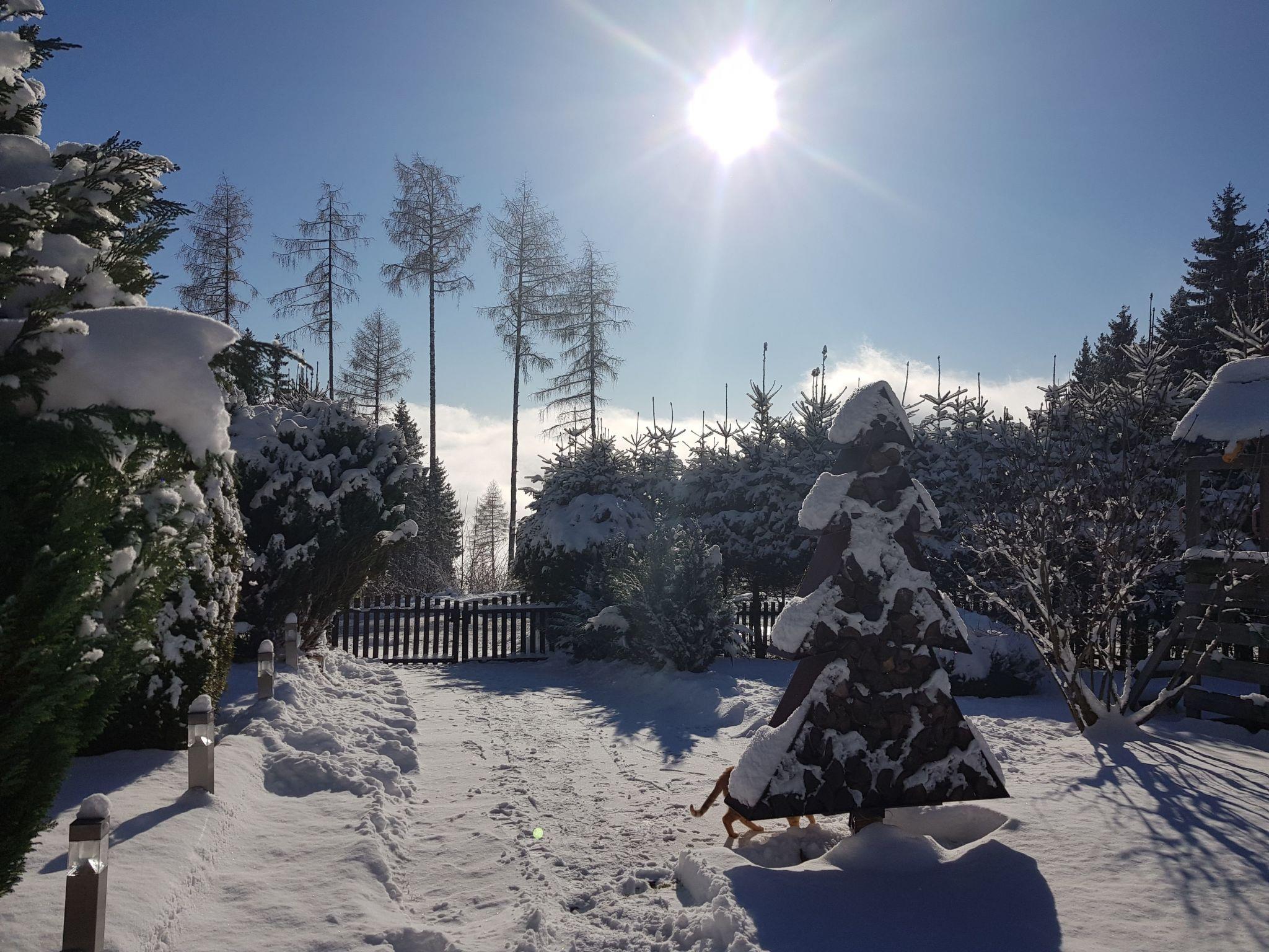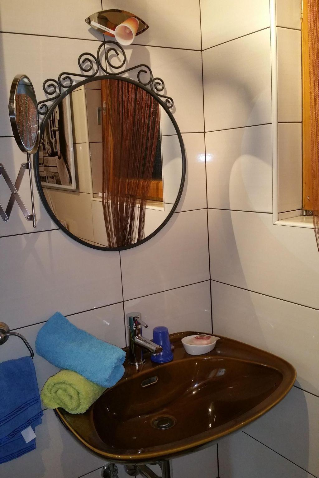 The house consists of a bedroom, a living room, a little entrance area, a pantry, a little dining corner and a fully-equipped kitchen, as well as a bathroom with a bath, washbasin and WC. The kitchen is equipped with a dishwasher, microwave, Nespresso machine, electric stove, filter coffee machine, fridge and freezer, crockery and tea towels. You can also cook with an additional hob. Sugar and salt are provided. The bedroom has a double bed and satellite TV, as well as bed linen. The bathroom consists of a bath, WC, washbasin, toilet paper, towels, bathrobes, bath towels. The hot water is heated with a bathroom boiler. Pellets heating is possible throughout. In the living room there is a Haas stove with a glass front for cosy hours, as well as a satellite TV, a leather sofa that can be pulled out for 1-2 people. The house was generally renovated in 2017. The flooring consists of laminate, with tile in the bathroom. The wood and pellets are provided by the owner.