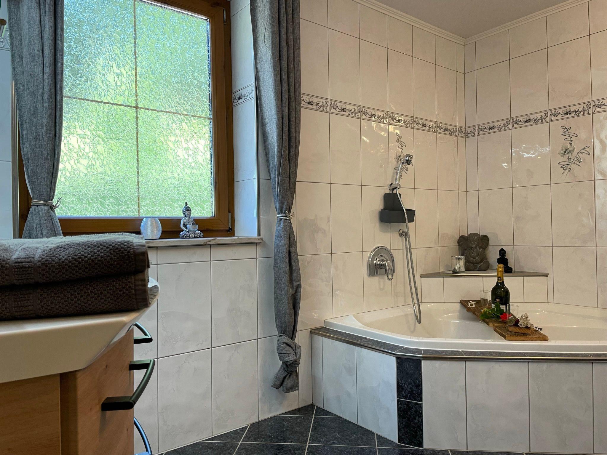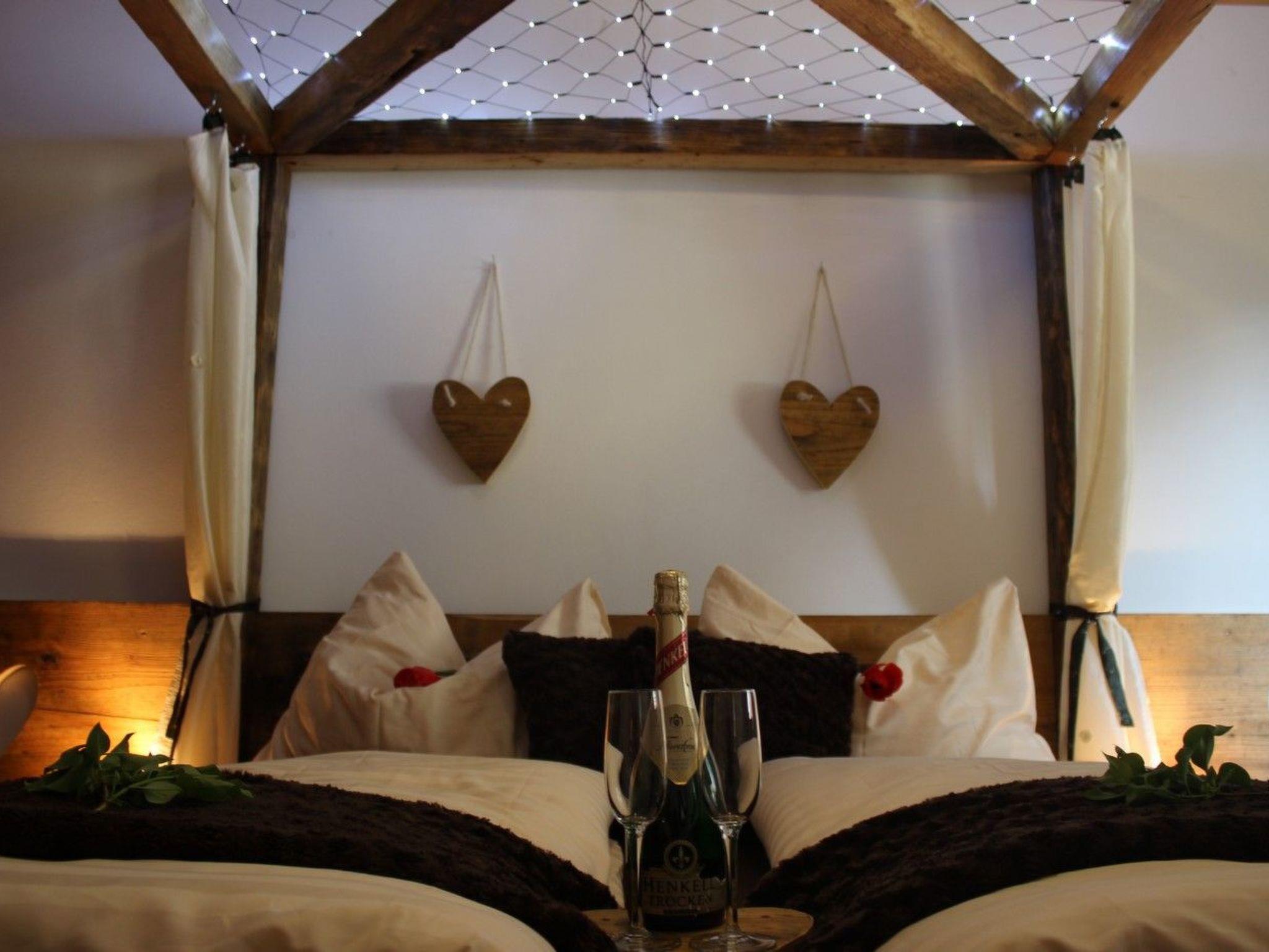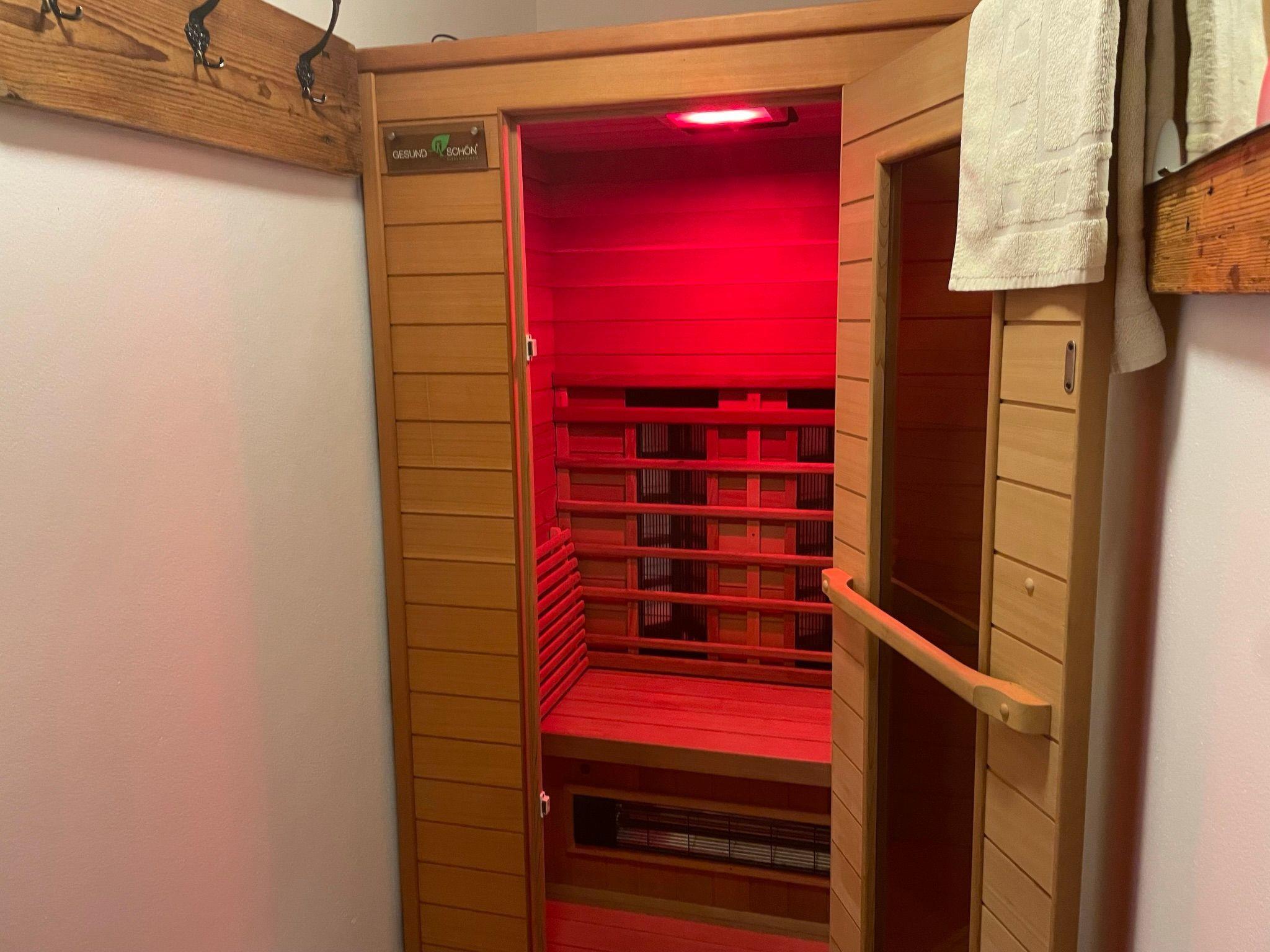 You can enjoy a relaxing bath in the hot tub under an open sky, a glass of wine by the biotope, a sociable get-together in the homely lounge. The house provides the ideal setting for an enjoyable holiday. It is not only the fabulous location, but also the comfortable interior that provides everything you need for a dream holiday. Breathe fragrant mountain air or relax in the infrared cabin. The house has a stylish and modern interior. Arolla pinewood and old wood elements give the exclusive residence a personal atmosphere. The house with 115m² of living space is suitable for up to six people. Dogs are also welcome. The house provides a fully-equipped kitchen with a fireplace, a cosy living room and three bedrooms with double beds (180 x 200cm), as well as a WC and a bathroom with a shower and an extra large bath.
