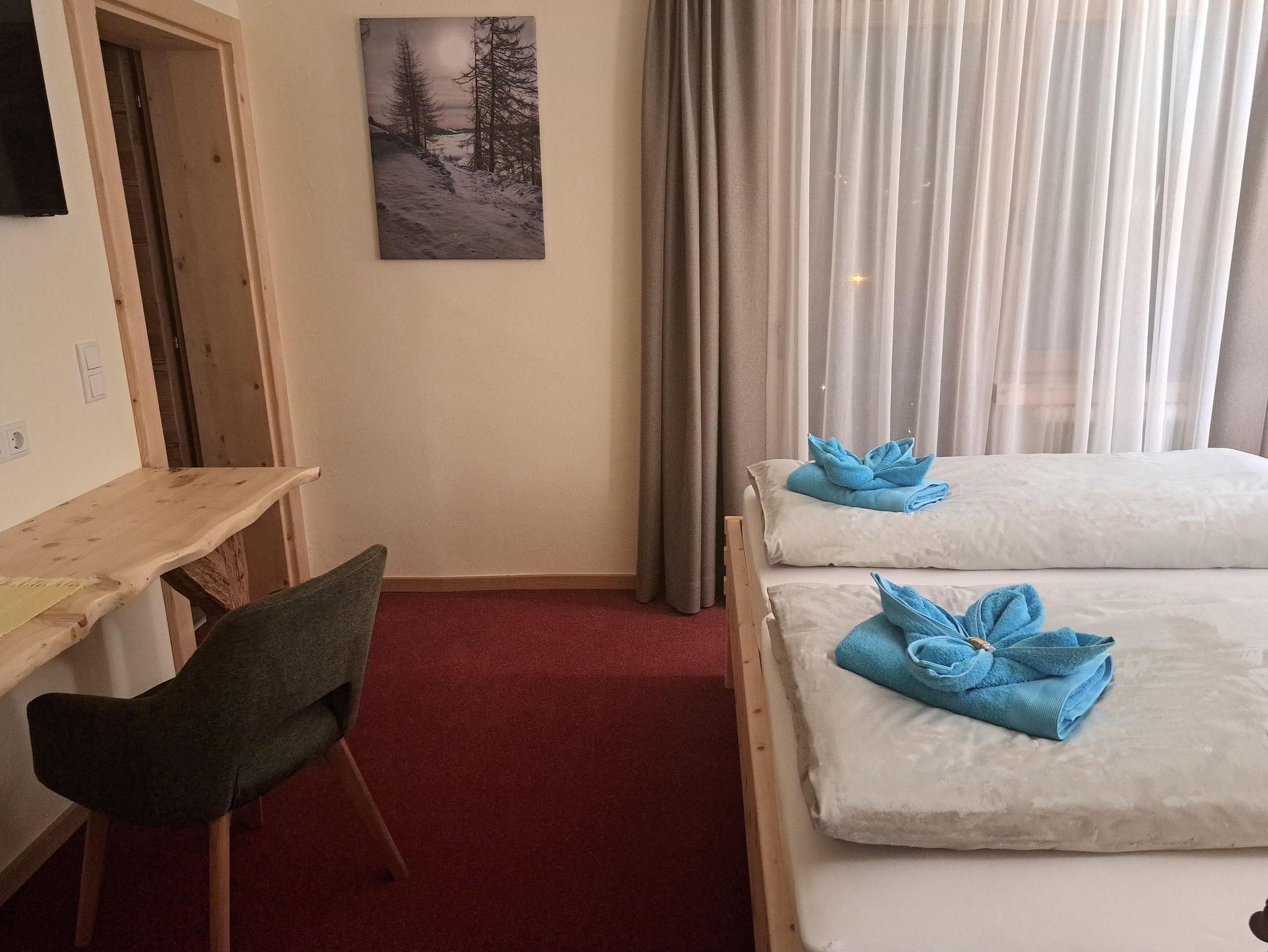 In unserem traumhaften Doppelzimmer Dorfblick werden Sie himmlisch schlafen! Liebevolle Tischlerarbeit wurde kombiniert mit Altholz und Zirben, für einen unvergesslichen Aufenthalt. Der Balkon bietet Ihnen einen atemberaubenden Blick auf unseren Ort und die Berge rundherum.