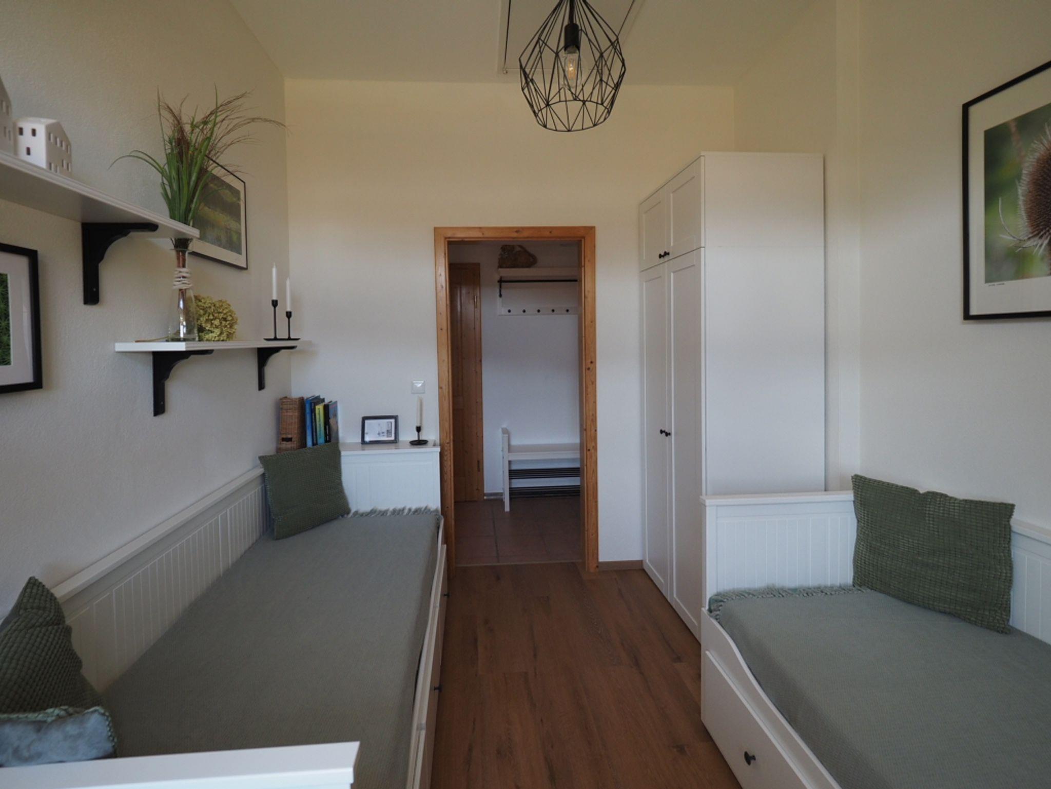 Im kleineren Schlafzimmer (ca. 9qm) befinden sich 2 Einzelbetten (Größen 80 x 200cm).