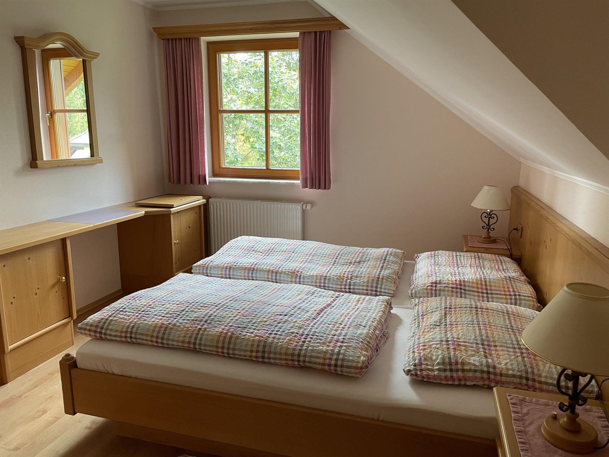 Die Wohnfläche der Ferienwohnung TOP 4 im Dachgeschoss des Ferienhauses Alpenblick beträgt ca. 44 qm, in der bis zu maximal 4 Personen in einem Schlafzimmer und Wohnzimmer nächtigen können. Zur Wohnung gehört eine Dach Terrasse hochwertiger Bestuhlung mit ca. 15 qm Fläche. Die Preise pro Tag richten sich nach Saison und gelten für die Anmietung der gesamten Wohnung unabhängig von der Maximalbelegung (bis maximal 4 Personen). Eine Waschmaschine und ein Wäschetrockner im Haus können genutzt werden. Parkplätze vor dem Ferienhaus sind kostenlos. Alle Preise sind Endpreise und zuzüglich Kur und Ortstaxe.**Am Eingang gibt es einen Schlüsselsafe mit Zugangscode. Diesen erhalten Sie 5 Tage vor ihrer Anreise!