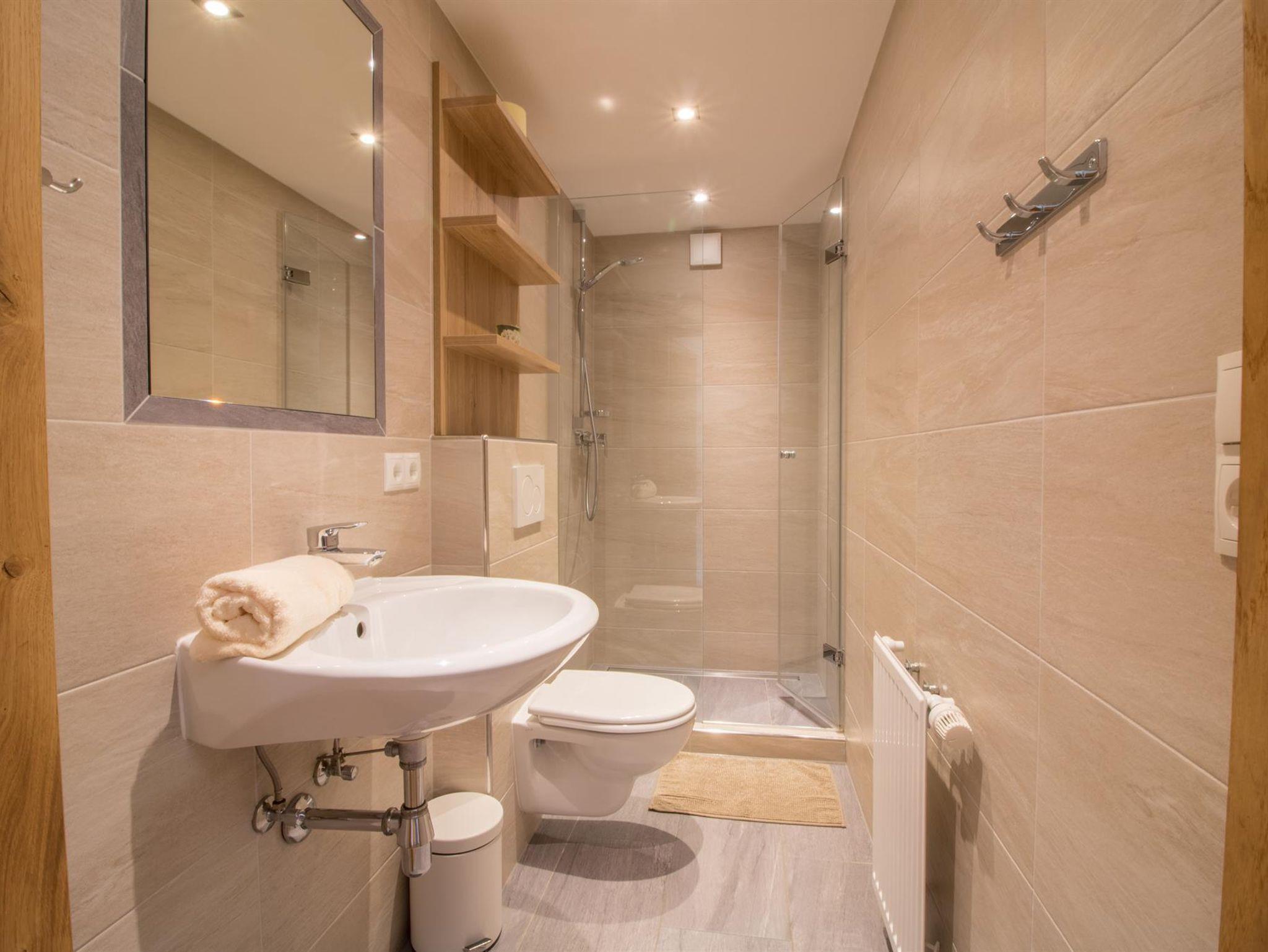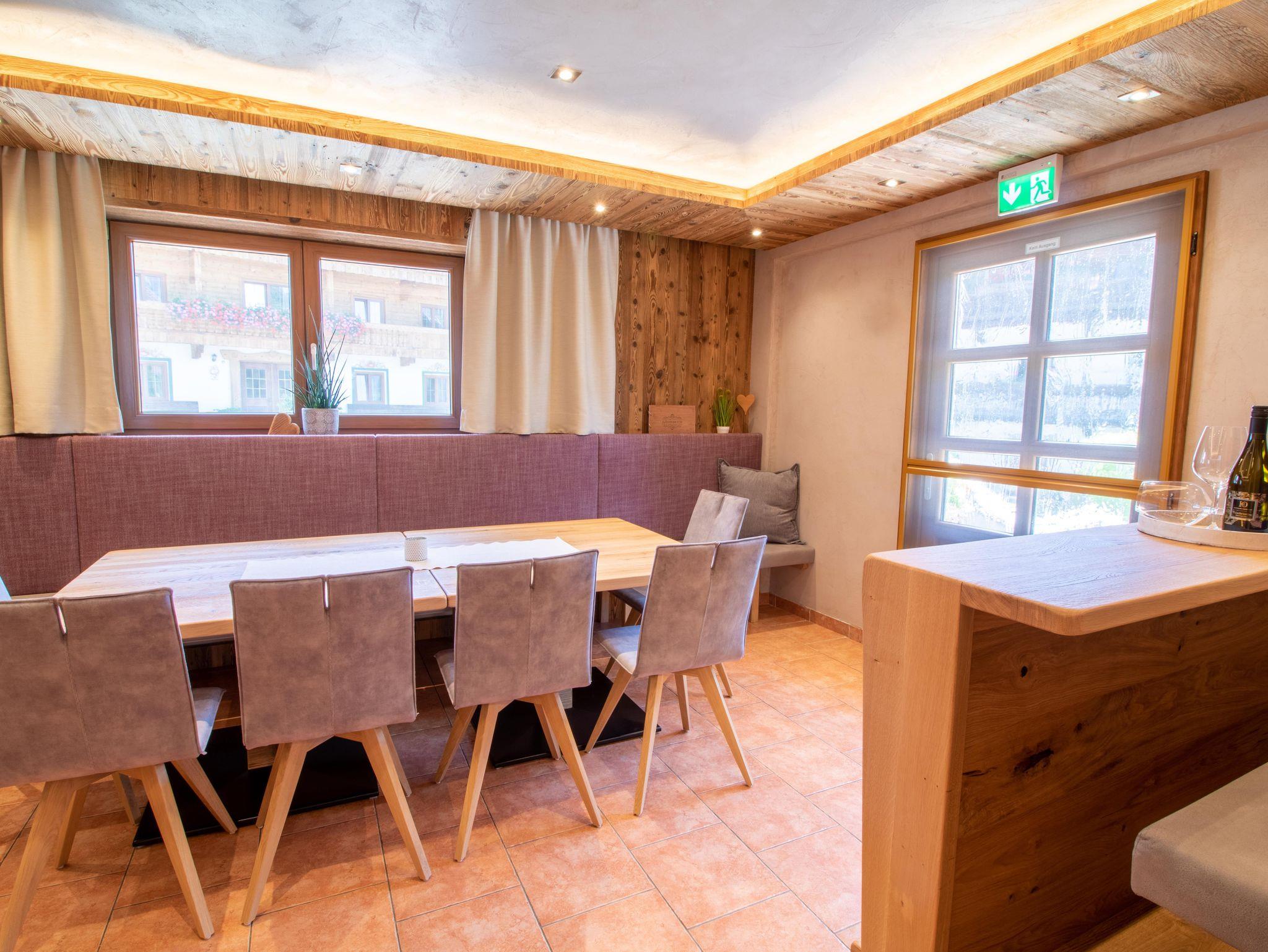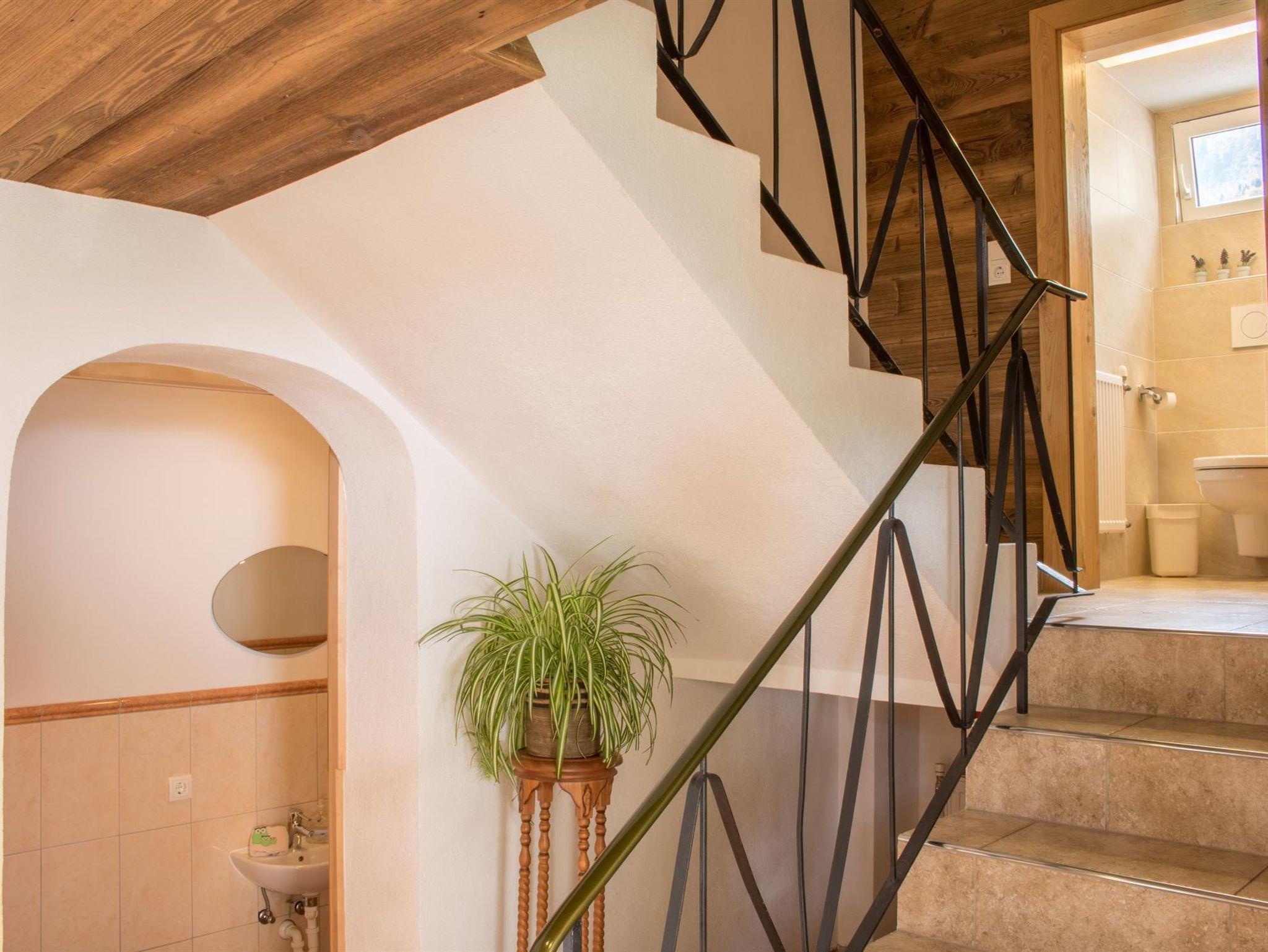 Ferienhaus für maximal 18 Personen, 6 Schlafzimmer, 3 Etagen, ca. 220m²; Vom Eingangsbereich geht es über zwei Stufen in den Wohnraum mit wunderschönen Eckbänken, Stühlen und Zugang zur Terrasse. Ebenfalls vom Wohnraum erreichbar ist die gut ausgestattete Küche (Gastroherd mit 4 Platten und Backofen, Mikrowelle, Geschirrspüler, Kühlschrank, Gefrierschrank, 2 Kaffeemaschinen, Wasserkocher, Eierkocher und Toaster) gehören zur Einrichtung dazu. Bei so einem großen Ferienhaus sind natürlich Insgesamt drei separate WC´s, auf jeder Etage eines vorhanden. Im Winter wird unser Schieraum mit Schuhtrockner von unseren Gästen sehr gut angenommen.