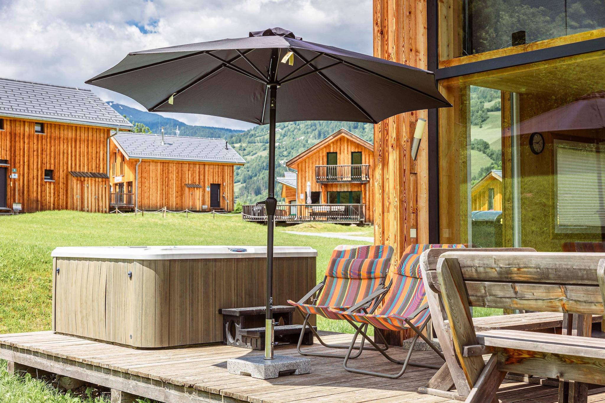 Attraktiv hytte med infrarød sauna og udendørs jacuzzi