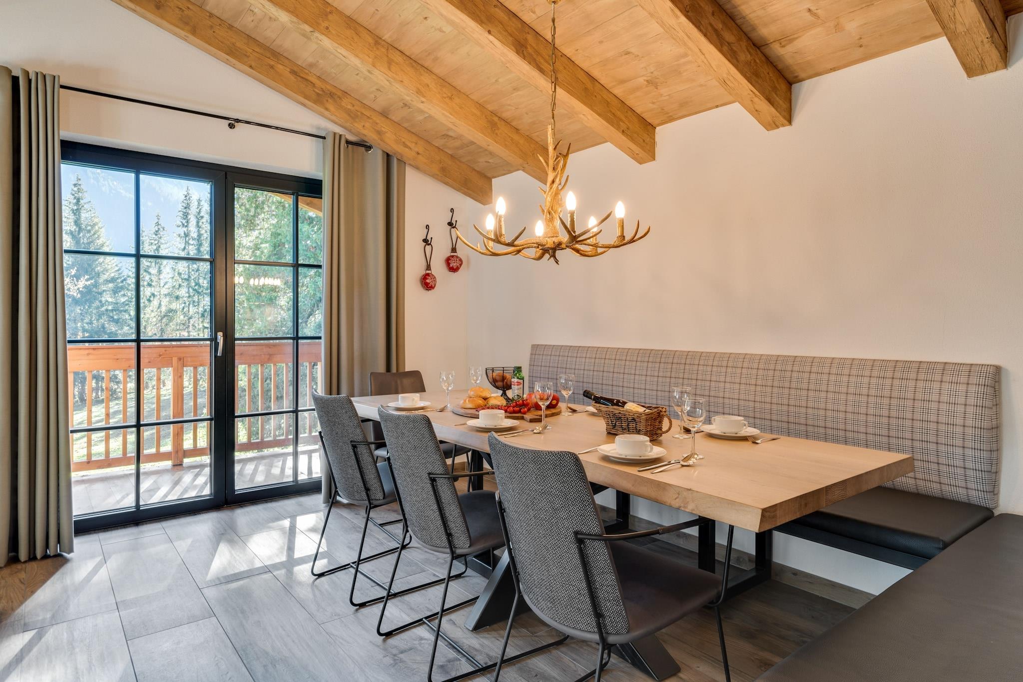 Denne smukke og luksuriøse hytte til højst 8 personer er en del af et hyttekompleks med 4 boligenheder/hytter og ligger i den kendte landsby Krimml, på grænsen mellem Salzburgerland og Tyrol og i kort afstand fra Hochkrimml - Zillertal Arena skiområde. Hytten har en stor stue med siddekrog og spisebord, et moderne åbent fuldt udstyret køkken, 4 rummelige soveværelser (et med 2 dobbeltsenge, et med en køjeseng), 3 luksuriøse badeværelser og 2 altaner/terrasser. Hytten har også et afslapningsområde med sauna, bruser og liggestole, et skiopbevaringsrum med skistøvlevarmer og en have med havemøbler. Du kan parkere direkte ved hytten. Krimml er en lille landsby i det vestlige Østrig. Den ligger i Salzburgerland i over 1000 meters højde for enden af Salzachdalen og grænser op til Zillertal i Tyrol og Sydtyrol. Området byder på fascinerende højdale som Krimmler Achental og Wildgerlostal i nationalparken Hohe Tauern, smukke bjergsøer, dybe kløfter, perfekte pister i Hochkrimml - Zillertal Arena skiområdet, mange vandreruter, forskellige muligheder for bjergbestigning og cykel- og mountainbike ture. På grund af hyttens centrale beliggenhed kan du nå Zillertal Arena (Hochkrimml - Königsleiten), Wildkogel Arena (Neukirchen) og KitzSki-Hollersbach skiområder på 30-45 minutter i bil. Skibussen, som kører dig til Zillertal Arena-svævebanerne, standser 400 meter fra hytten. Med Salzburg Super Ski Card kan du stå på ski i de tre skiområder med næsten 400 kilometer pister med ét liftkort. Om sommeren byder den udendørs pool i Krimml, badesøen i Wald im Pinzgau og Hollersbach-badesøen på masser af svømmesjov! Direkte i Krimml er der masser af indkøbsmuligheder til dine daglige behov samt et godt udvalg af restauranter.