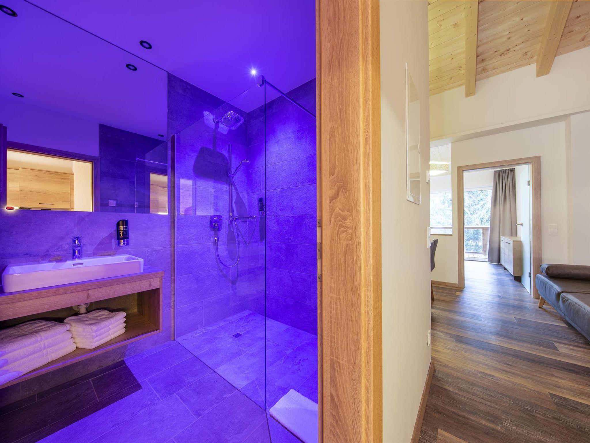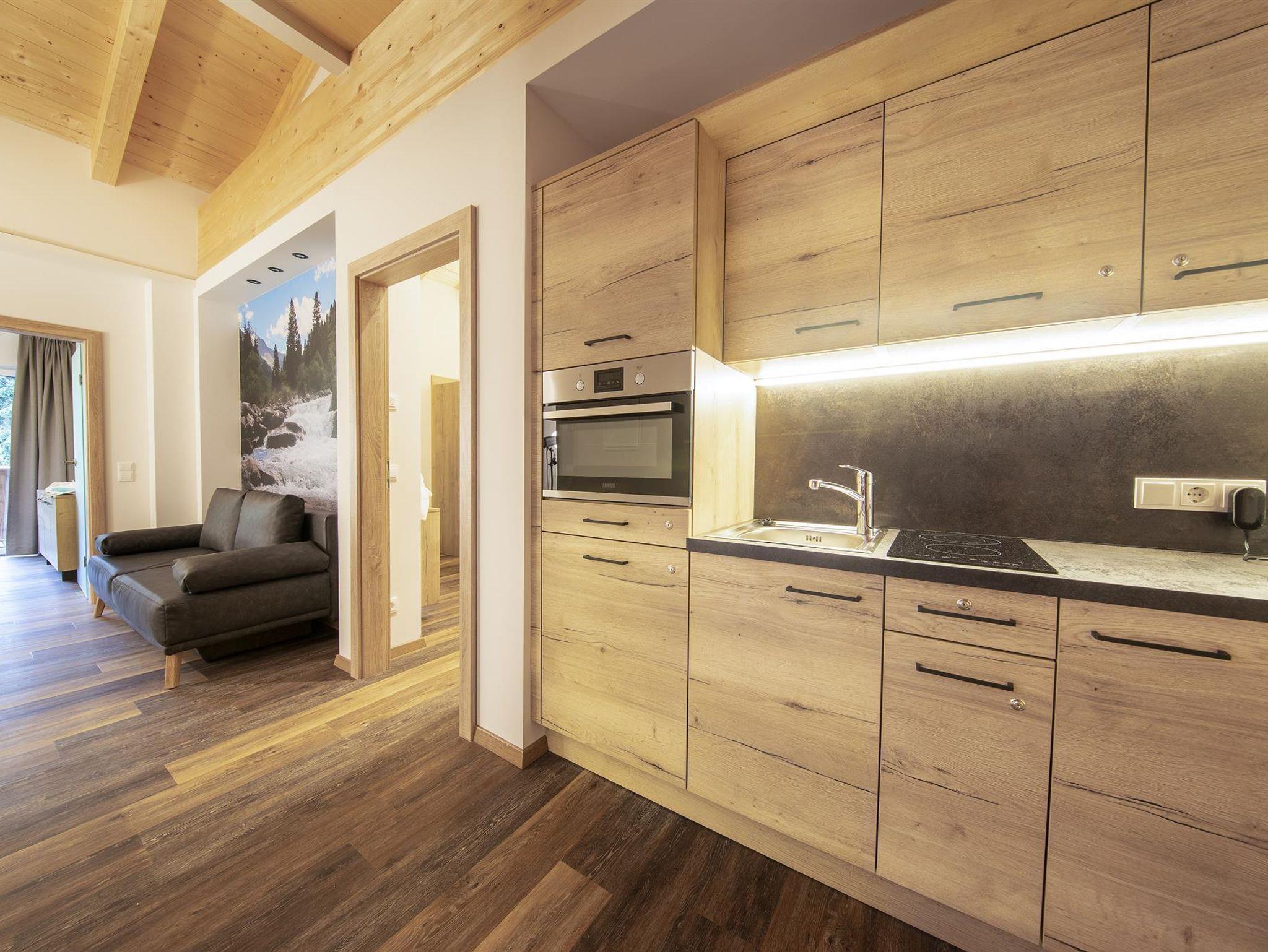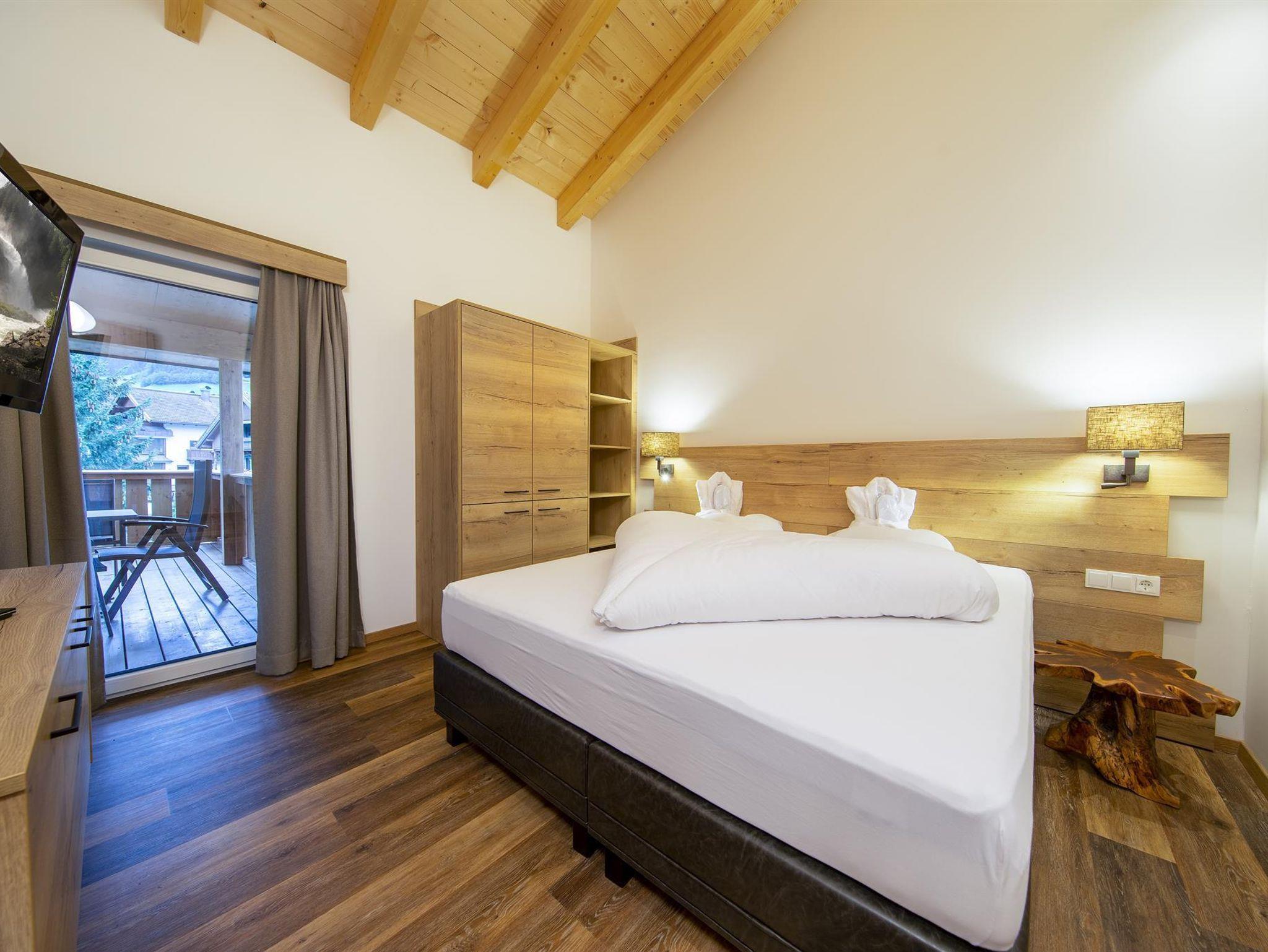 Die im Frühjahr 2019 komplett neu ausgestattete, allergikergerechte Suite (bis zu 6 Personen) verfügt über 2 getr. Schlafzimmer sowie einen Wohnraum mit Ausziehcouch und bietet viel Platz im Urluab. Die natürlichen Materialien im Alpine-Lifestyle-Design verbreiten eine angenehme Wohnatmosphäre und sorgen mit modernster Ausstattung für höchsten Wohnkomfort. Vom eigenen Balkon aus genießen Sie den Panoramablick auf die Krimmler Berge.