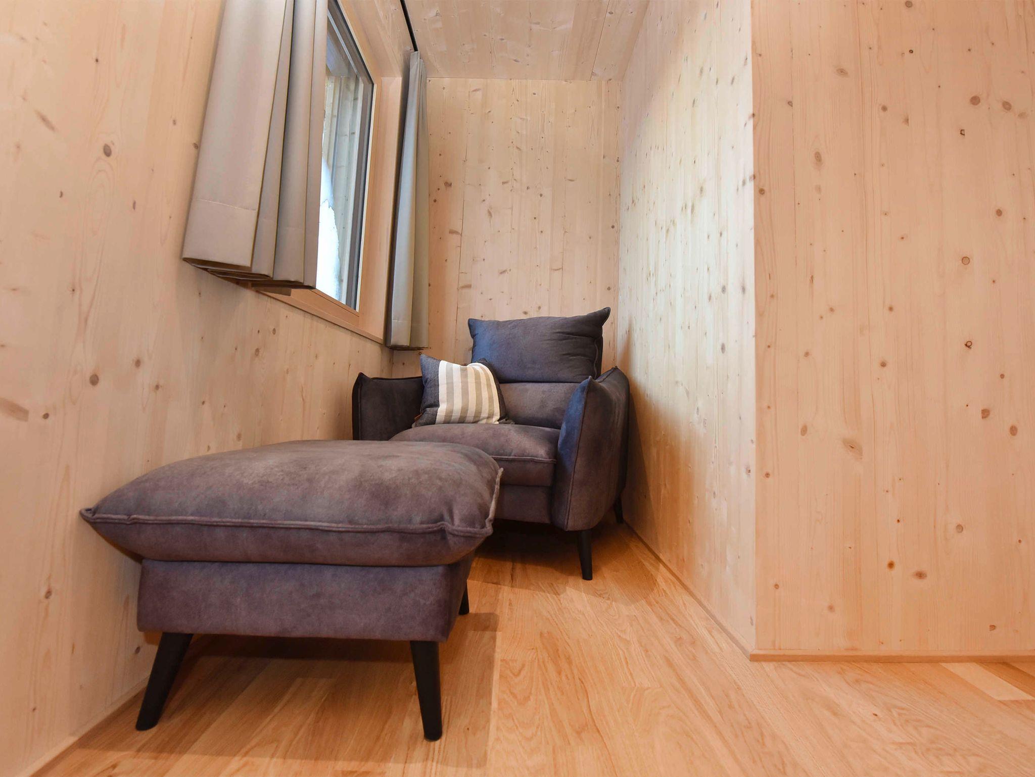 Ein Reich für zwei - das moderne Doppelzimmer mit einer gemütlichen Leseecke ist auf Wunsch dazubuchbar und liegt gleich neben den Chalets. Die perfekte Lösung für größere Familien und kleine Gruppen.